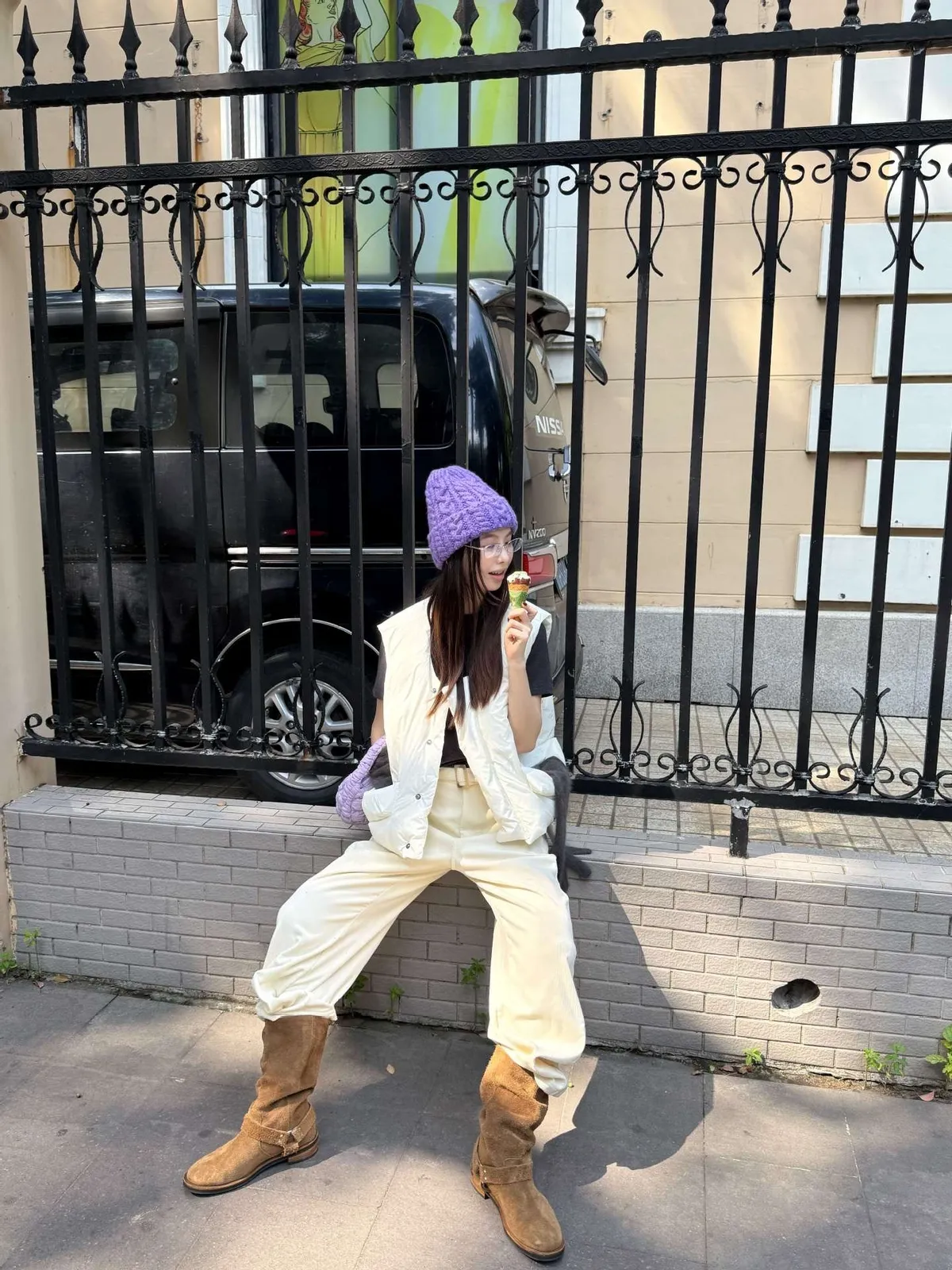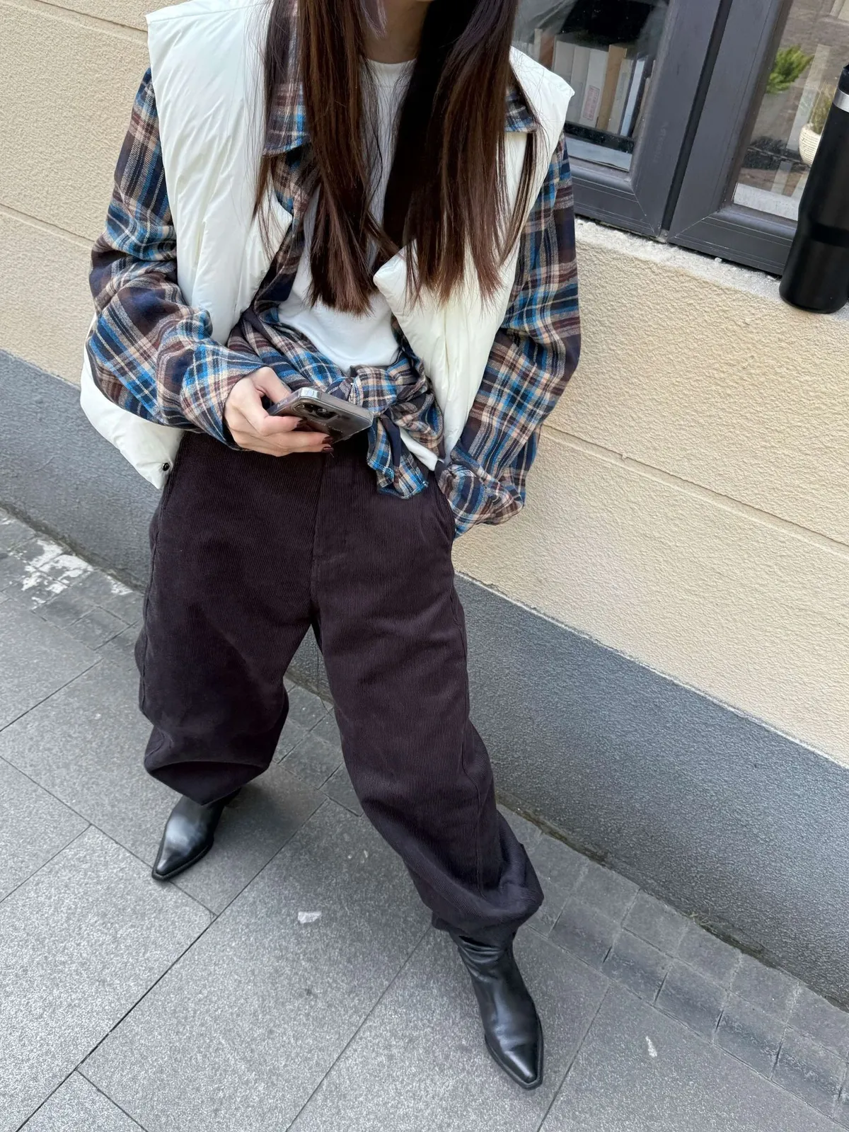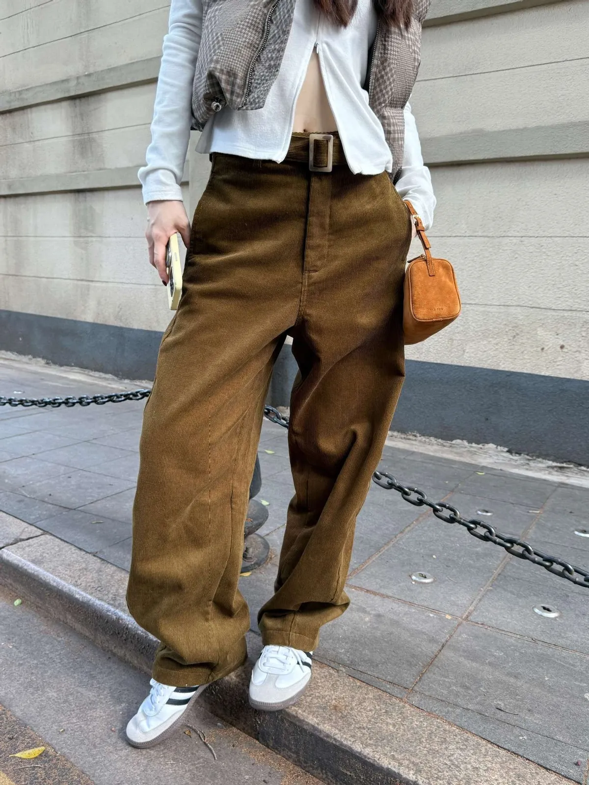 GIRLS 復古 燈芯絨 直筒 長褲 附贈腰帶(棕/米白/深灰)