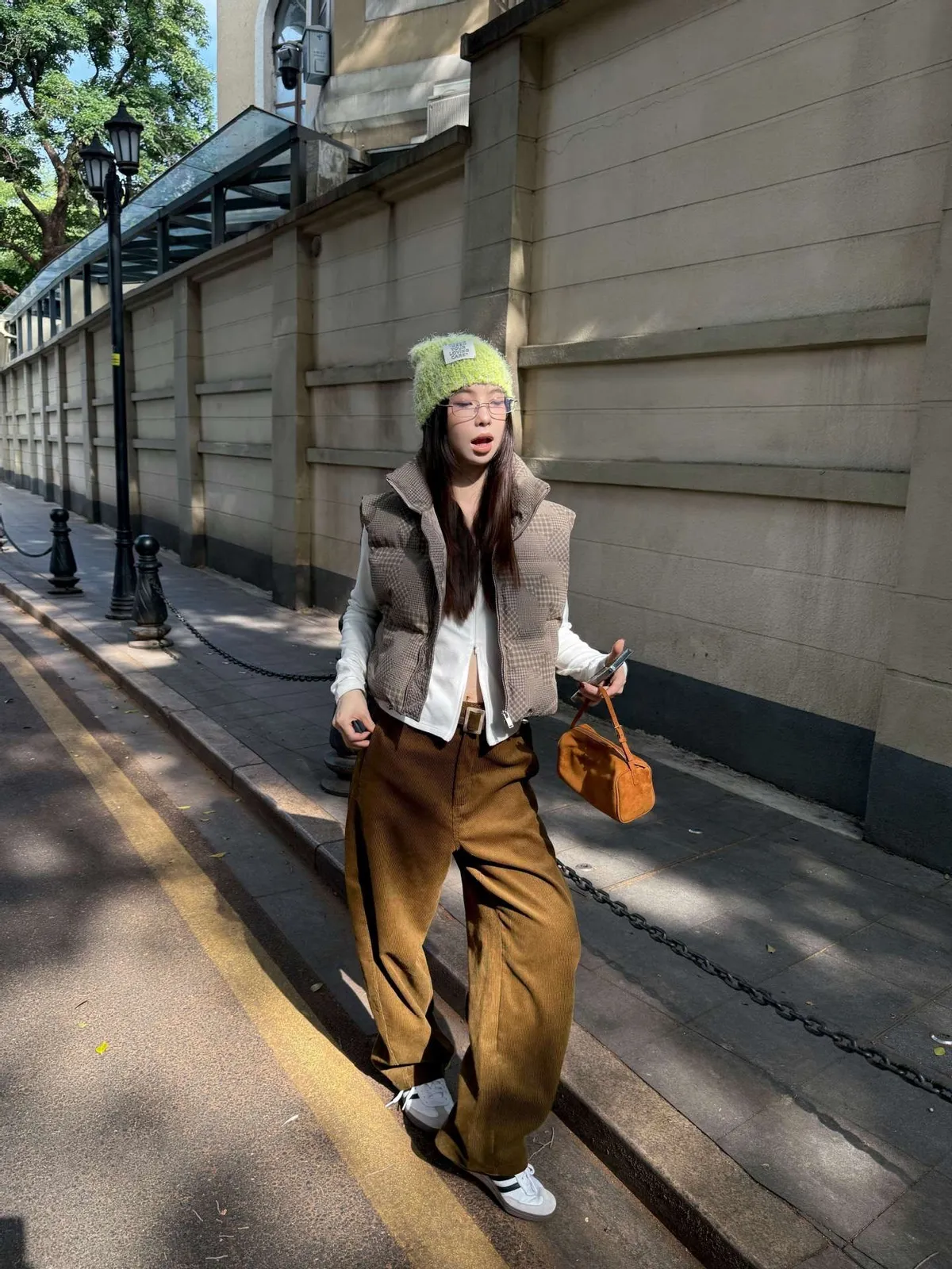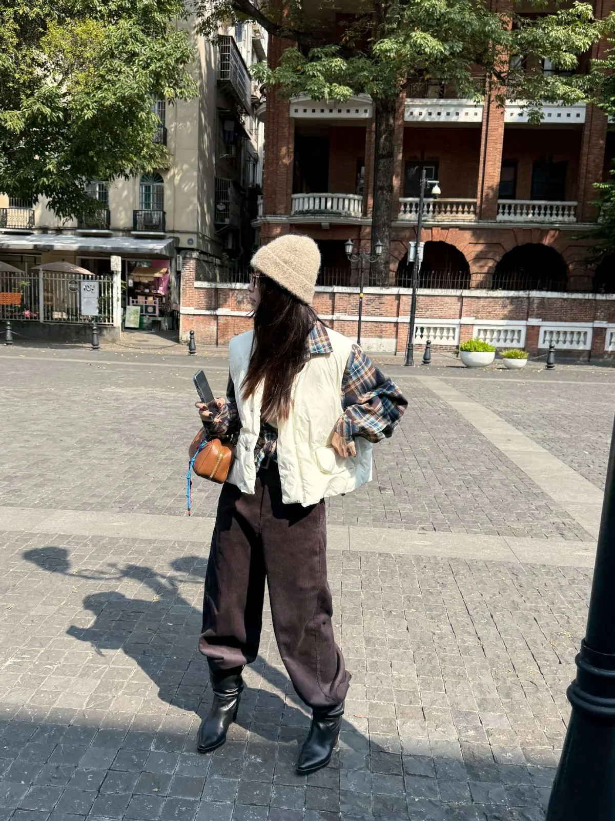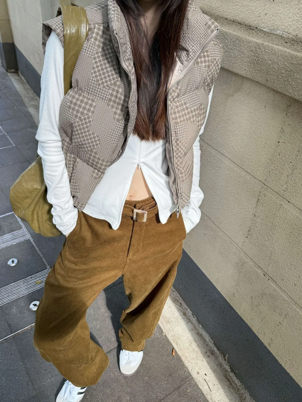GIRLS 復古方塊 設計感 短版 羽絨背心(岩石灰/深咖)