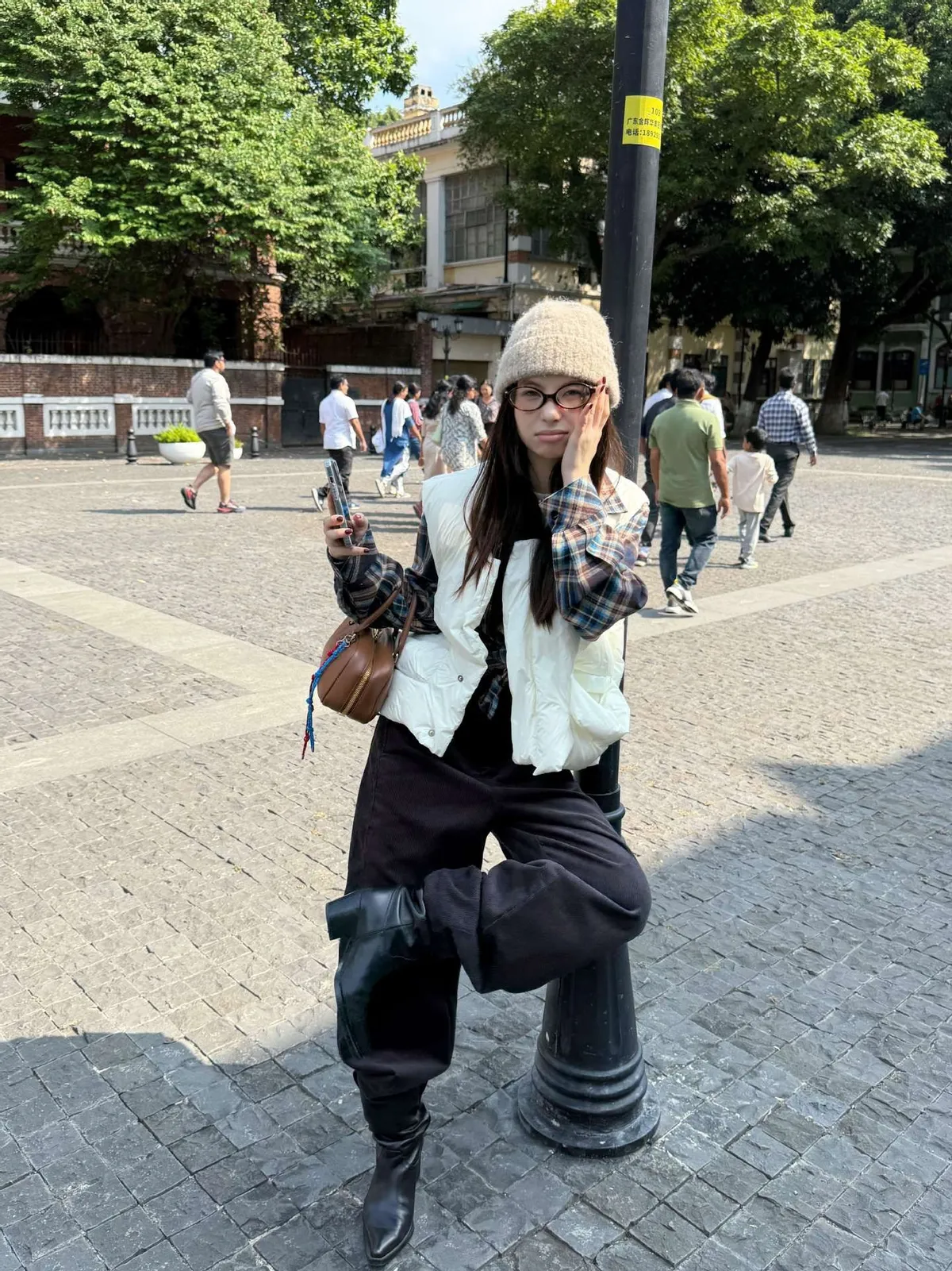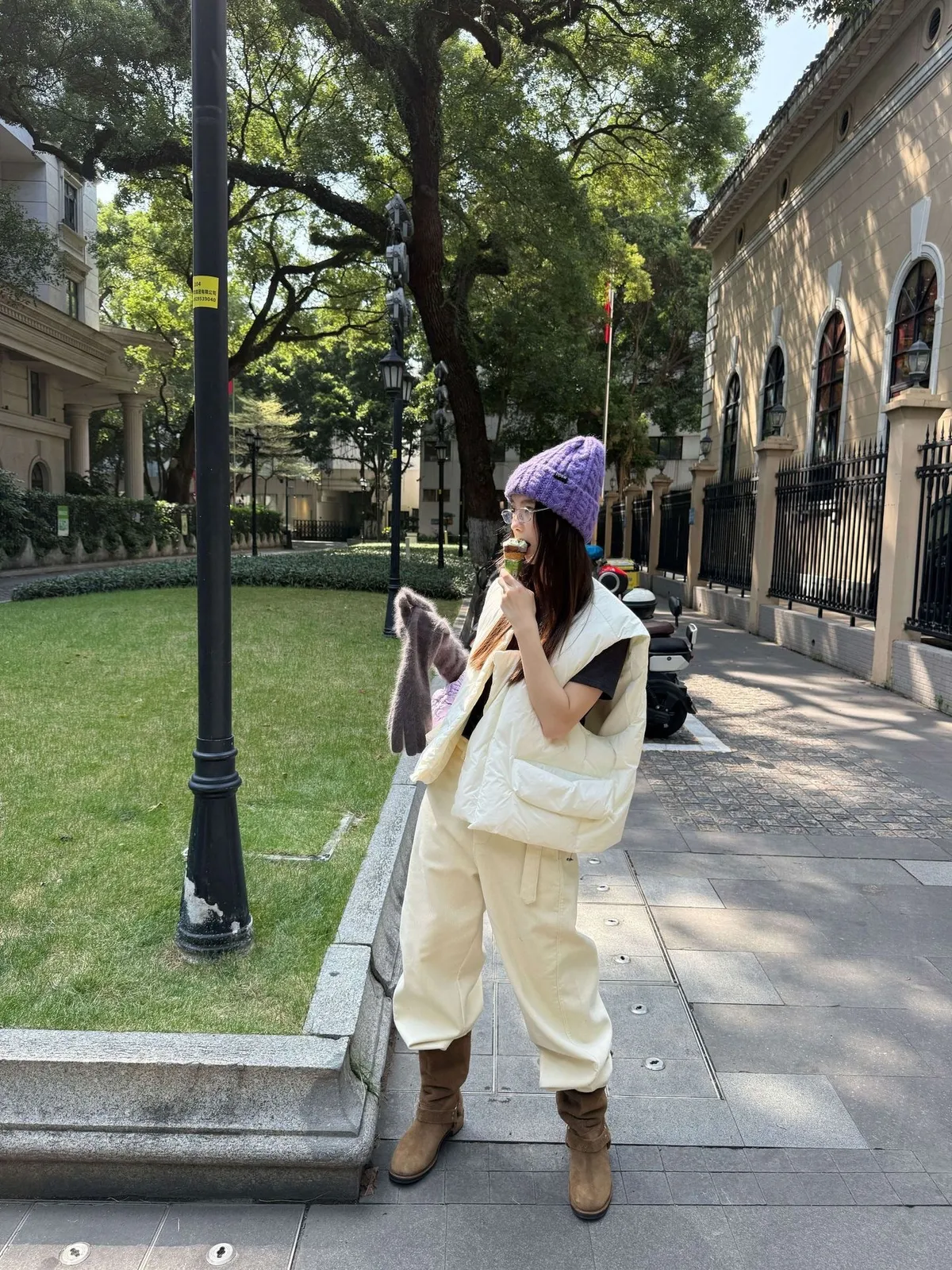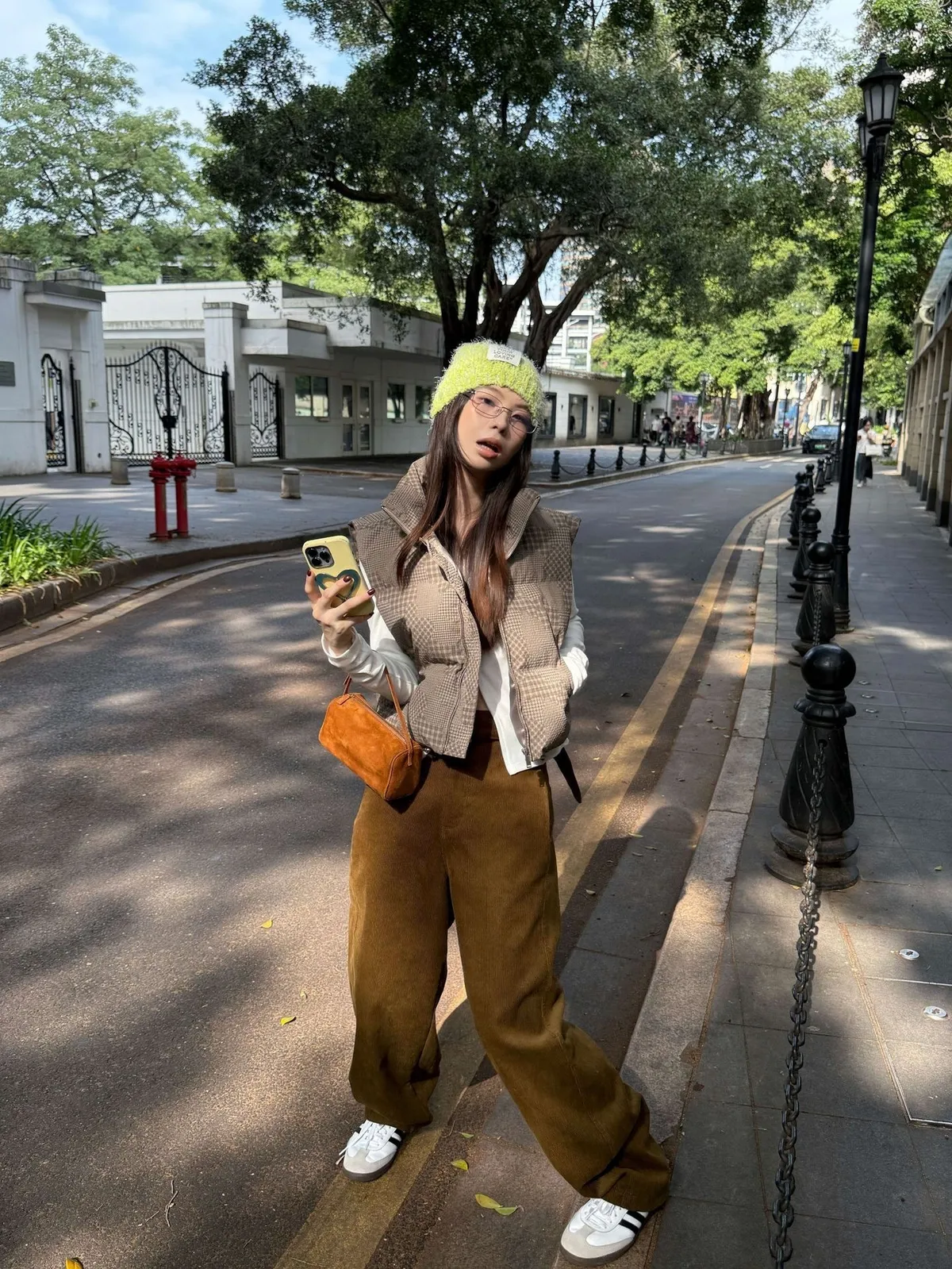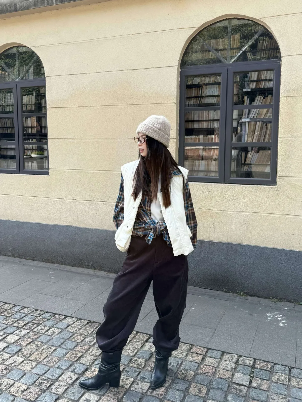 GIRLS 復古方塊 設計感 短版 羽絨背心(岩石灰/深咖)