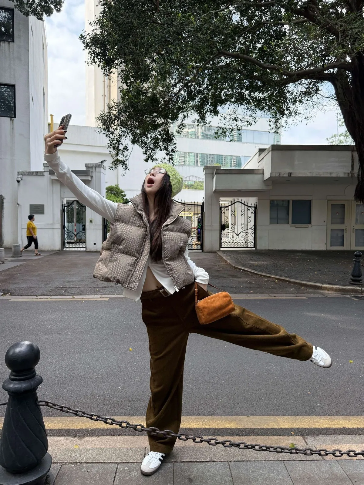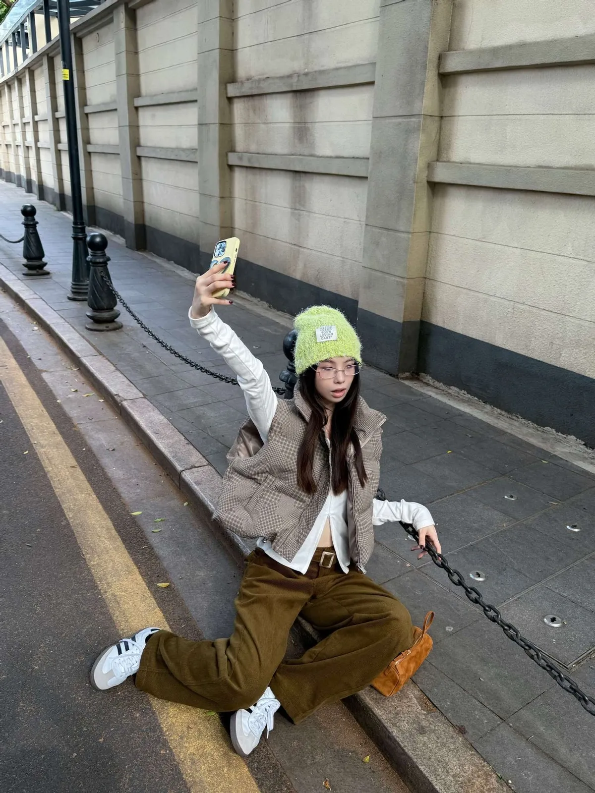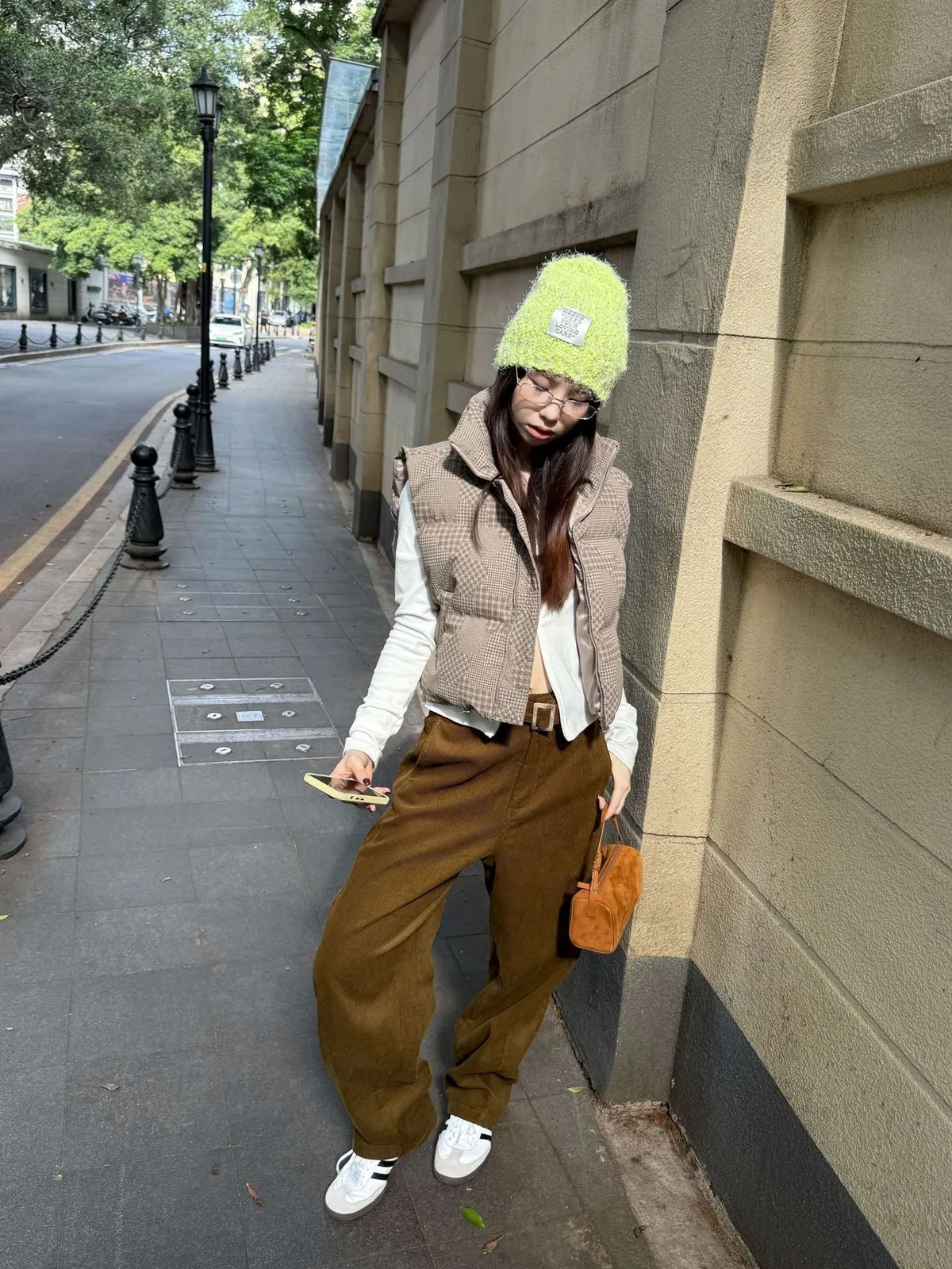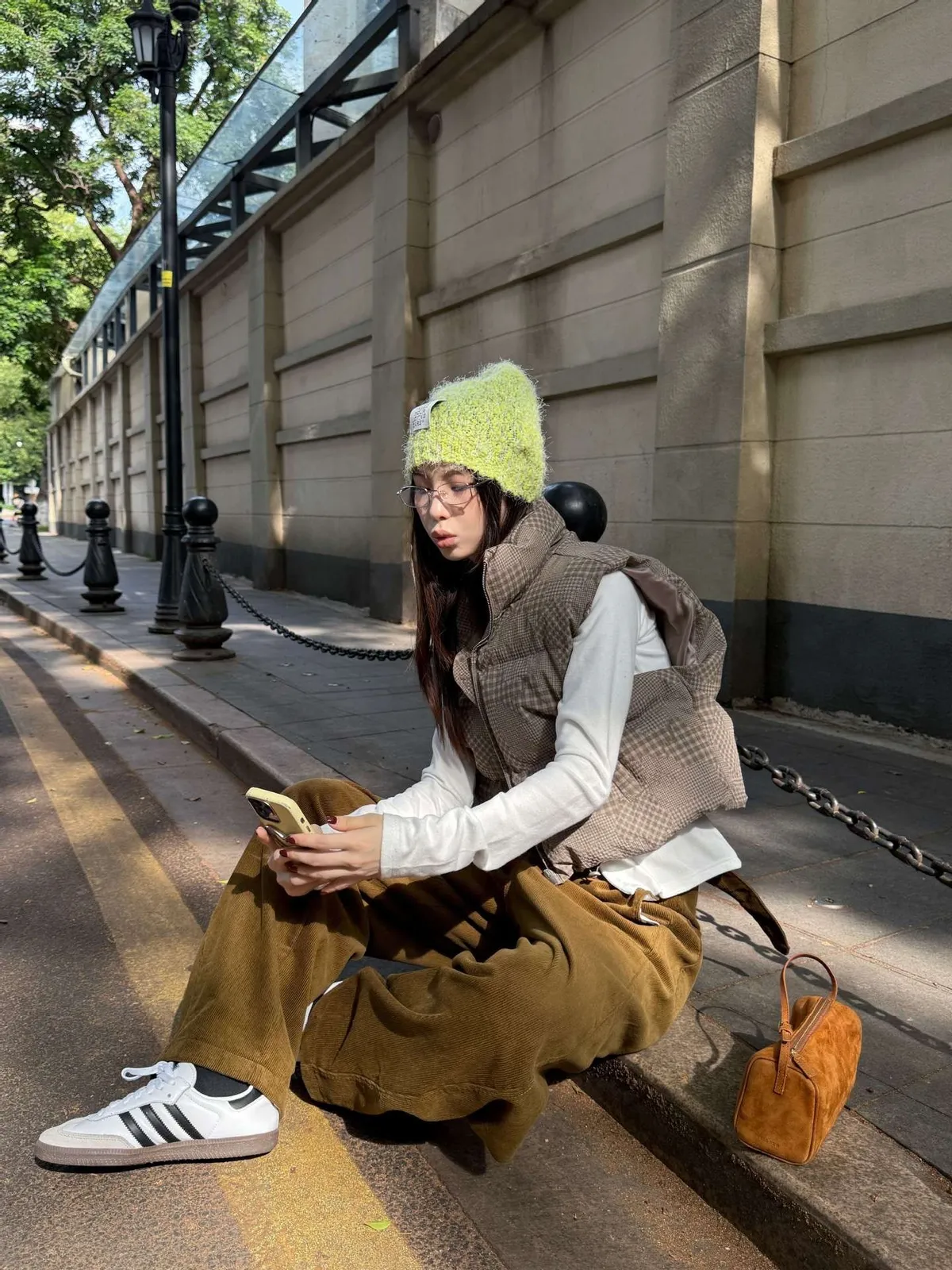 GIRLS 復古方塊 設計感 短版 羽絨背心(岩石灰/深咖)