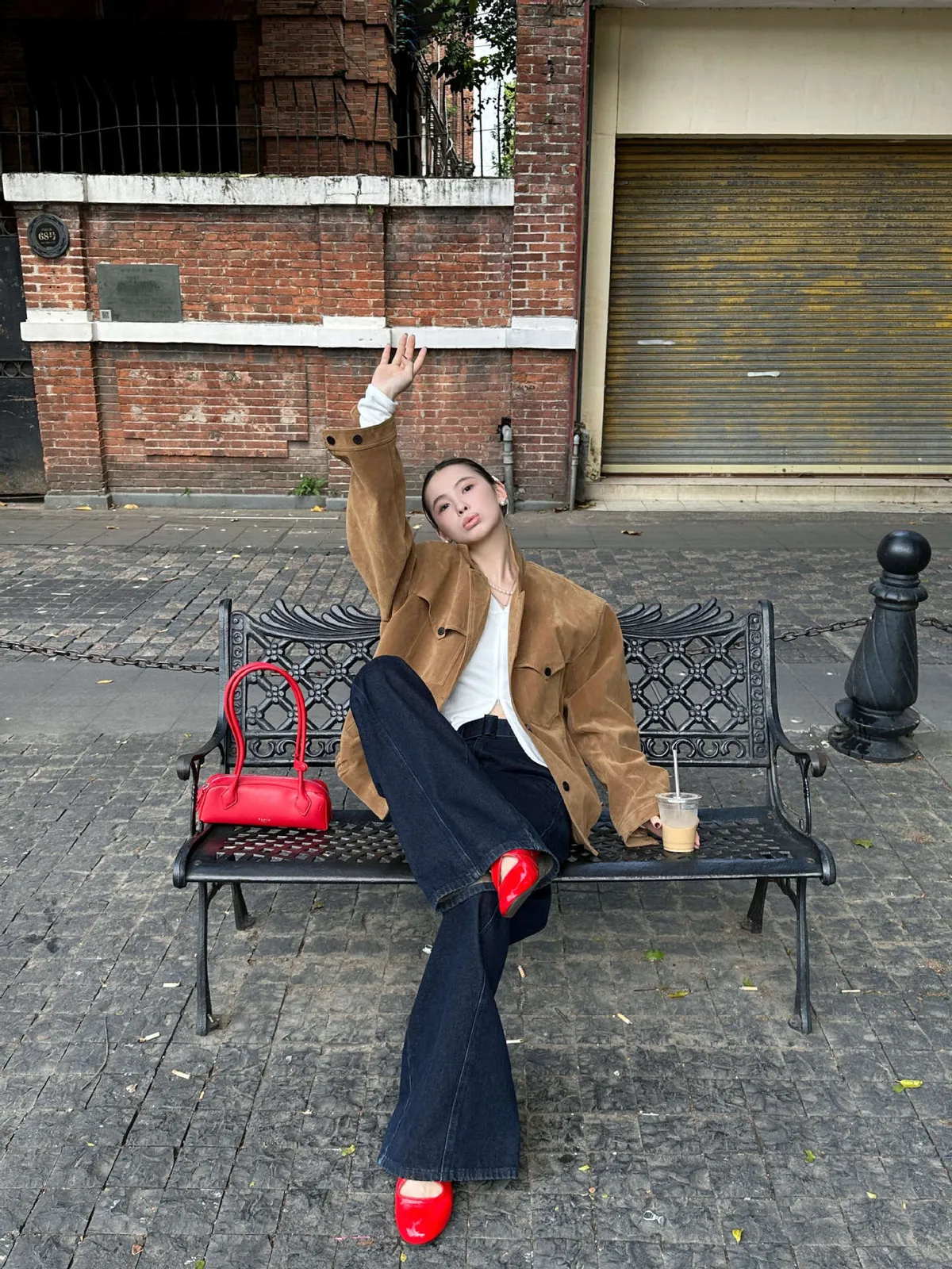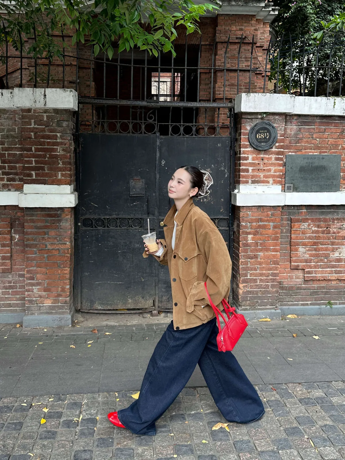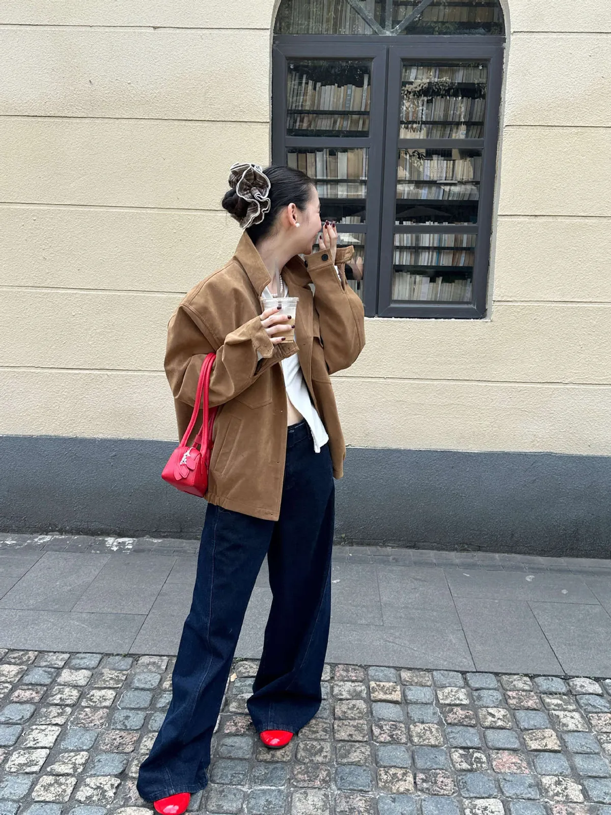 GIRLS 做舊 加絨 復古 外套(棕/深灰)