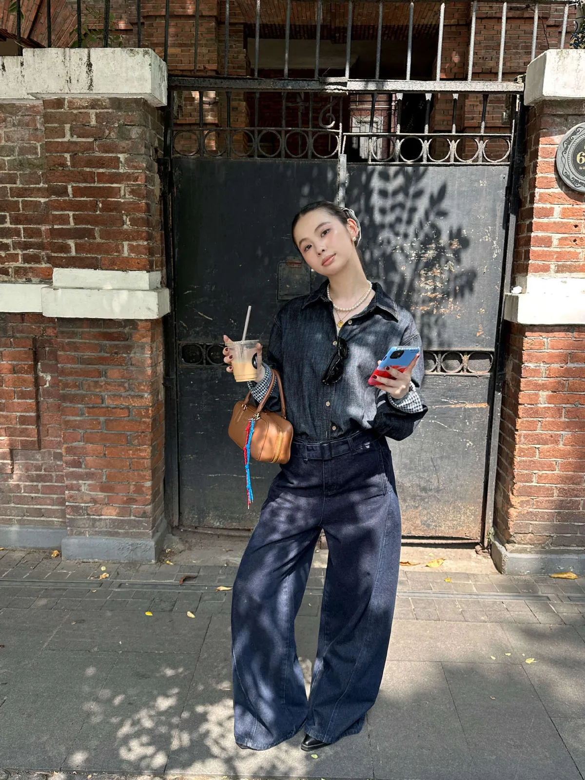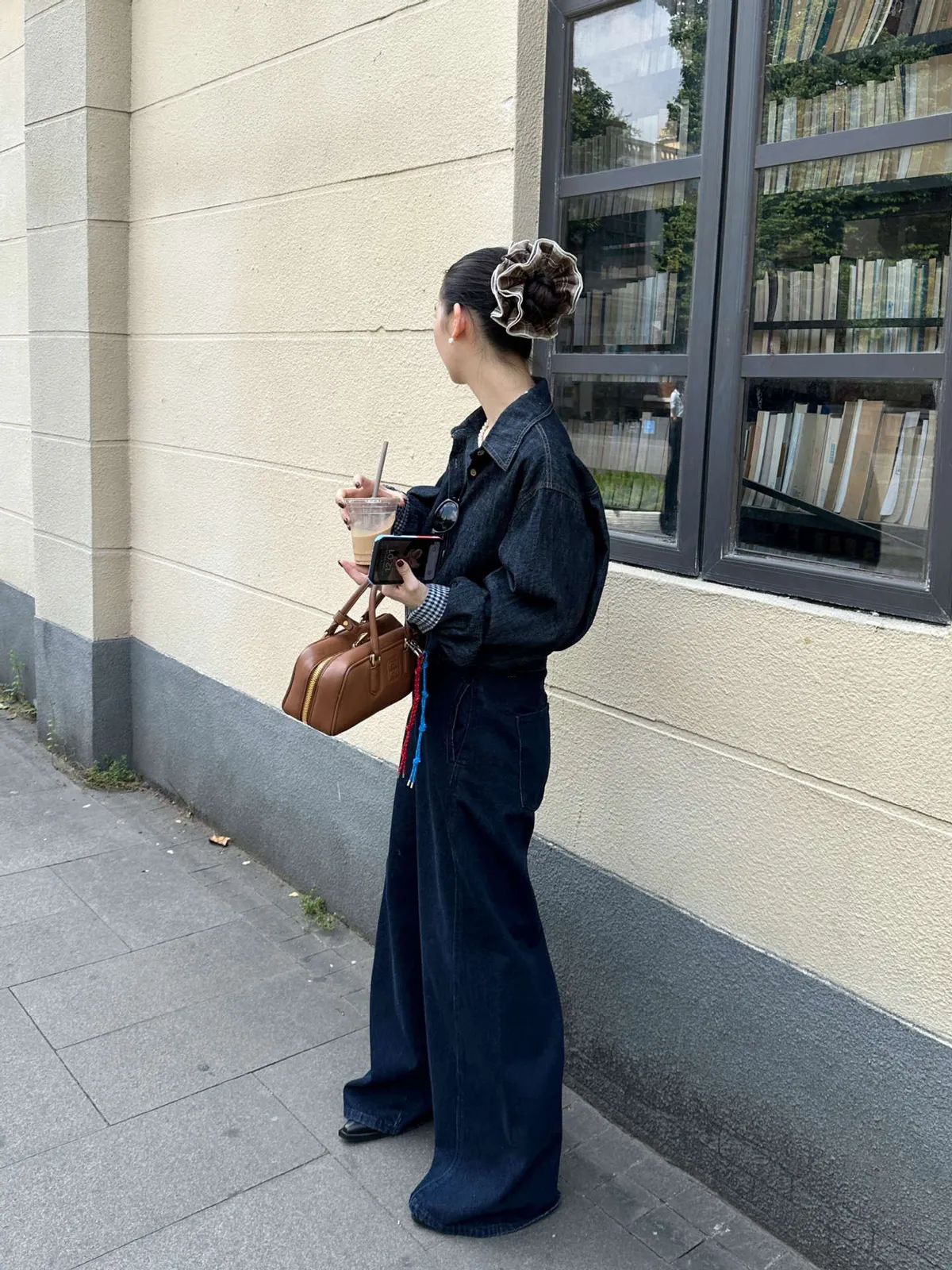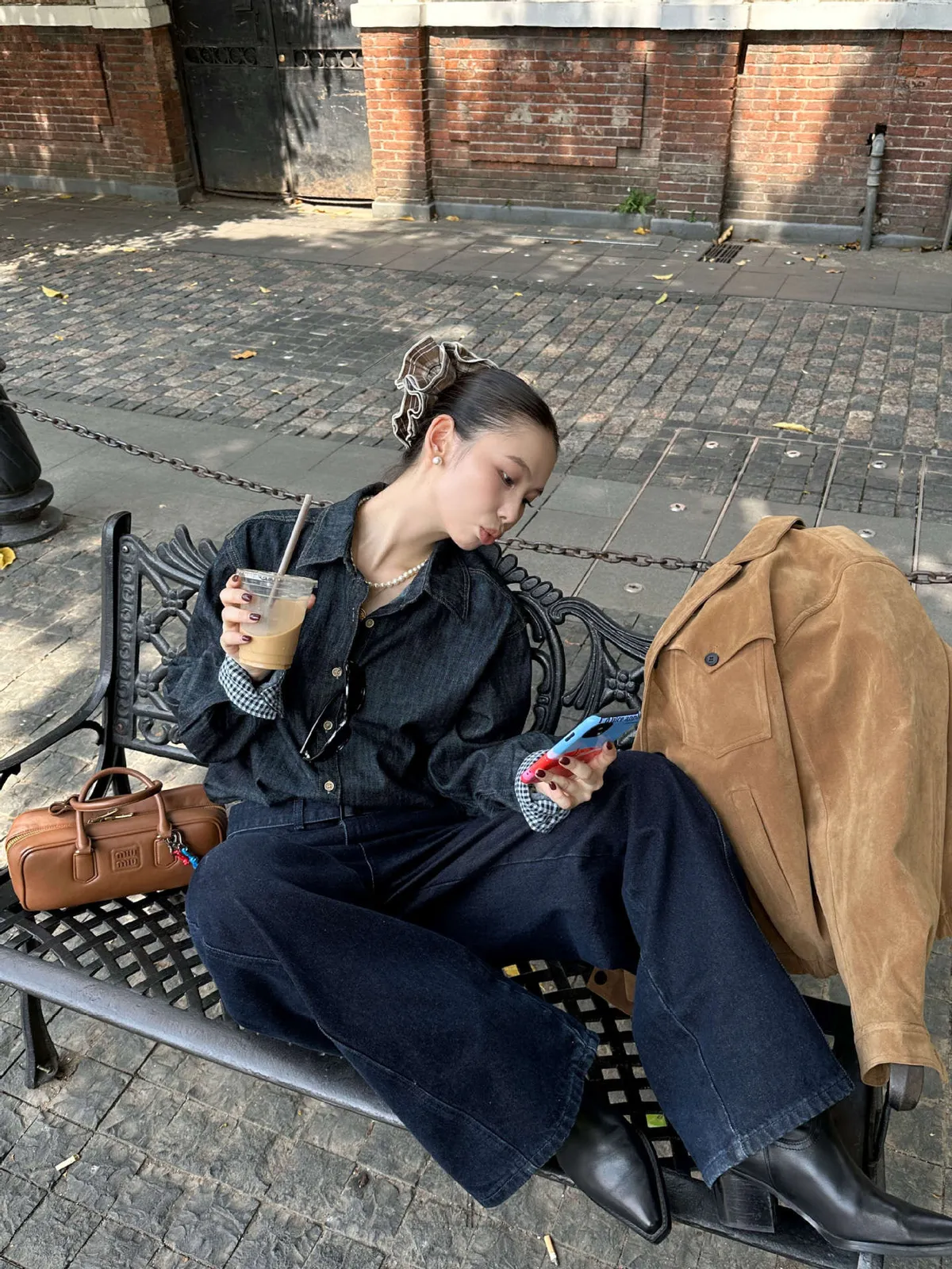 GIRLS 水洗 設計感 牛仔襯衫 牛仔褲 套裝(水洗藍)