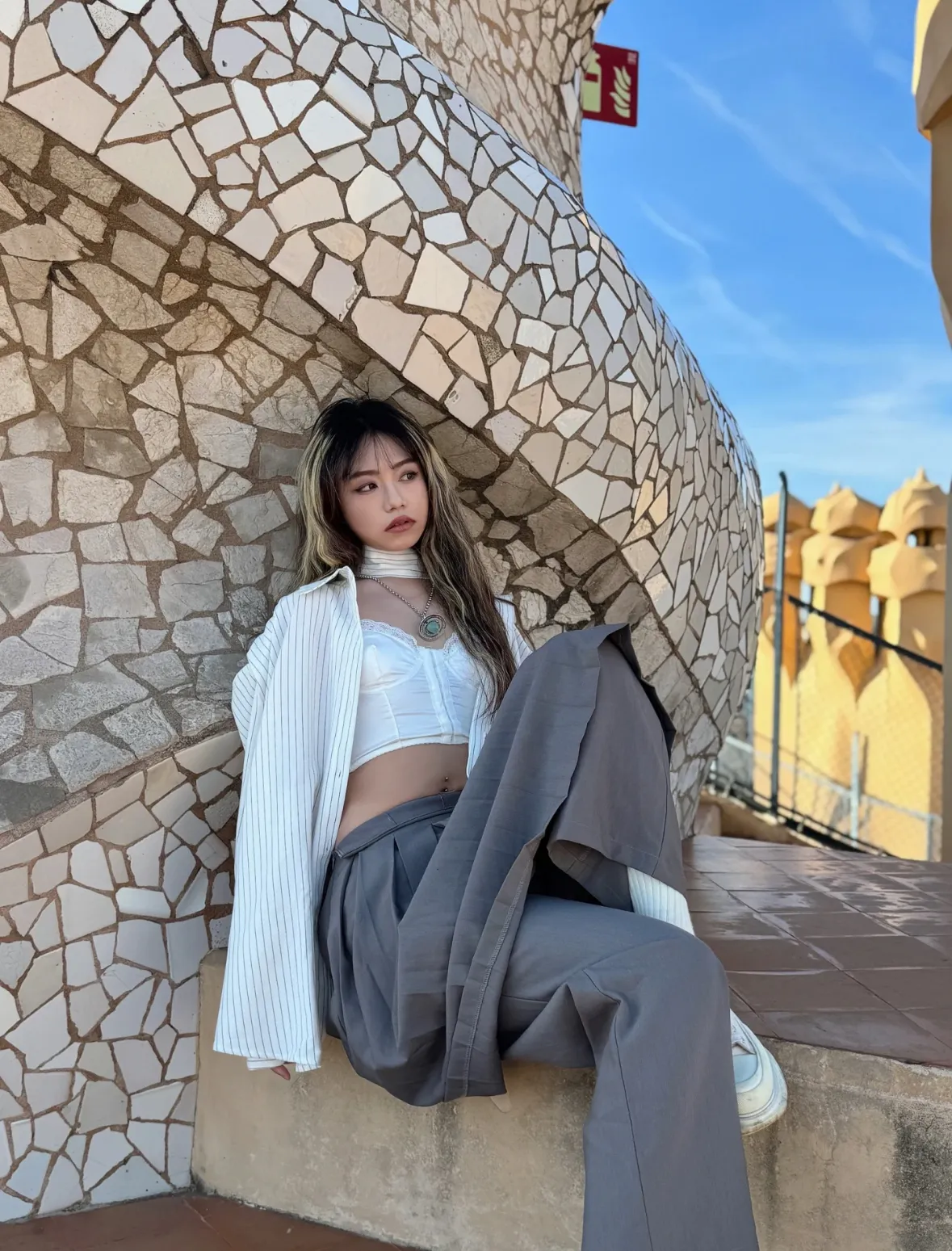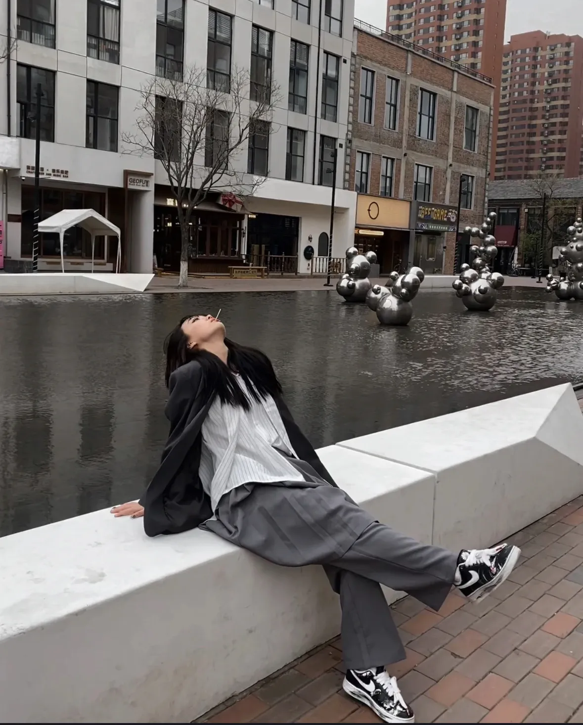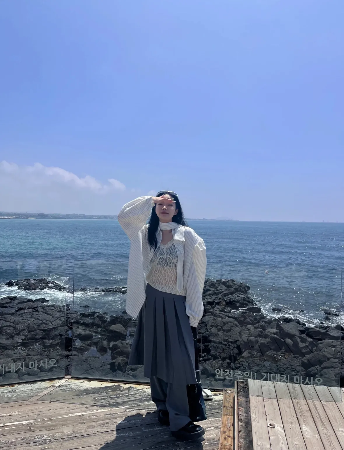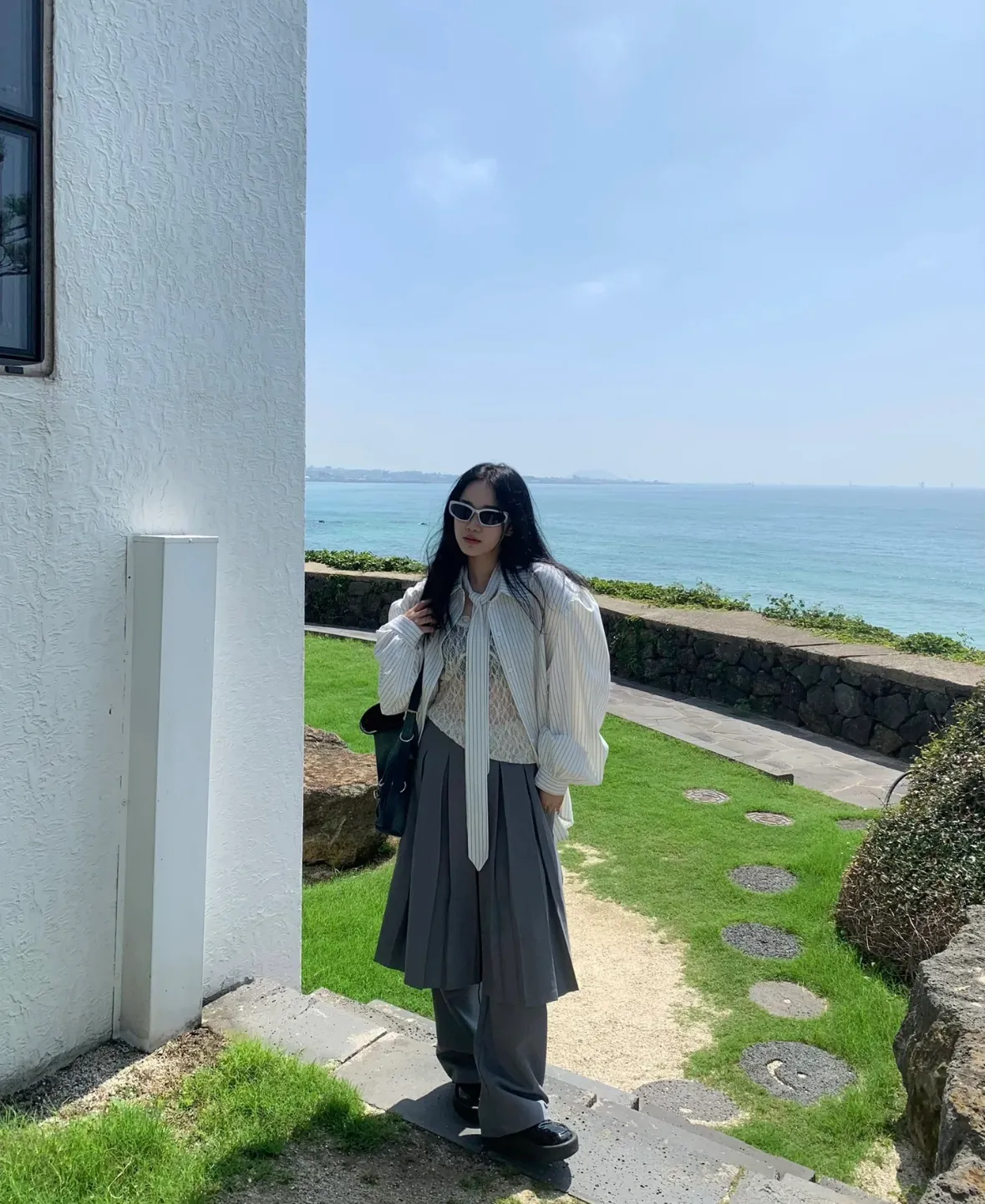 GIRLS 假兩件 百褶裙 西裝褲(灰色)