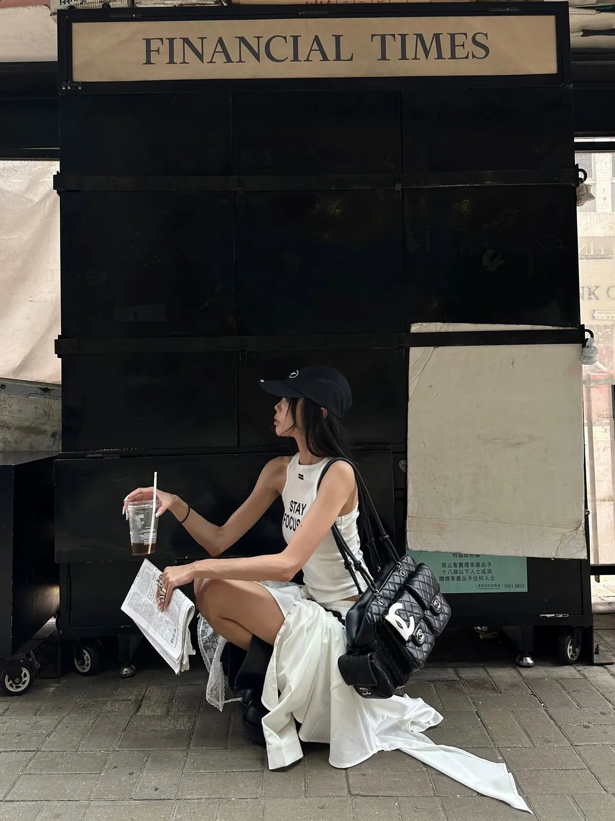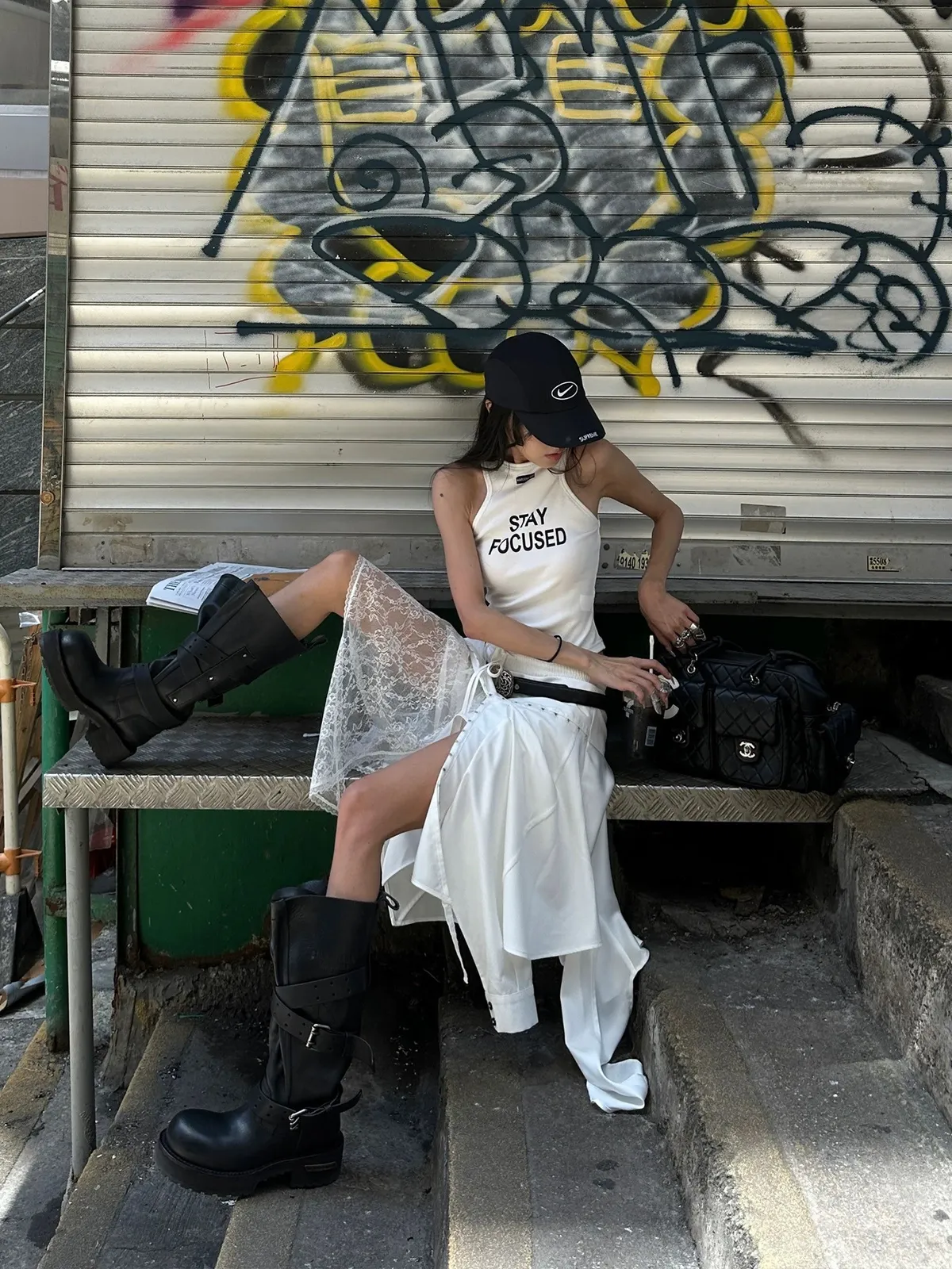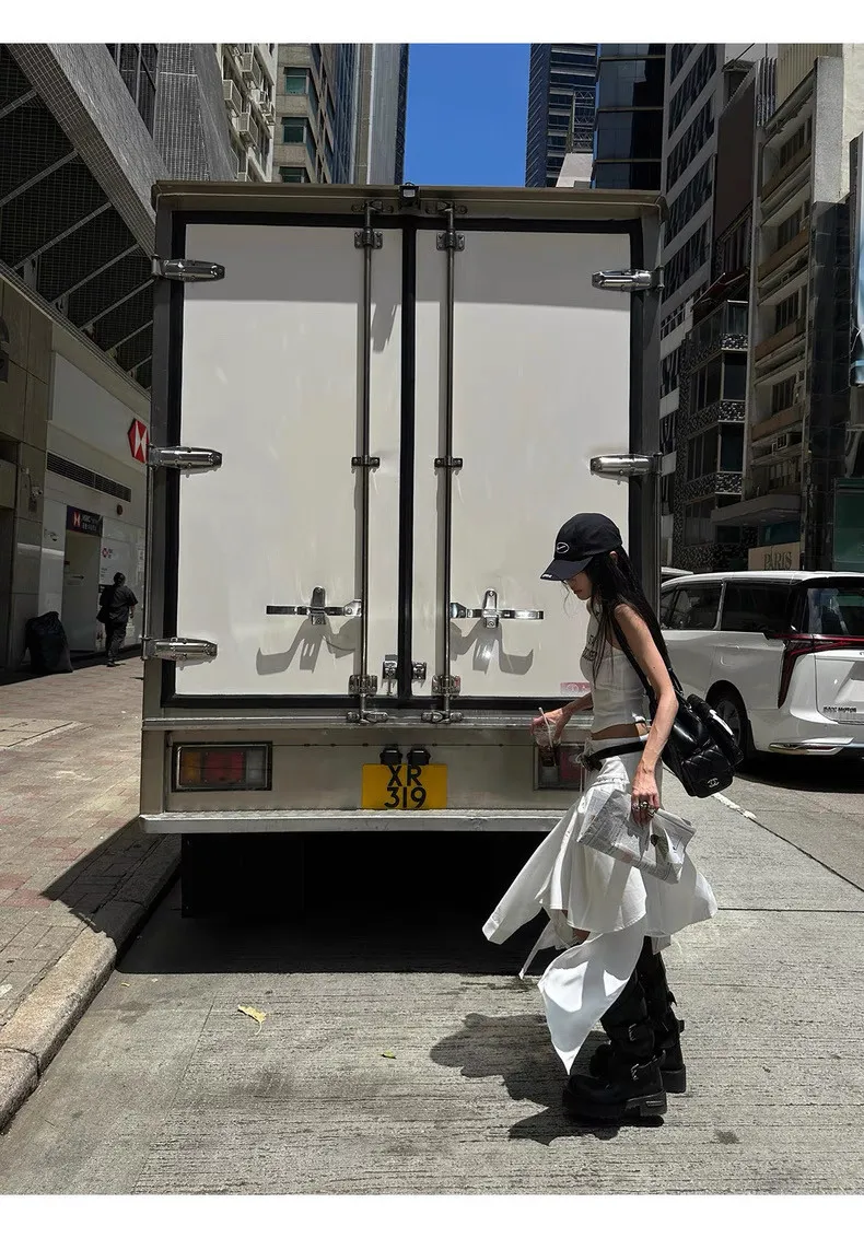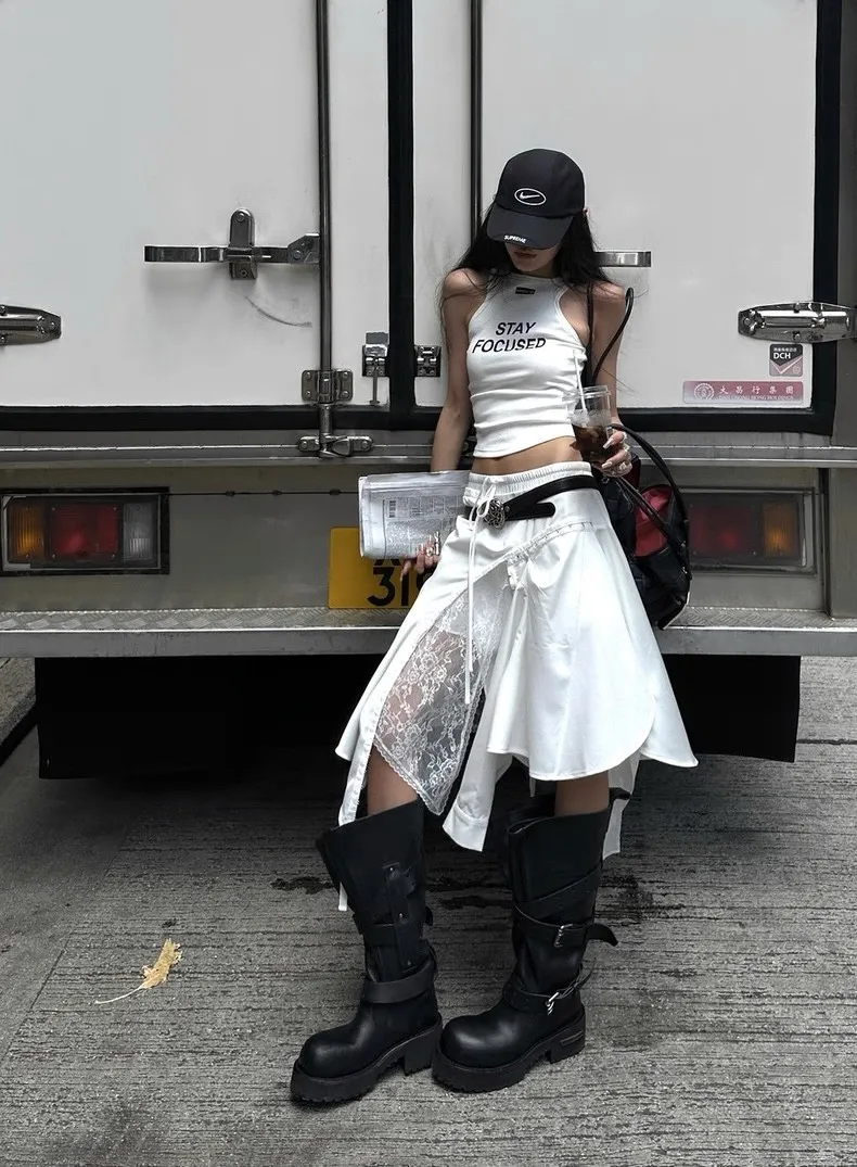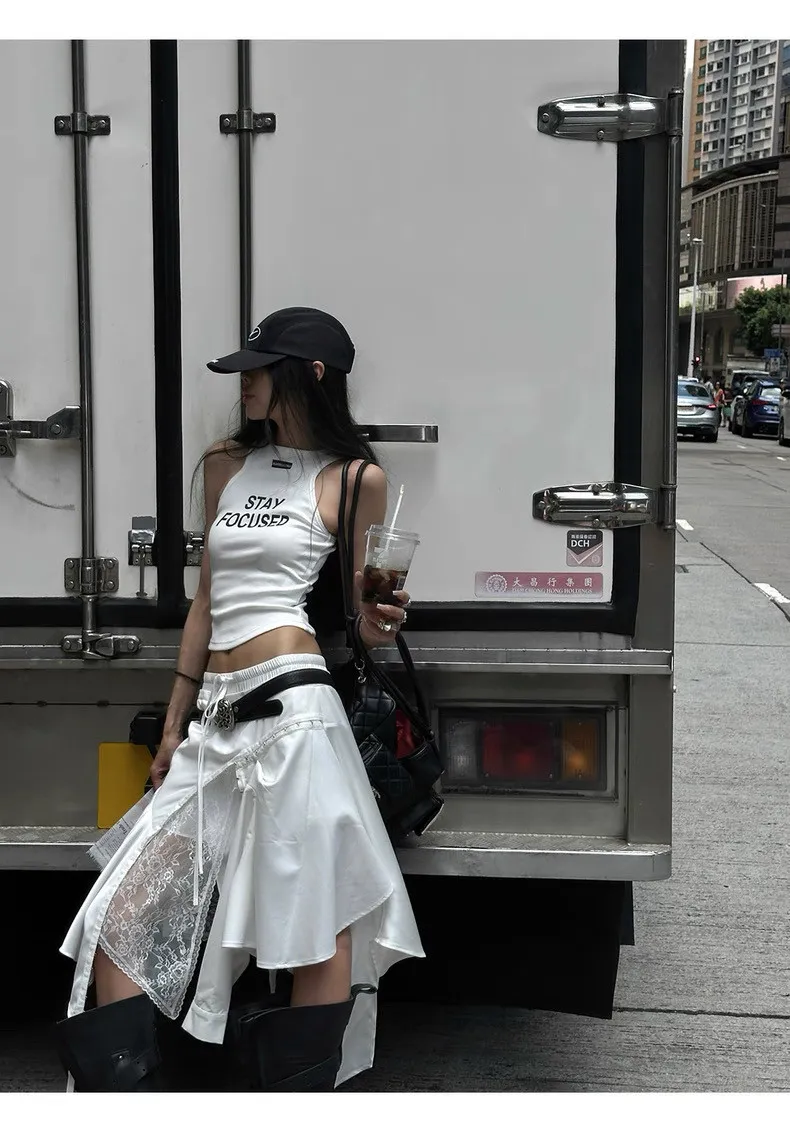 GIRLS 蕾絲拼接 不規則 半身裙(白色)