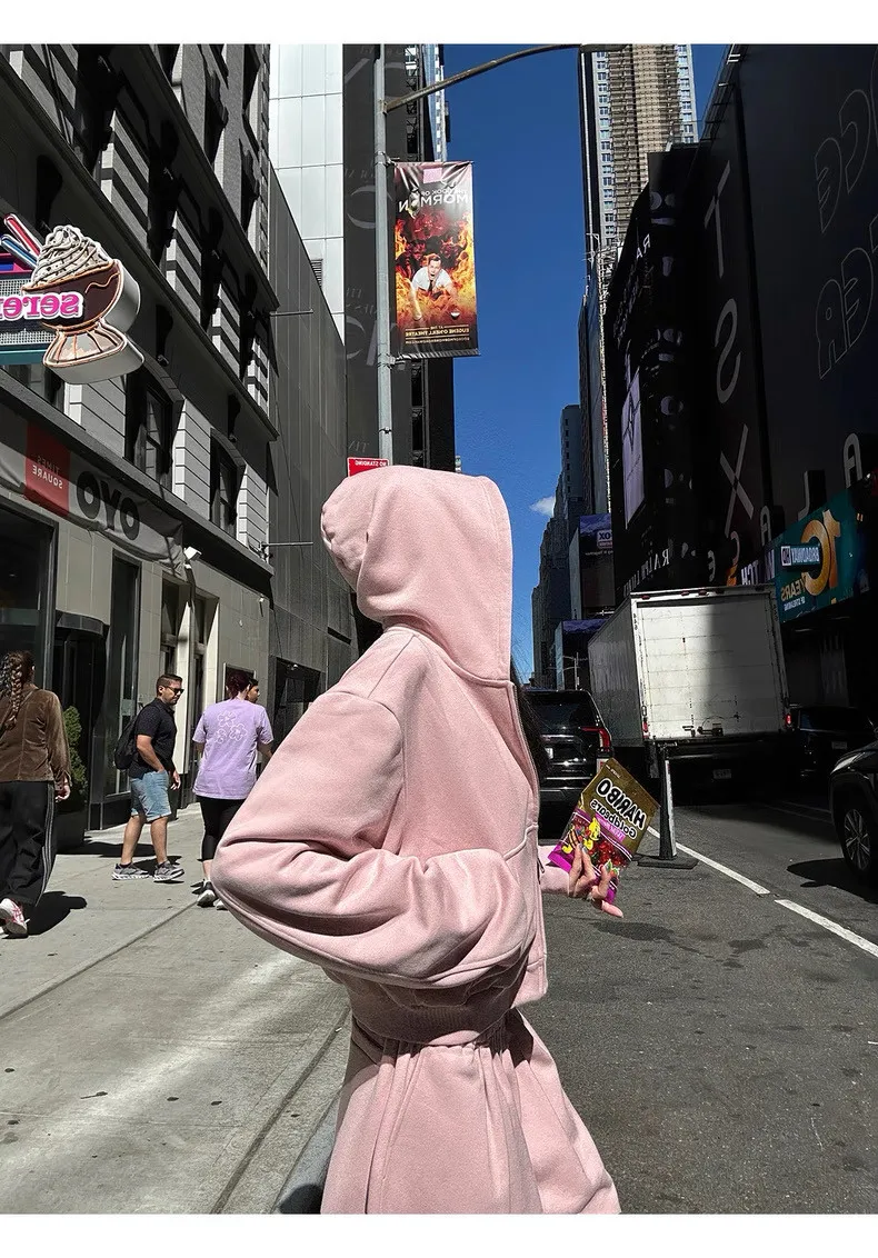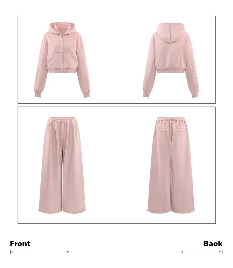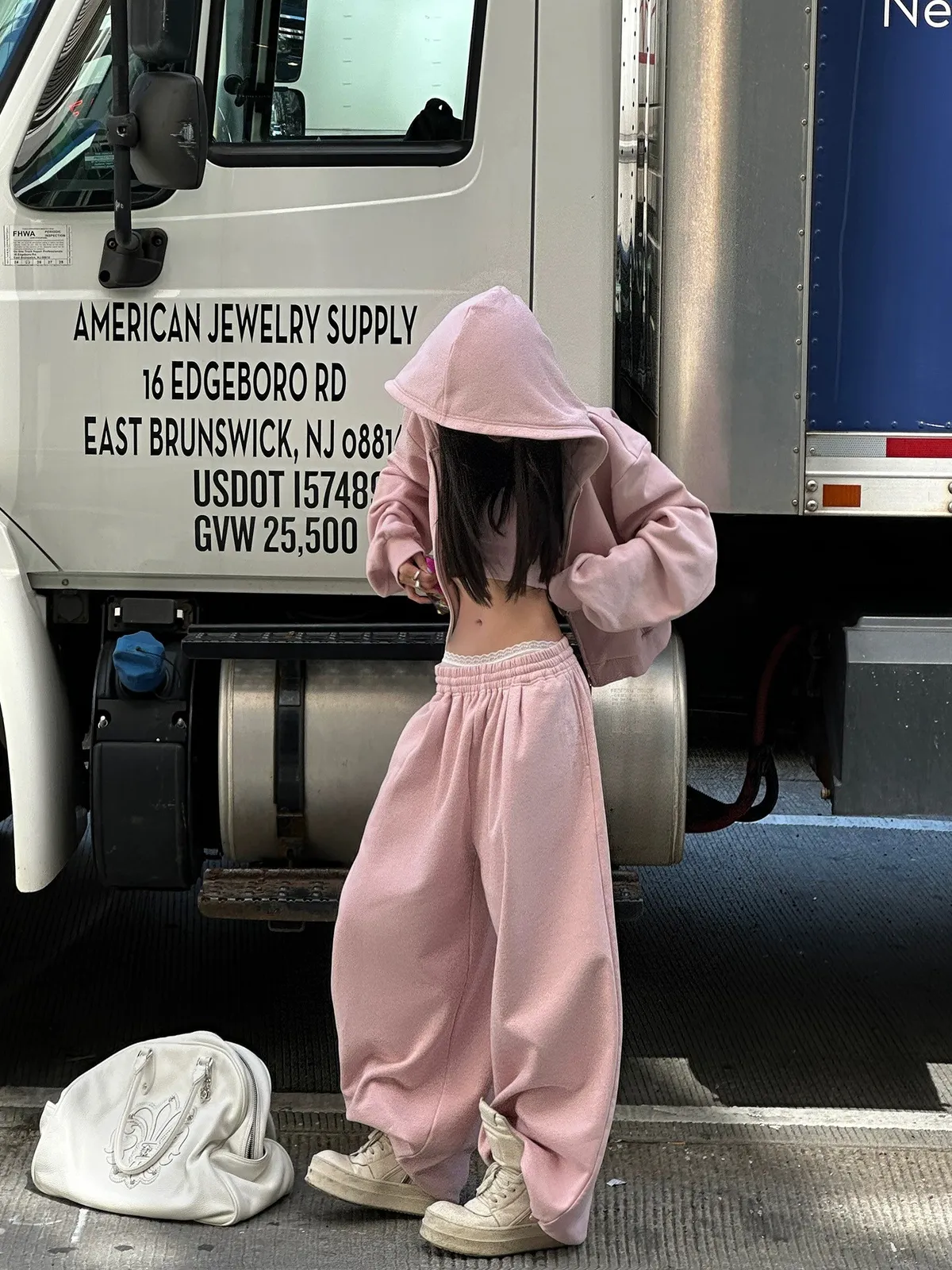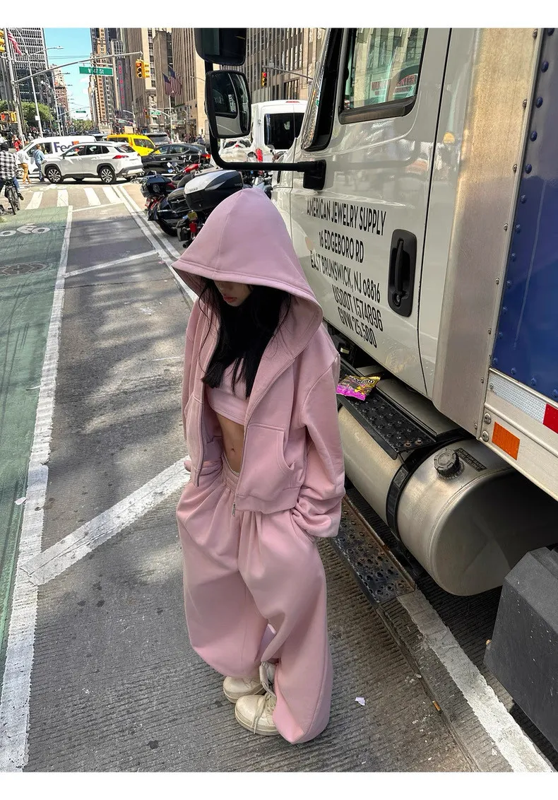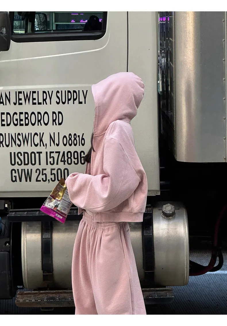 GIRLS 復古美式 連帽外套 背心 棉褲 套裝(淡粉)