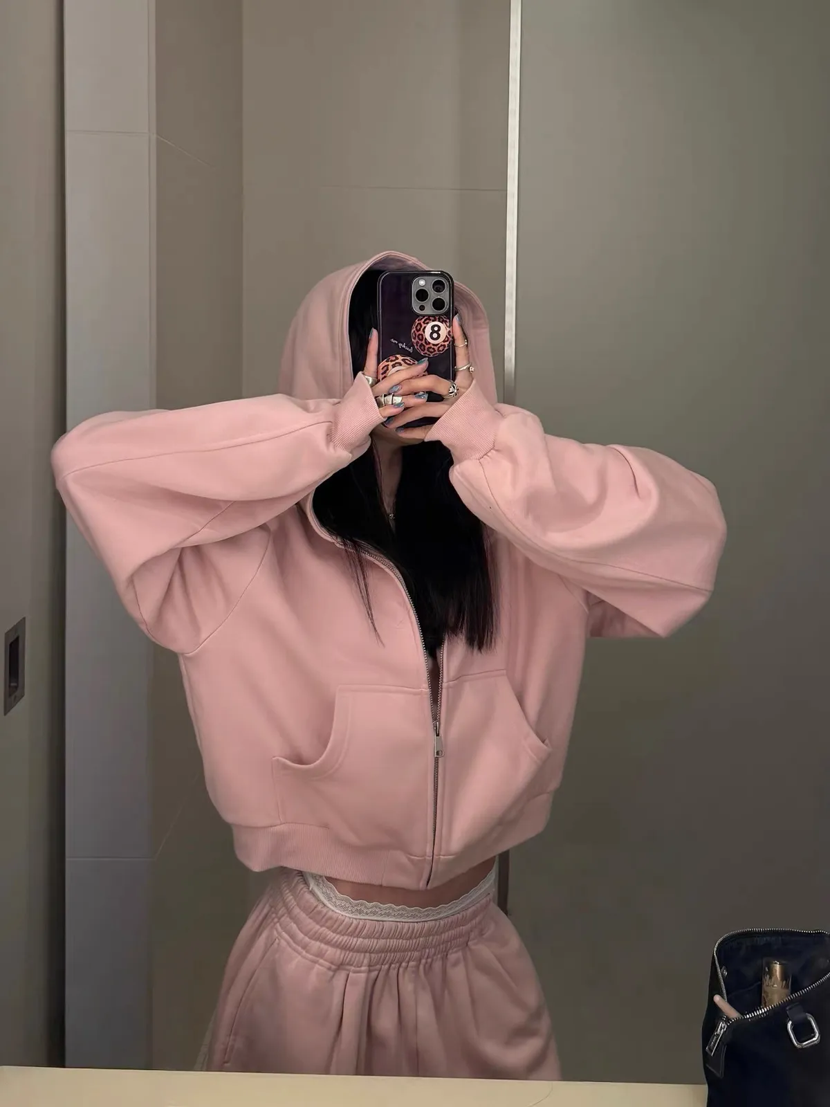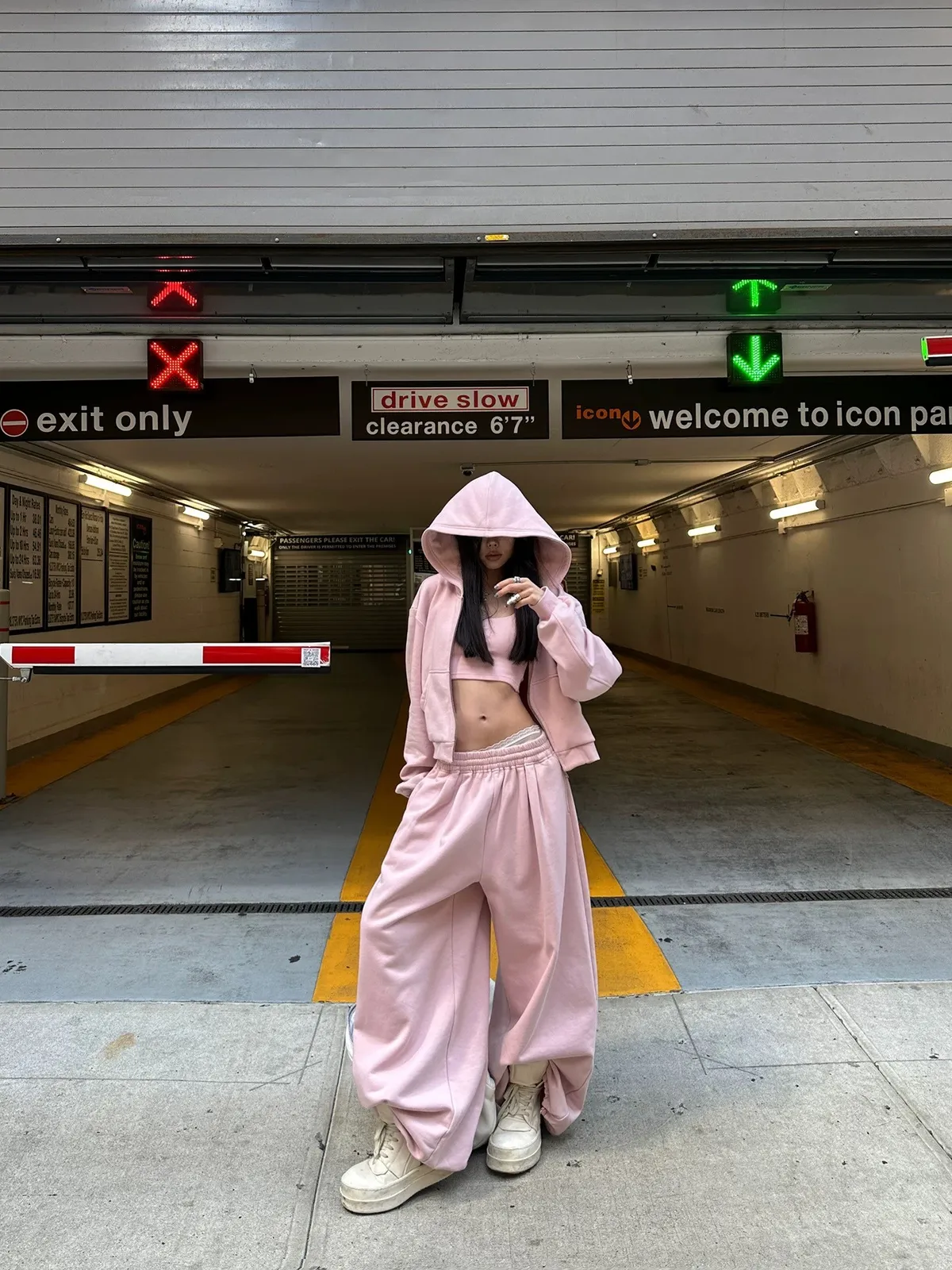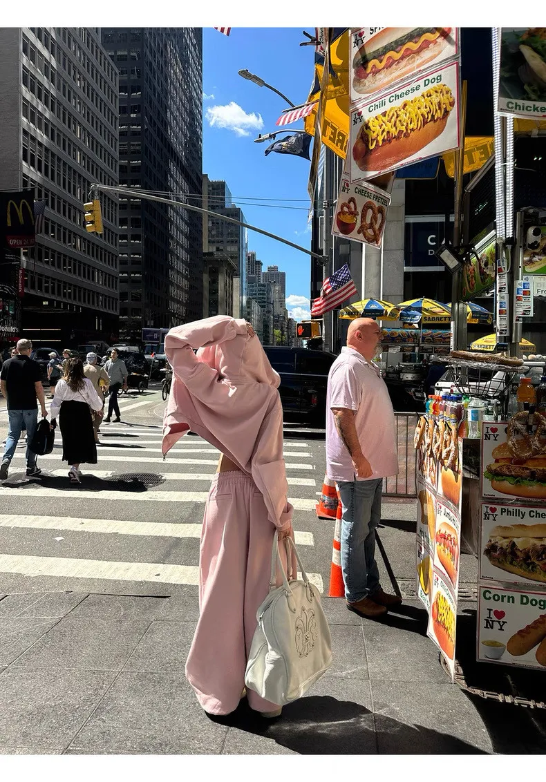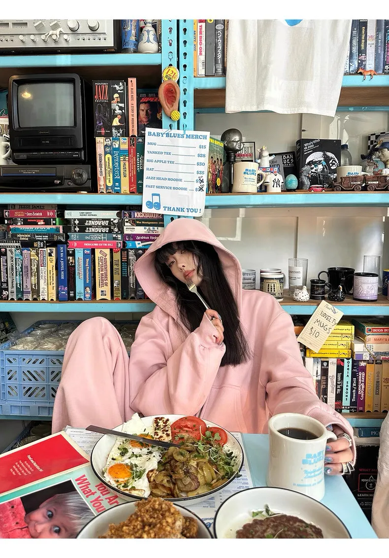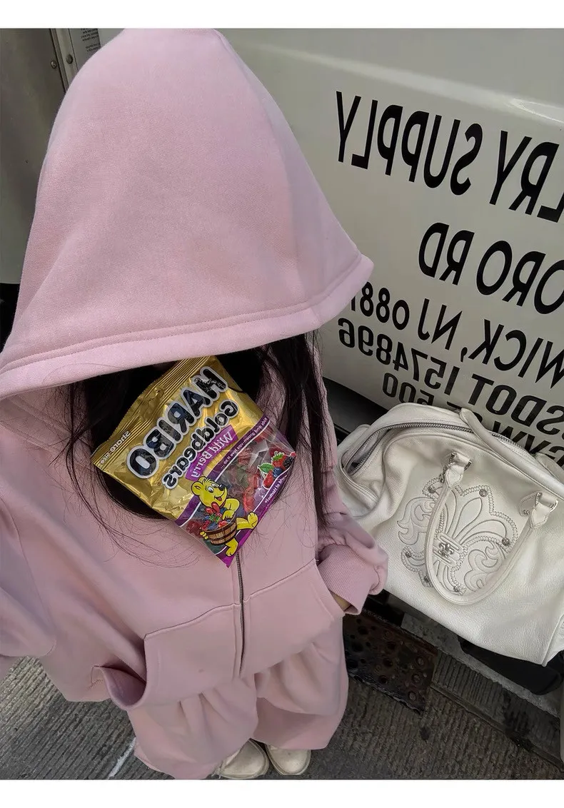GIRLS 復古美式 連帽外套 背心 棉褲 套裝(淡粉)