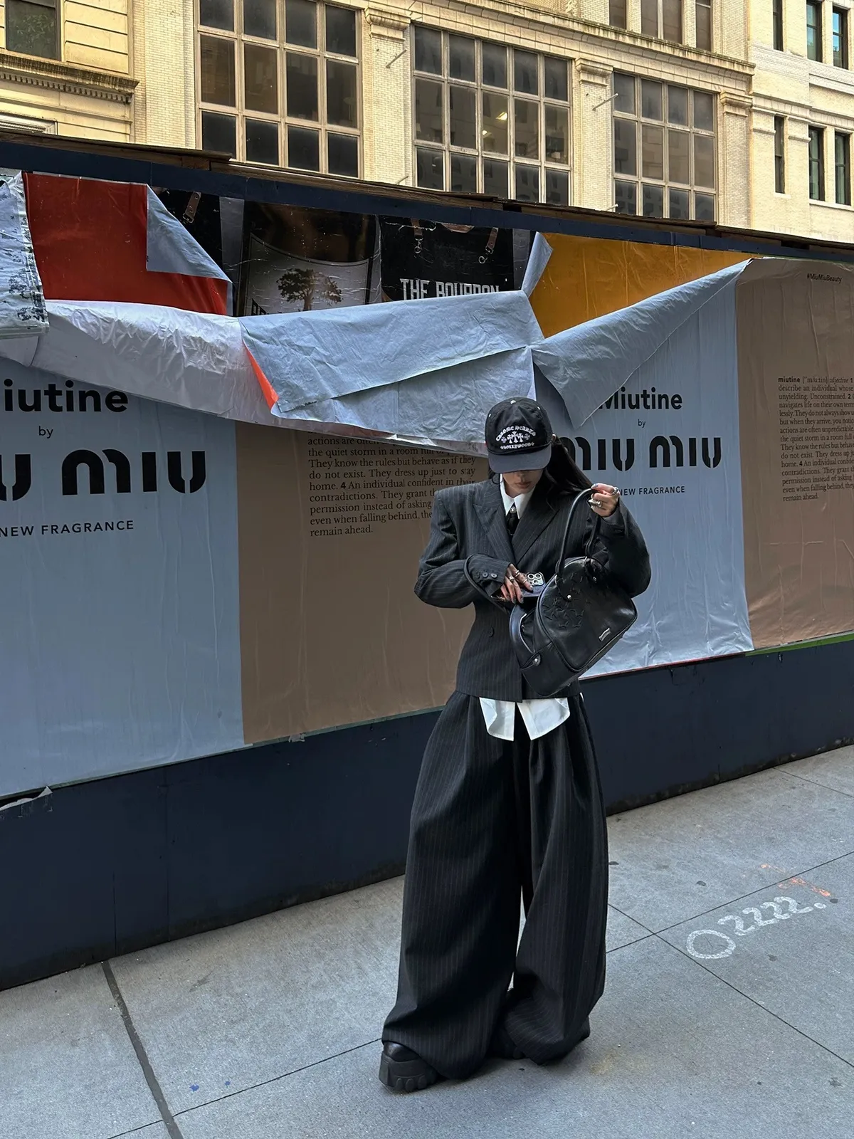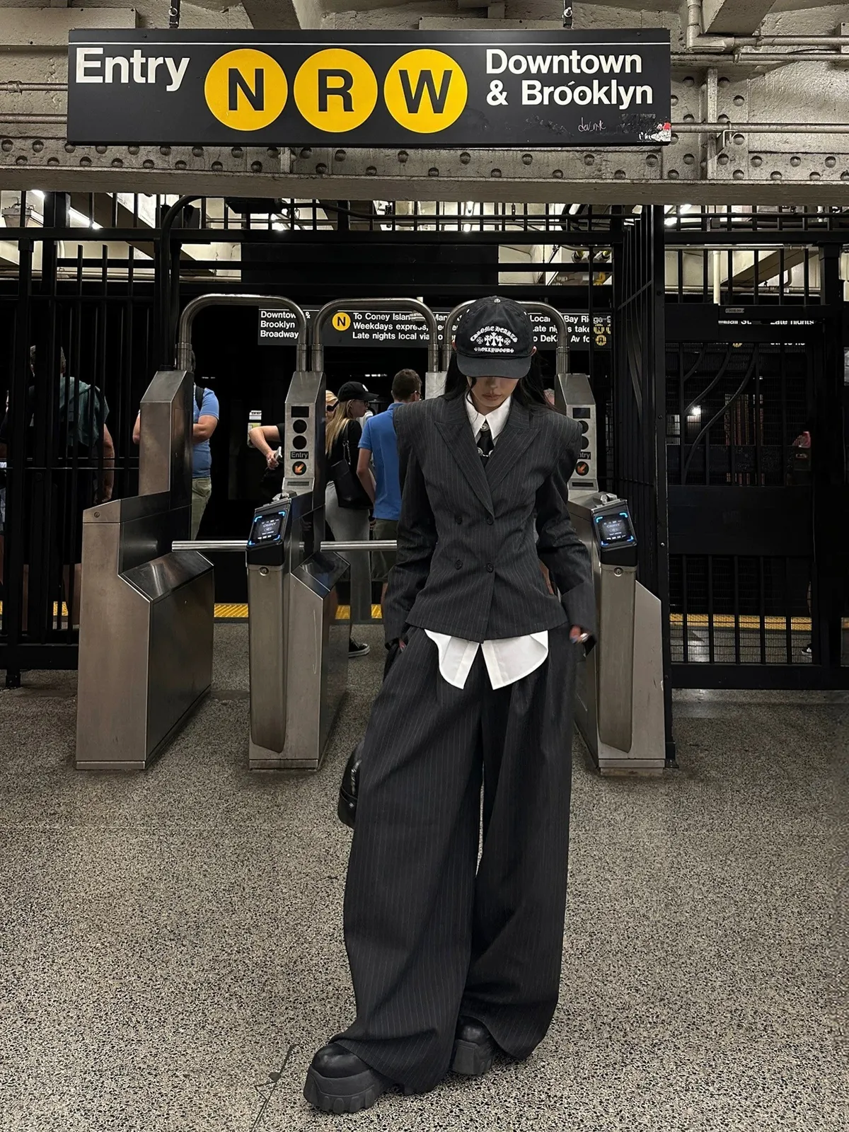 GIRLS 摩登現代 條紋 西裝褲(黑色)
