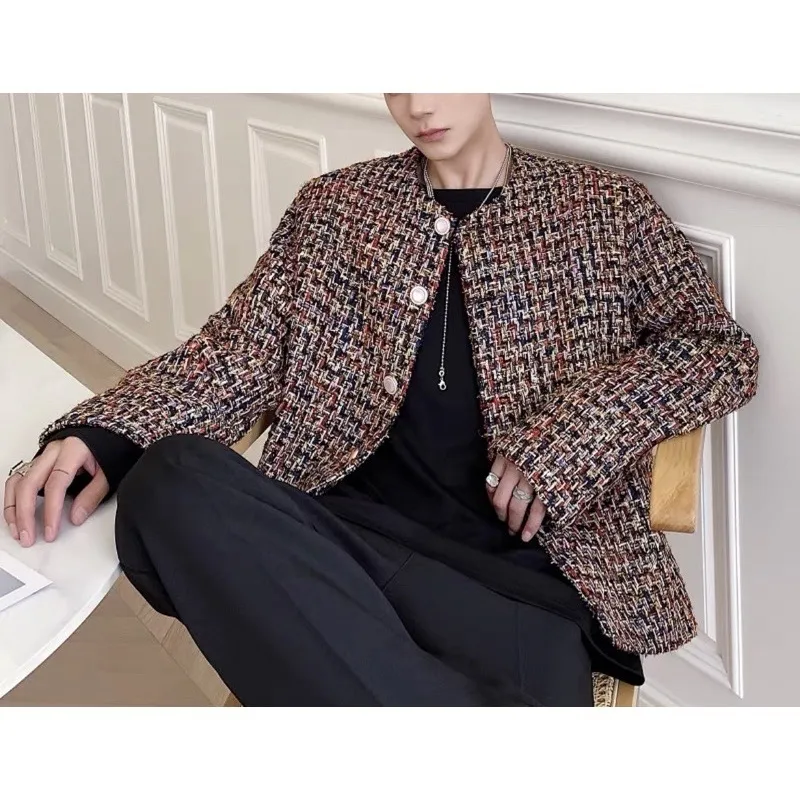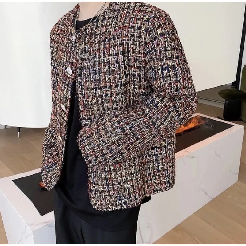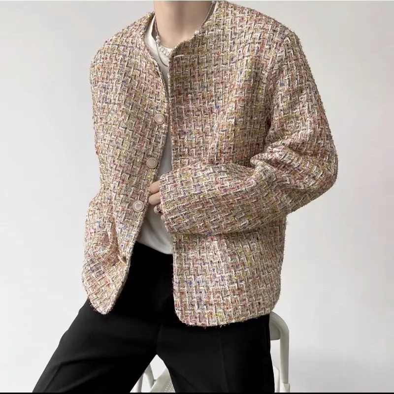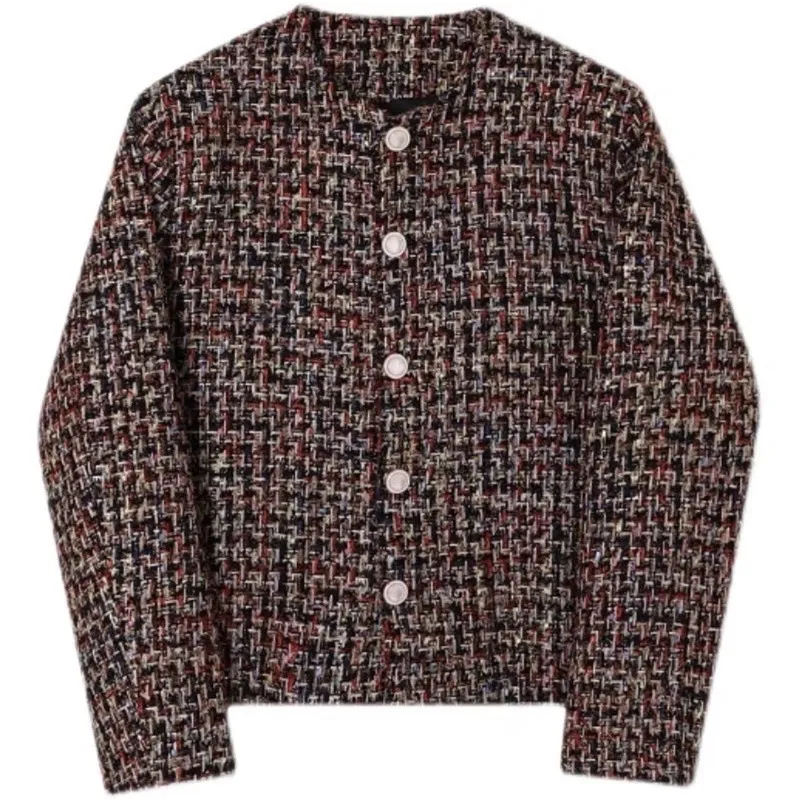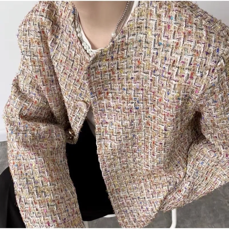 小香風 彩紋編織 珍珠 鈕扣 外套(黑/白)