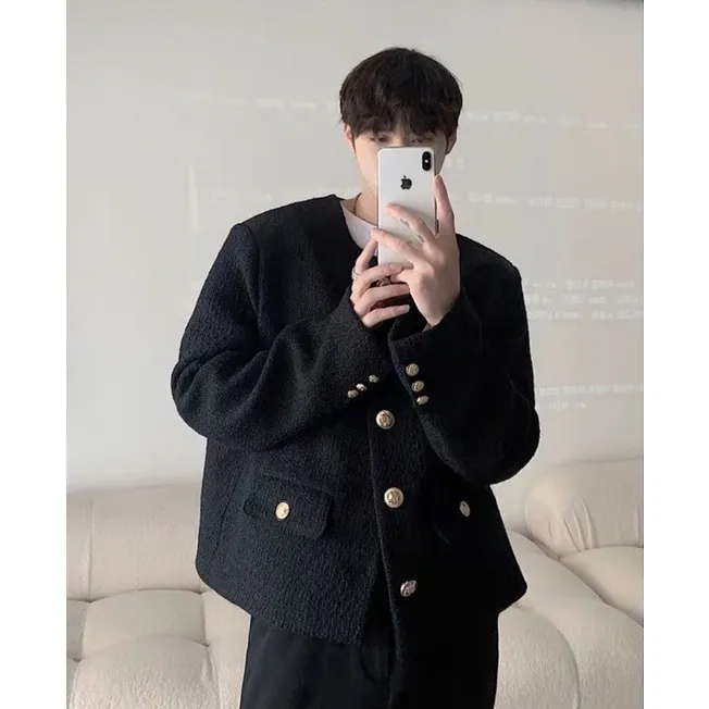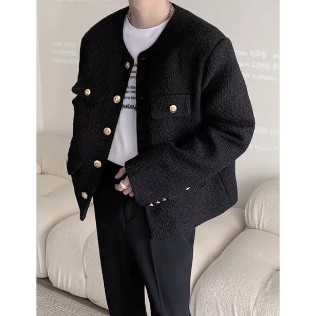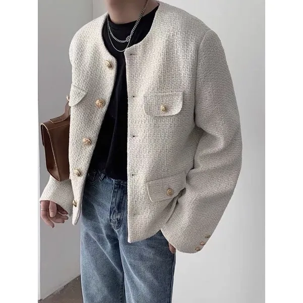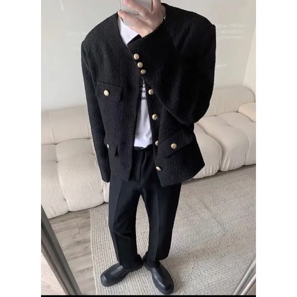 小香風 簡約高級 金釦 圓領外套(黑/白)
