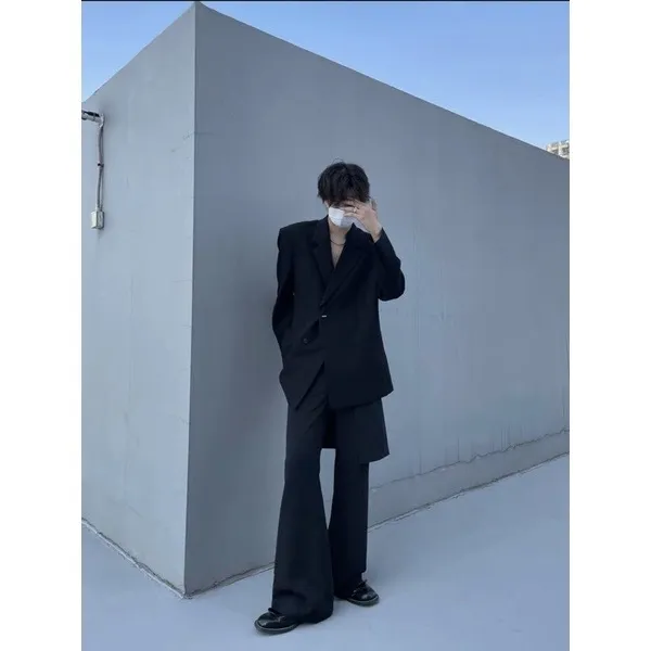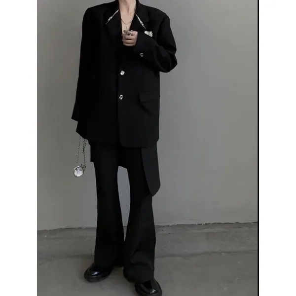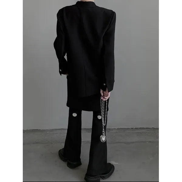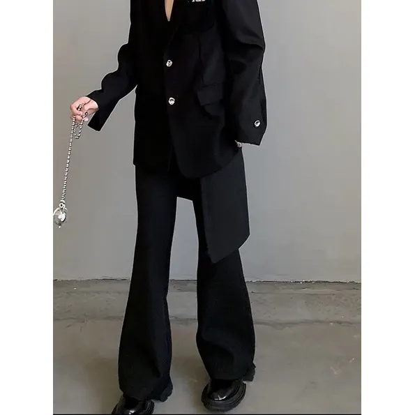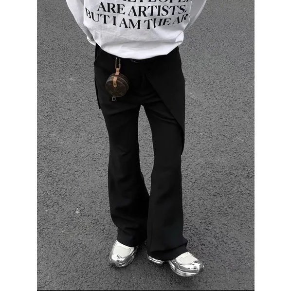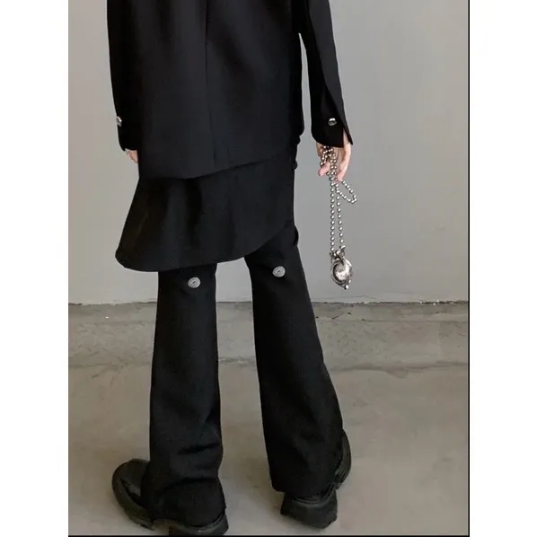 [LAX STUDIO]設計感 小裙襬 鈕釦西裝褲