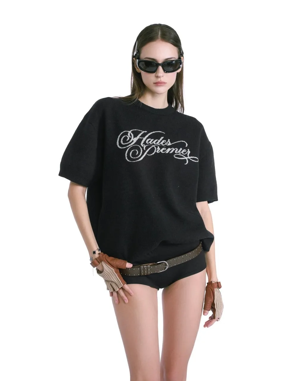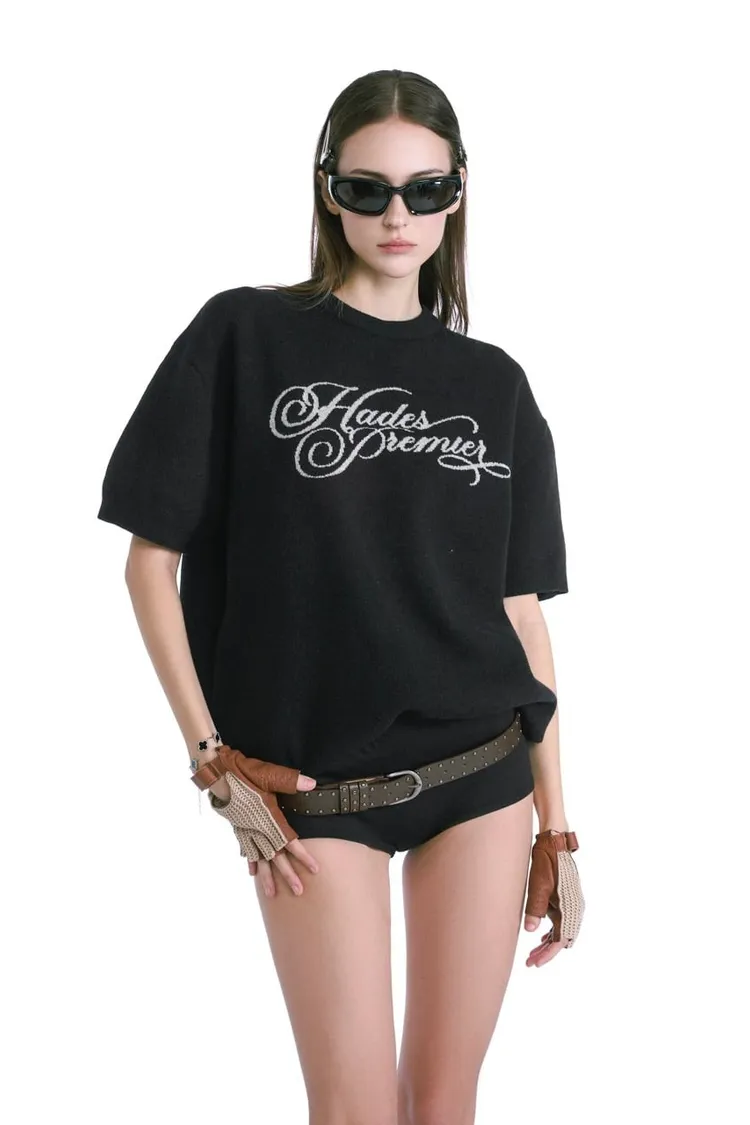 HADES STAMPED KNITTED TEE - BLACK
