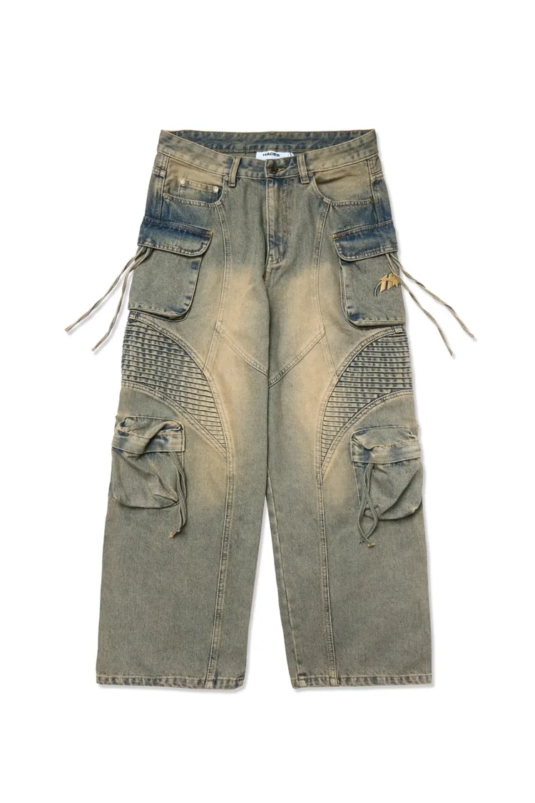 HADES WASH BAGGY DENIM TROUSERS - BLUE