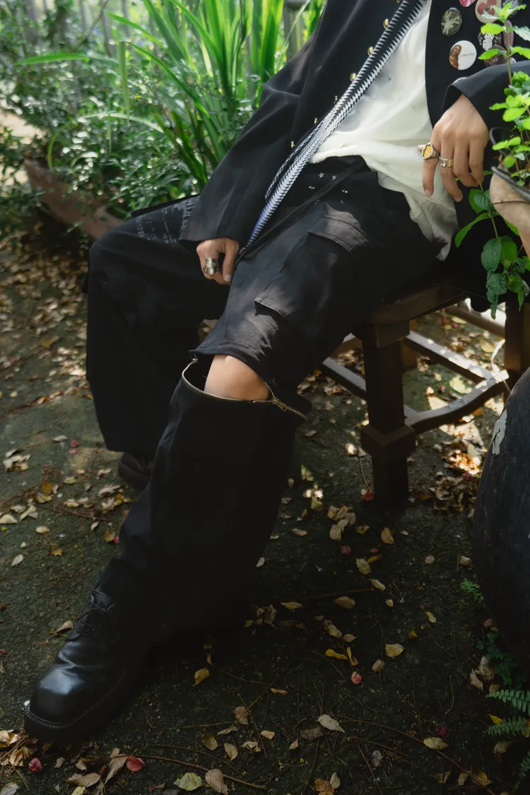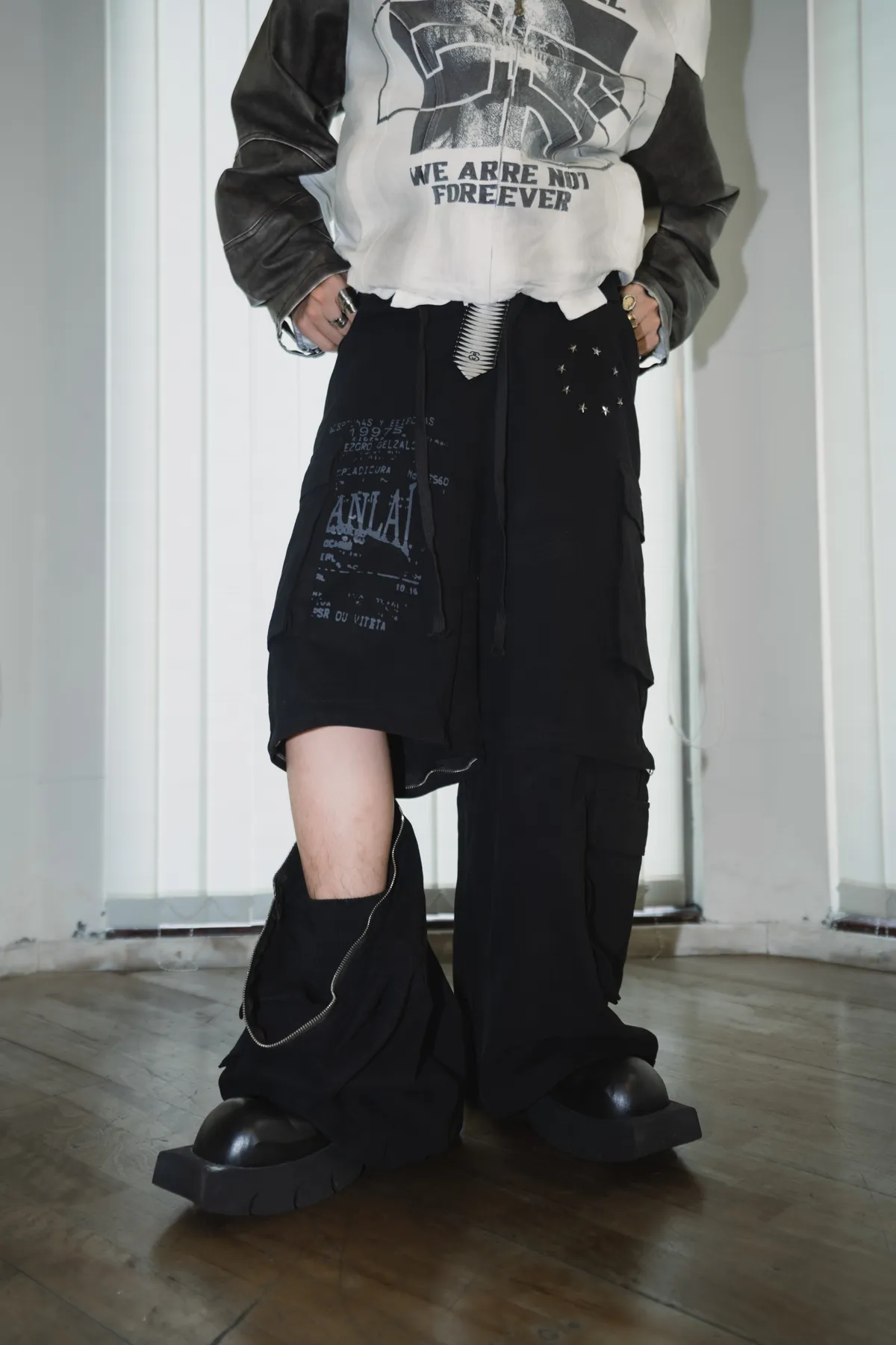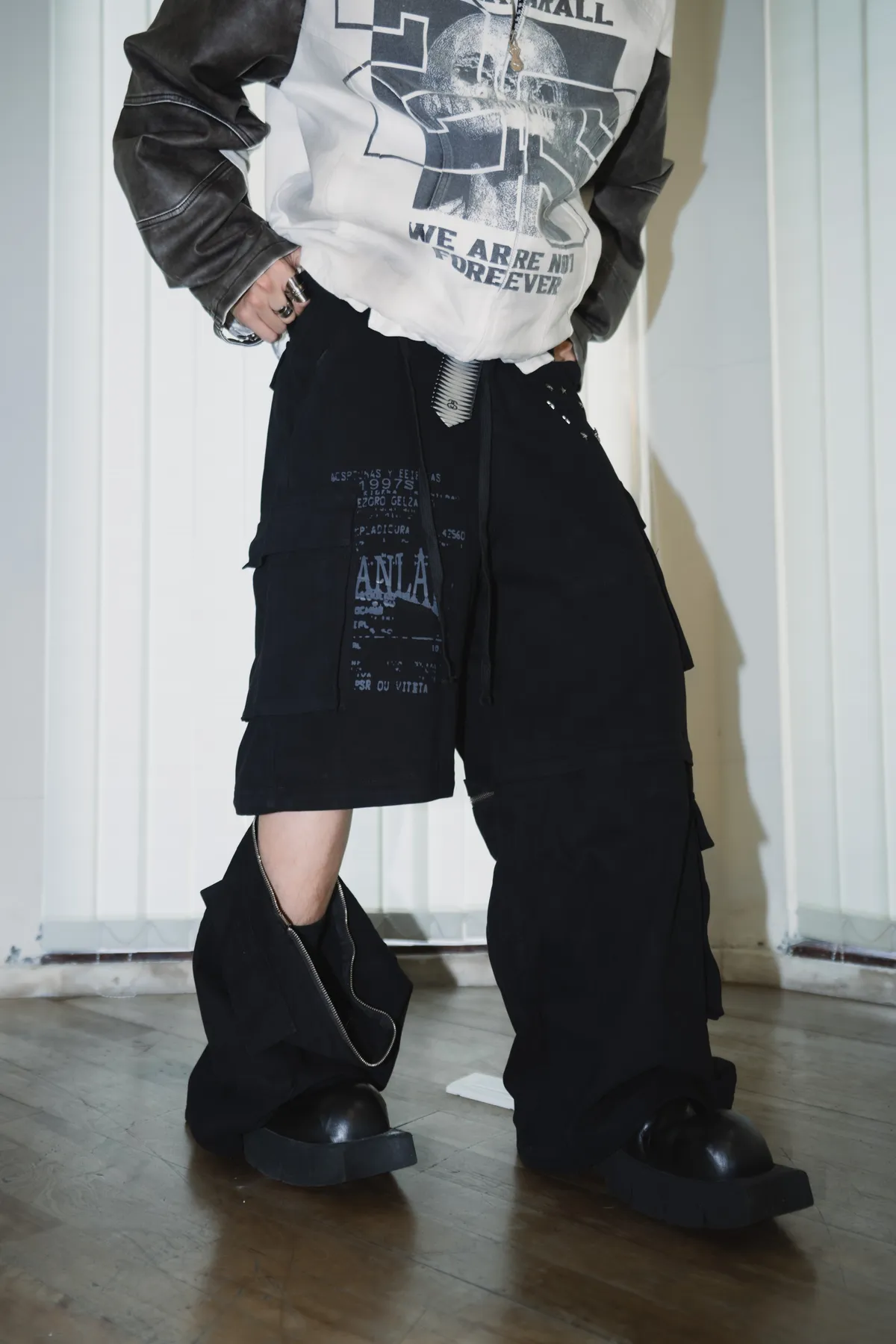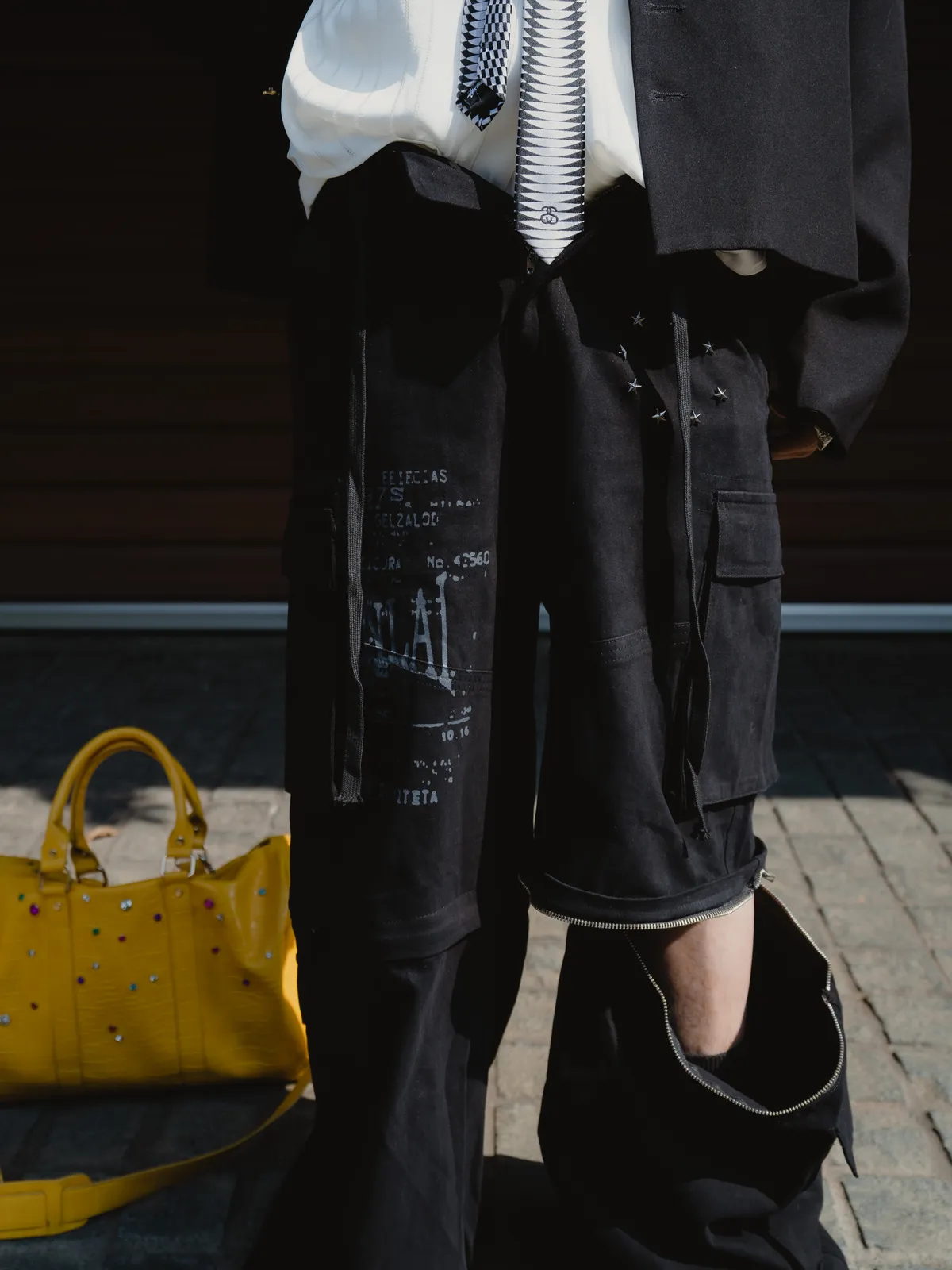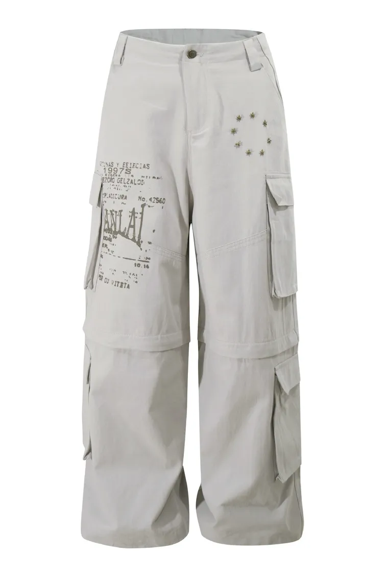 立體環星 可拆褲管 口袋長褲(黑/灰)