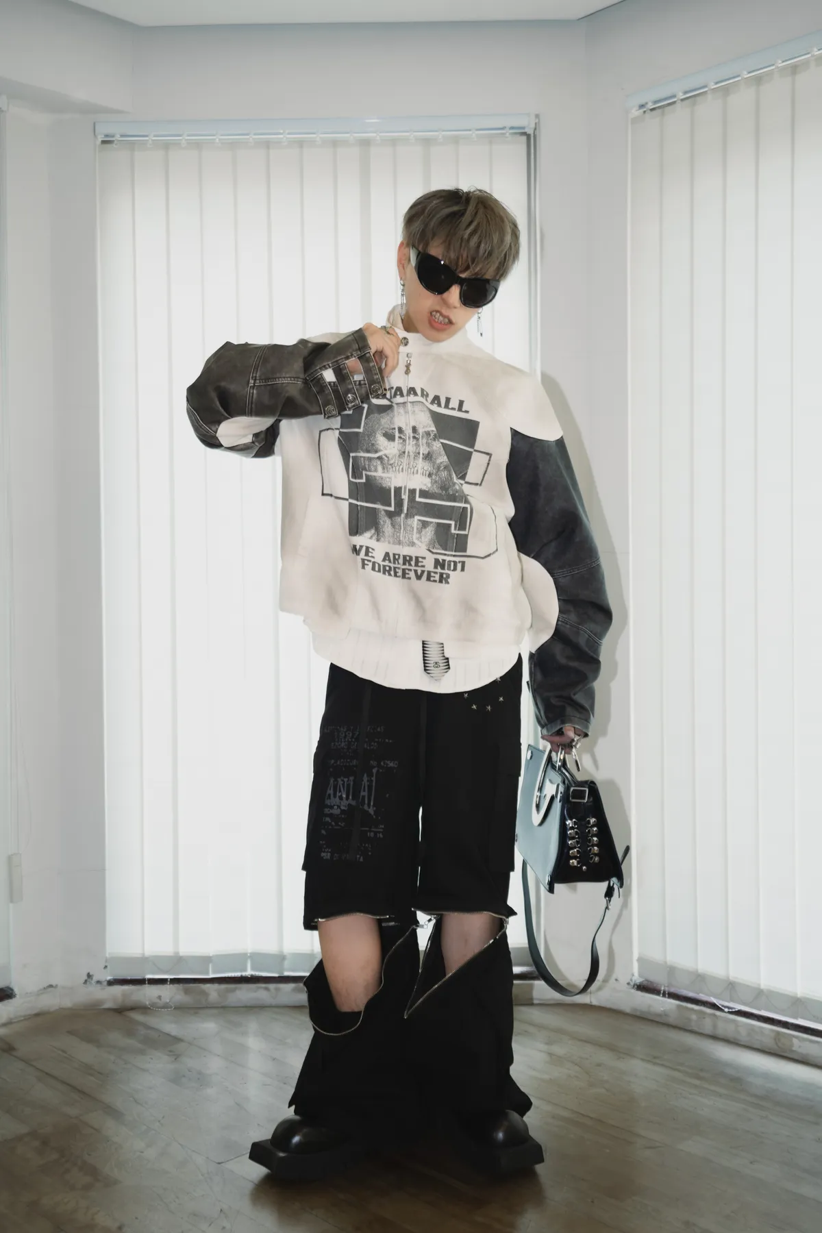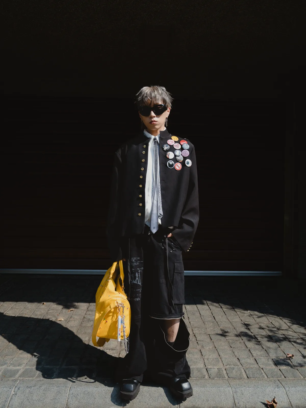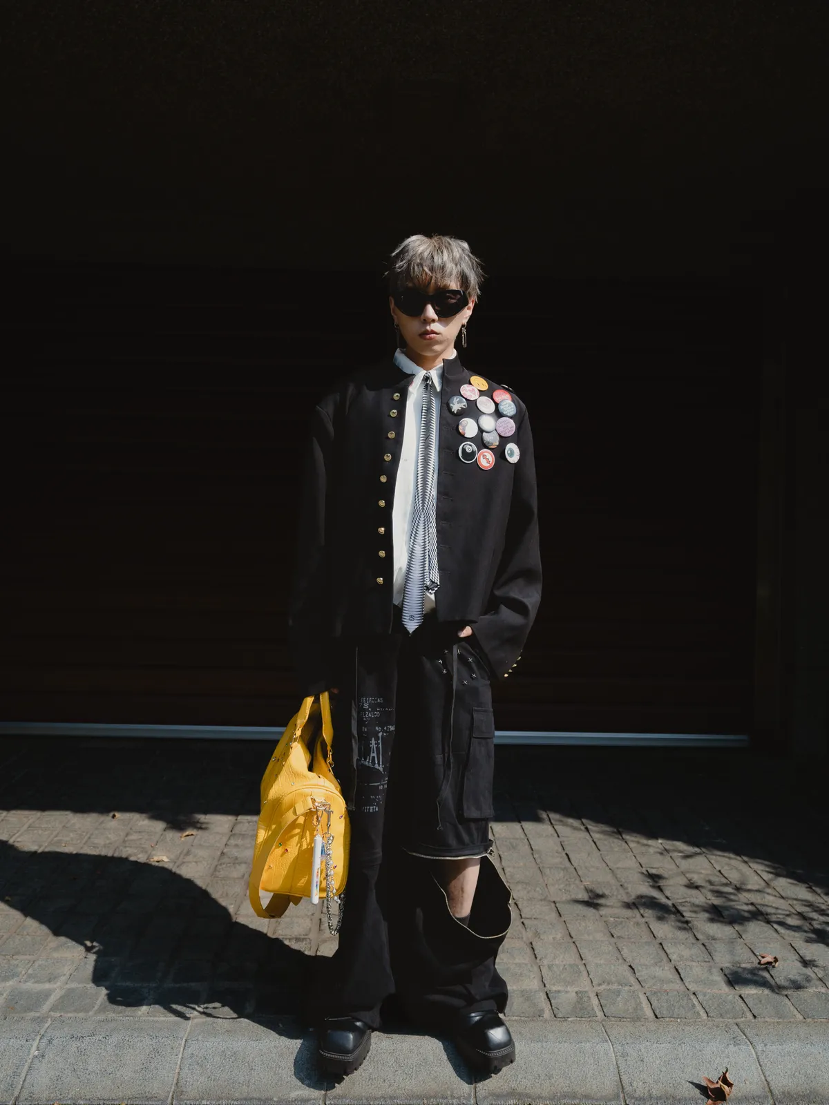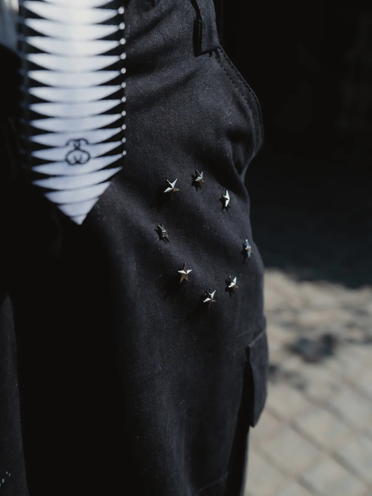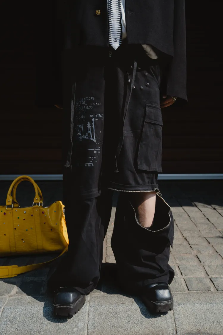 立體環星 可拆褲管 口袋長褲(黑/灰)