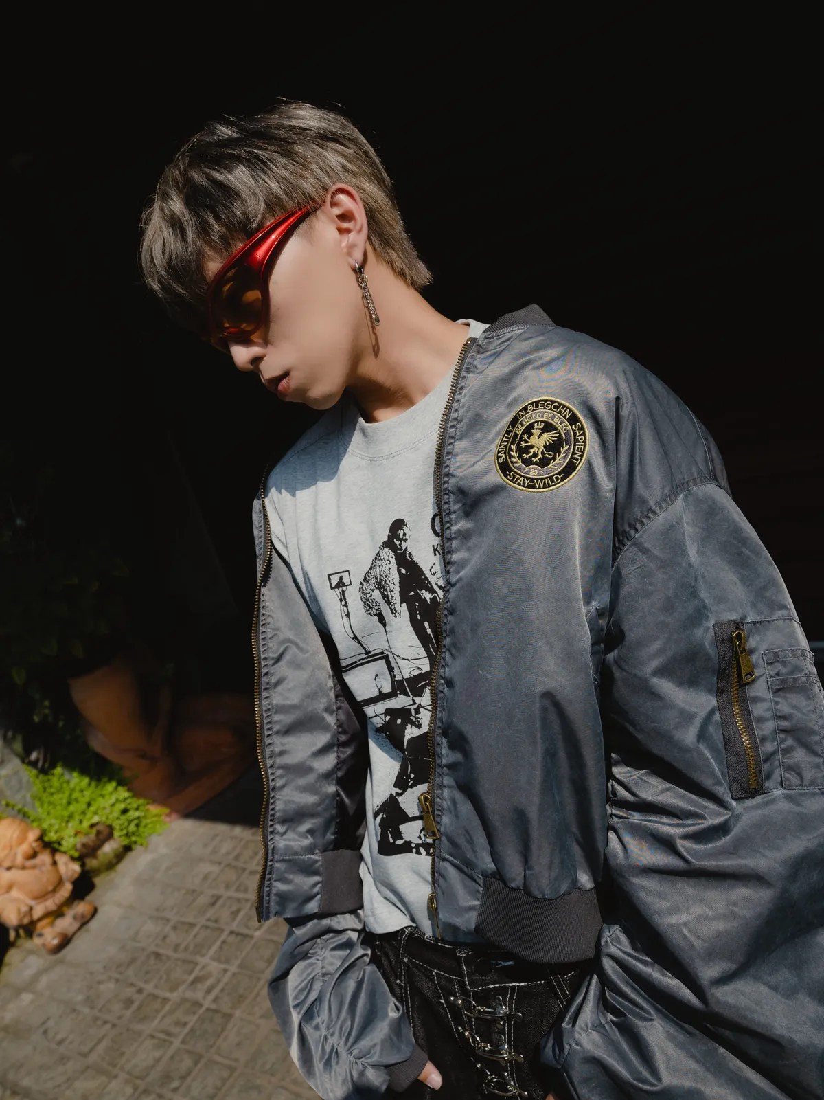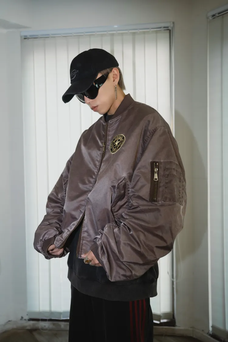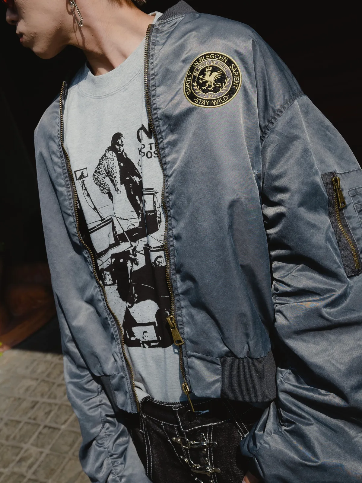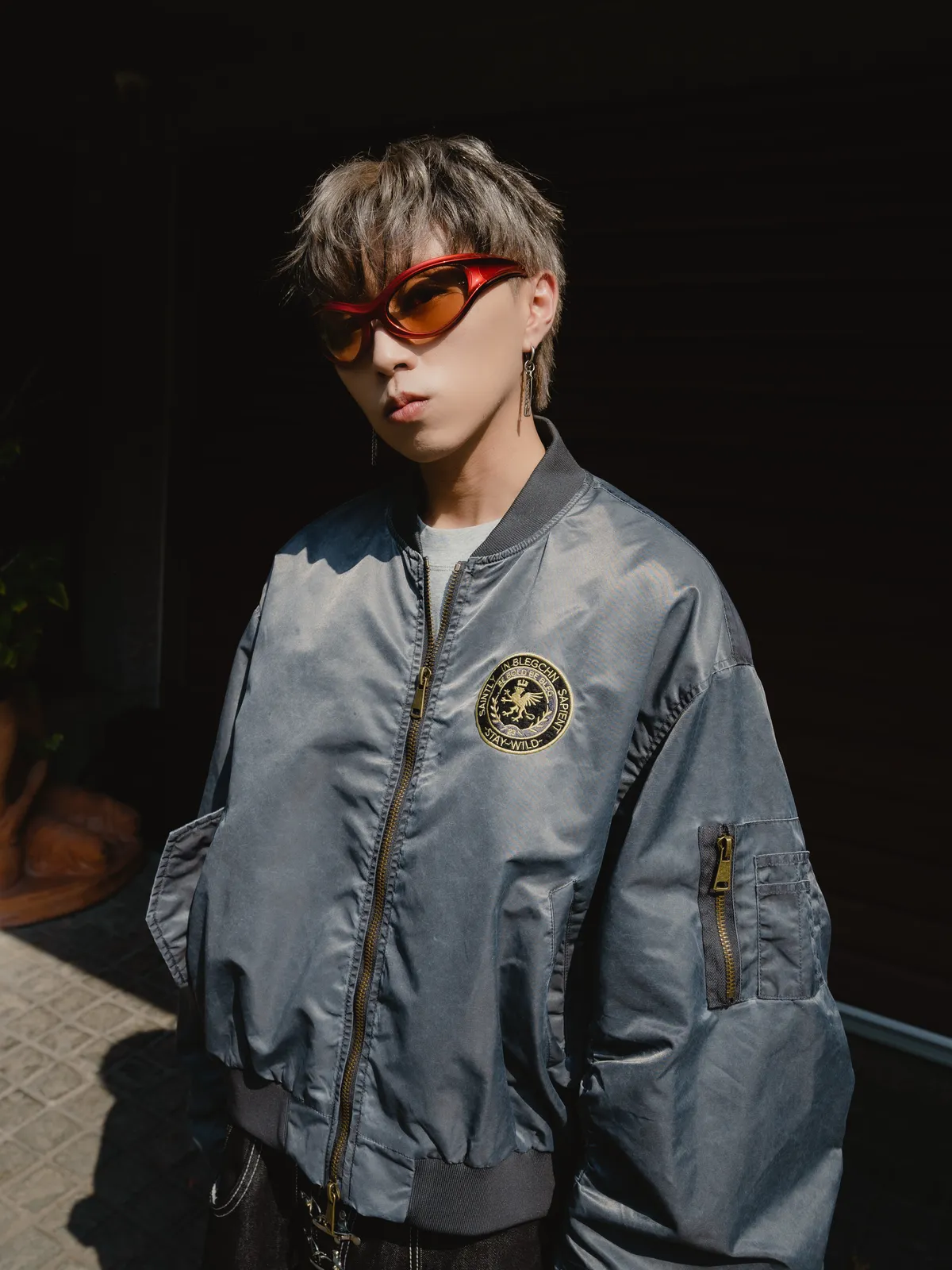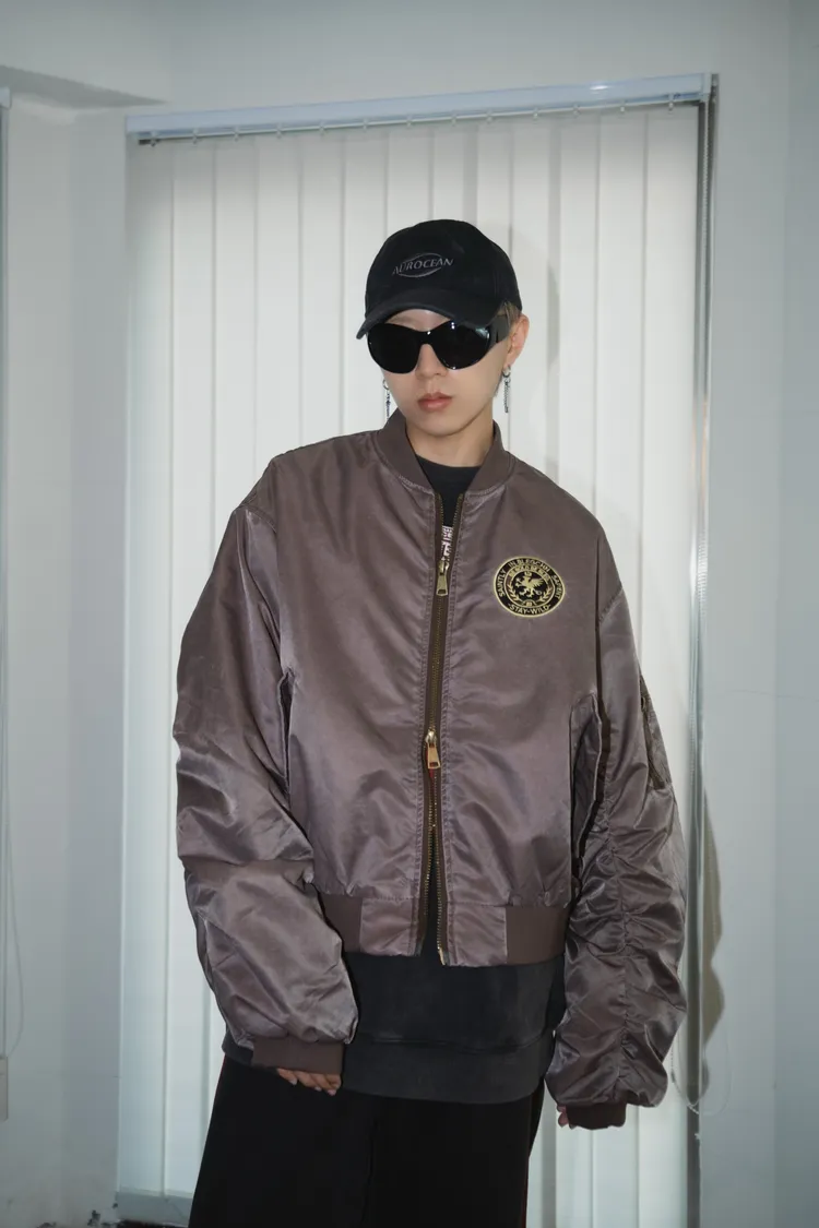 徽章巨袖 雙拉鍊 MA-1 外套(灰/紫/藍/綠)