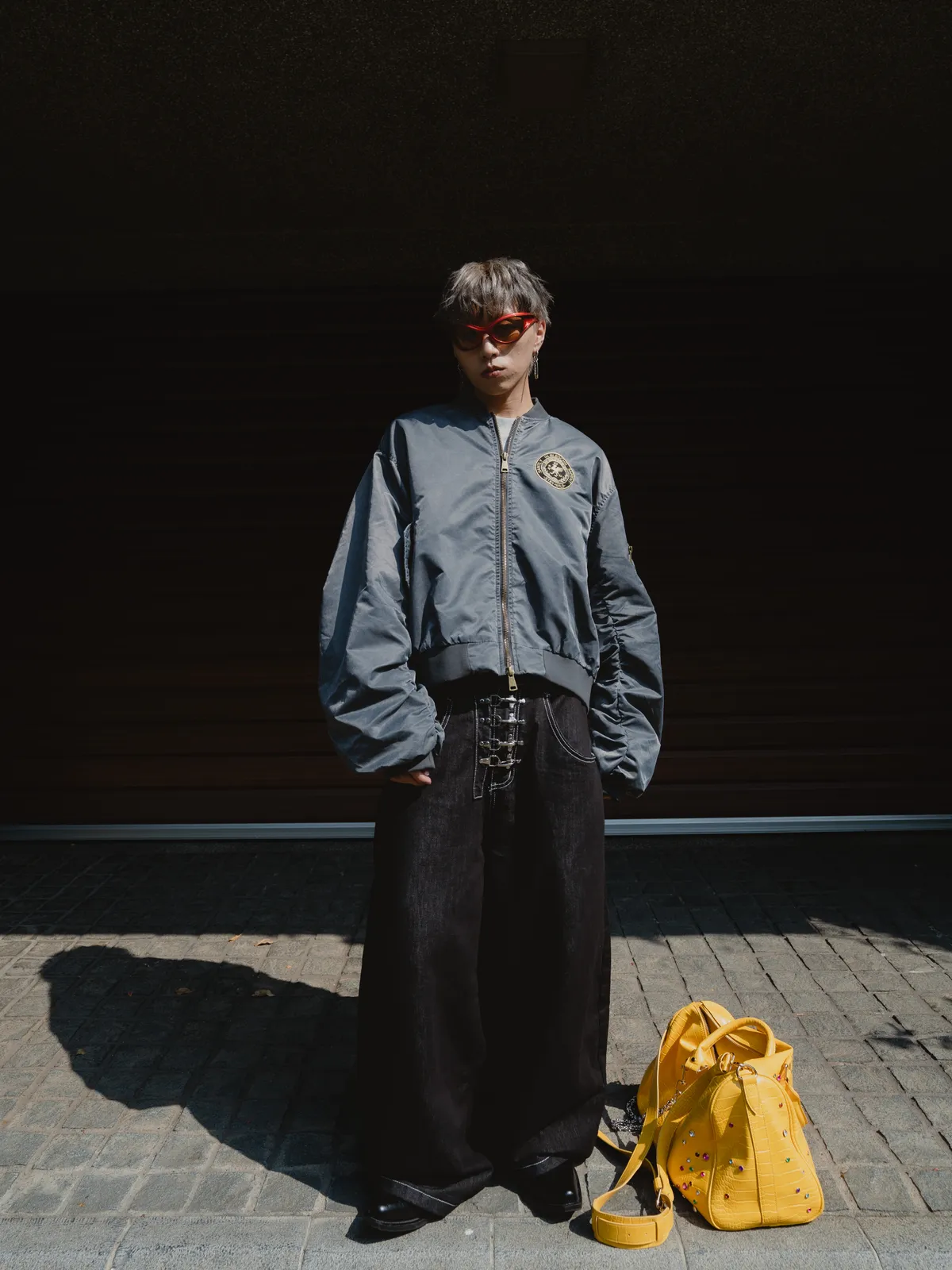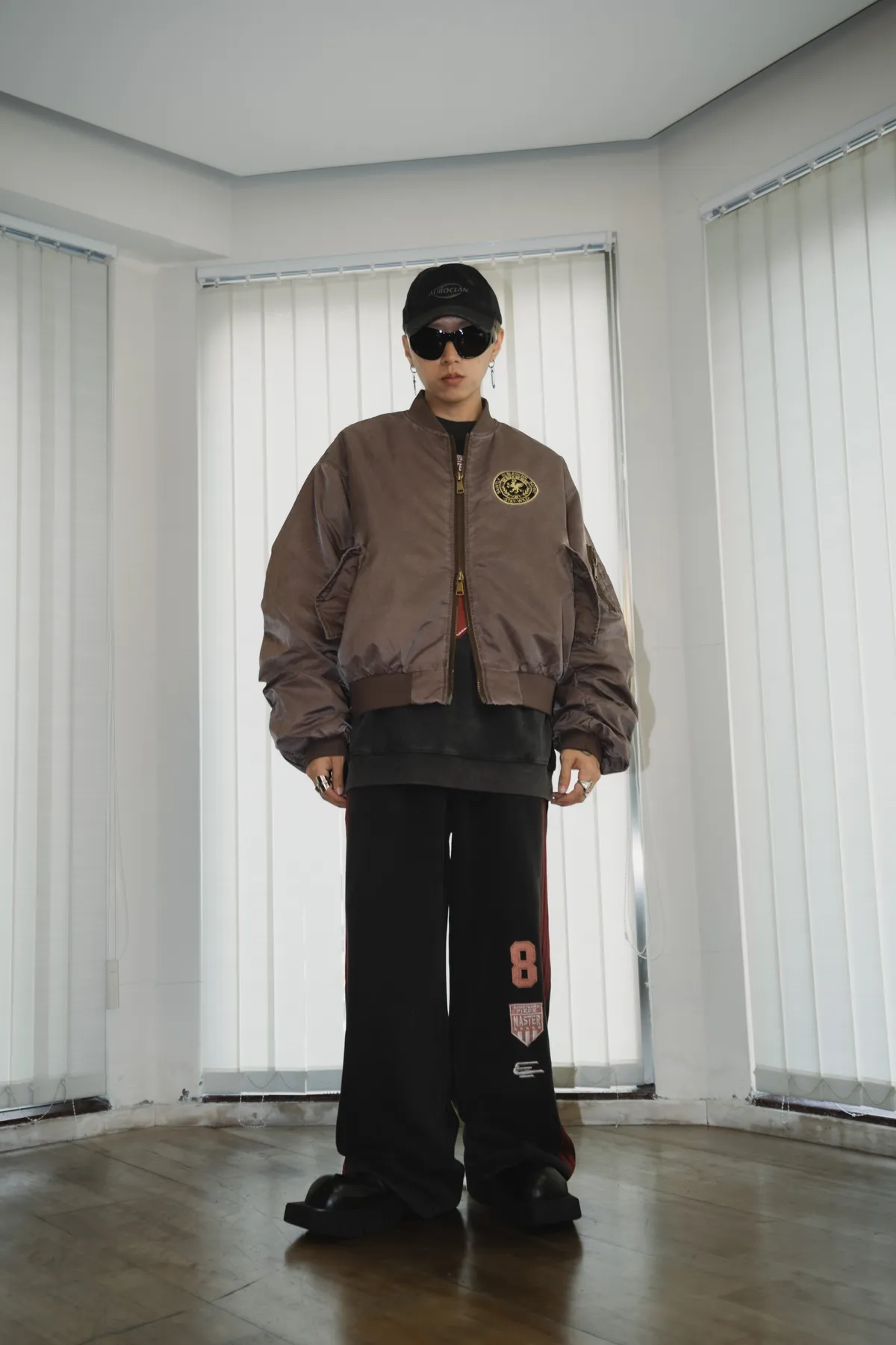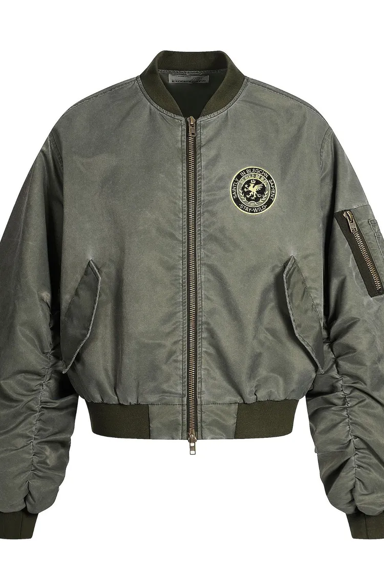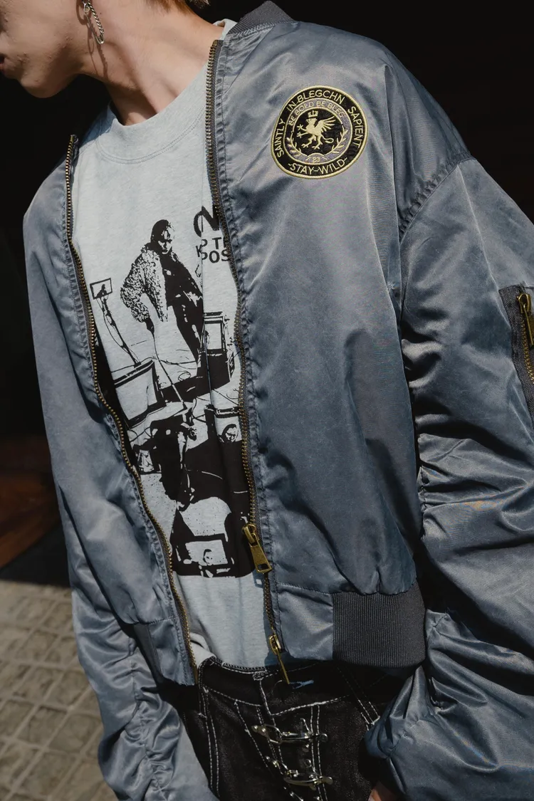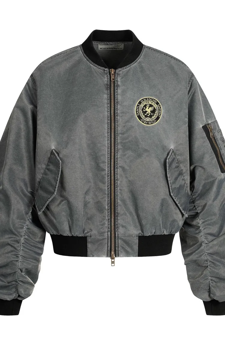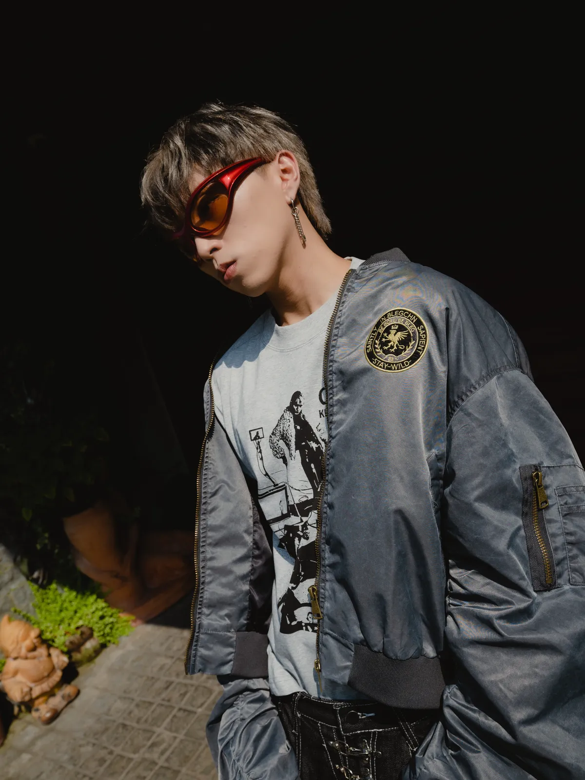 徽章巨袖 雙拉鍊 MA-1 外套(灰/紫/藍/綠)