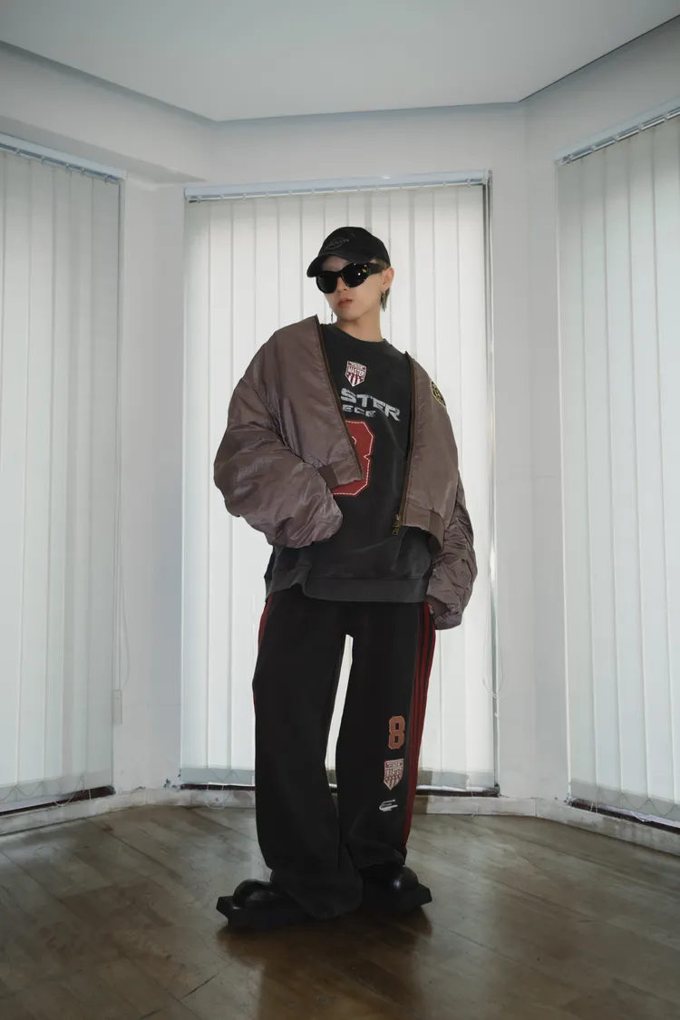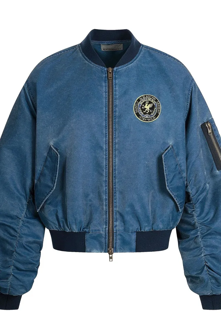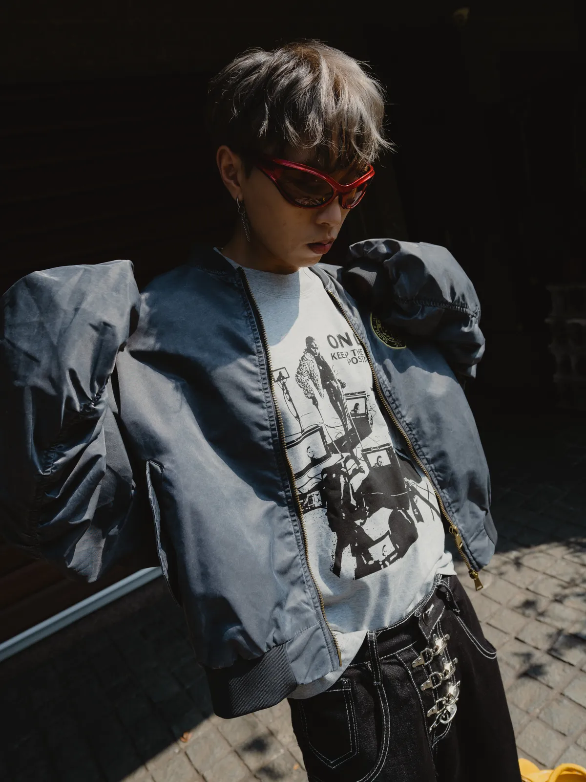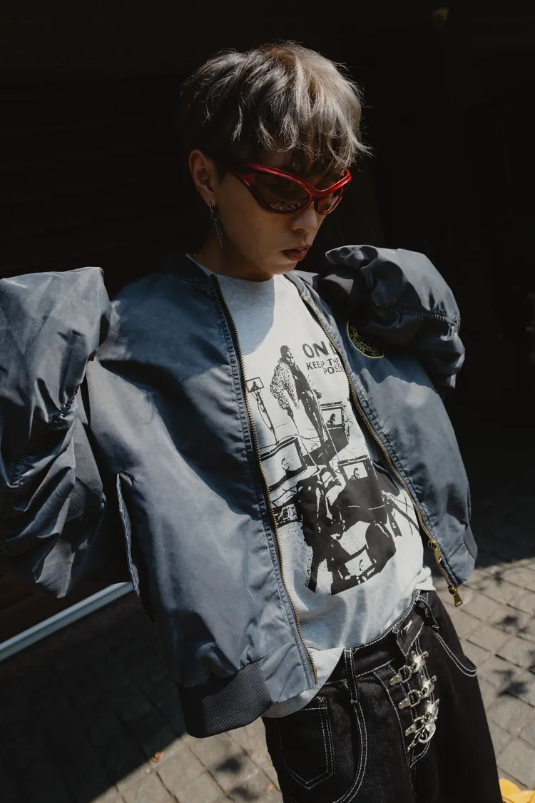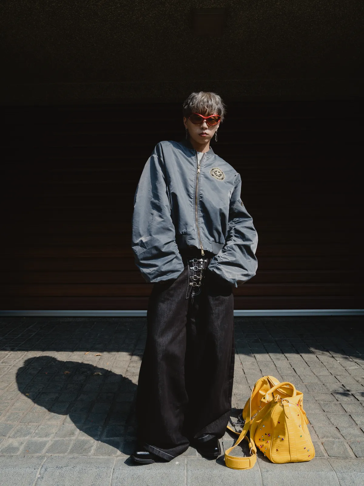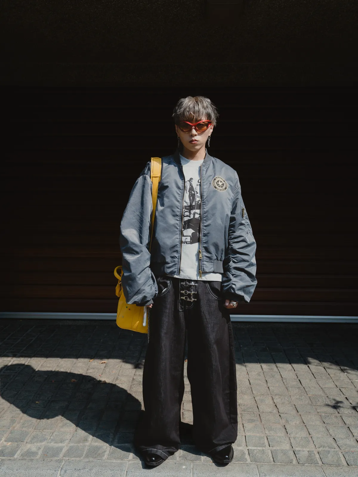 徽章巨袖 雙拉鍊 MA-1 外套(灰/紫/藍/綠)
