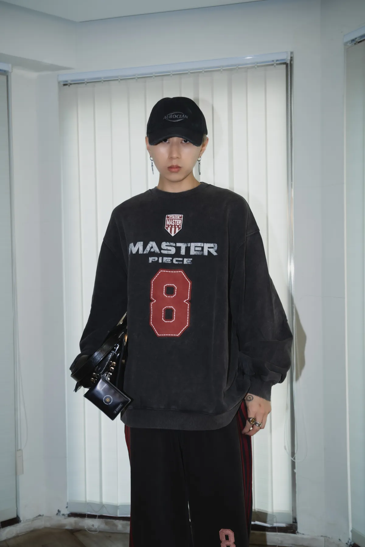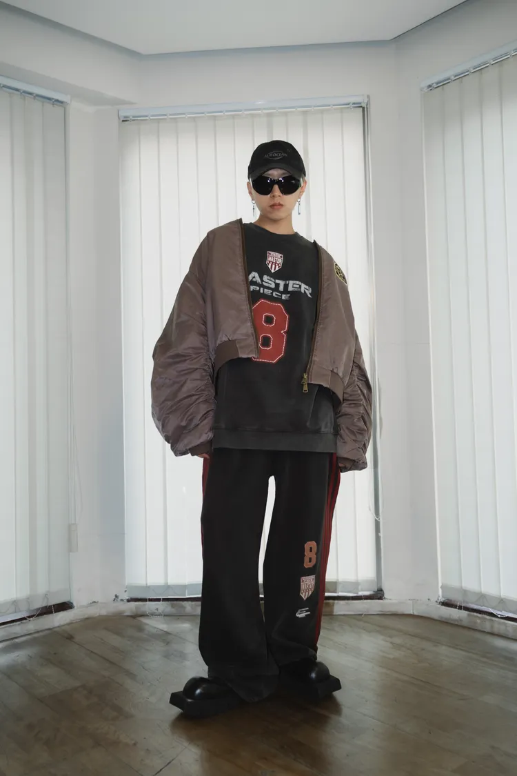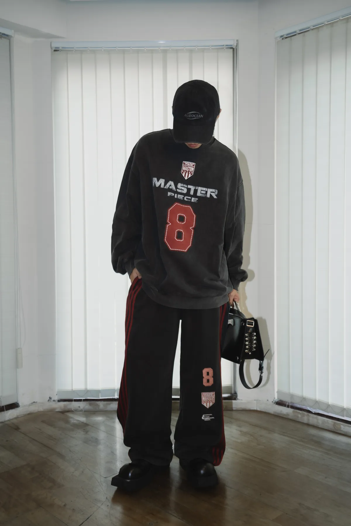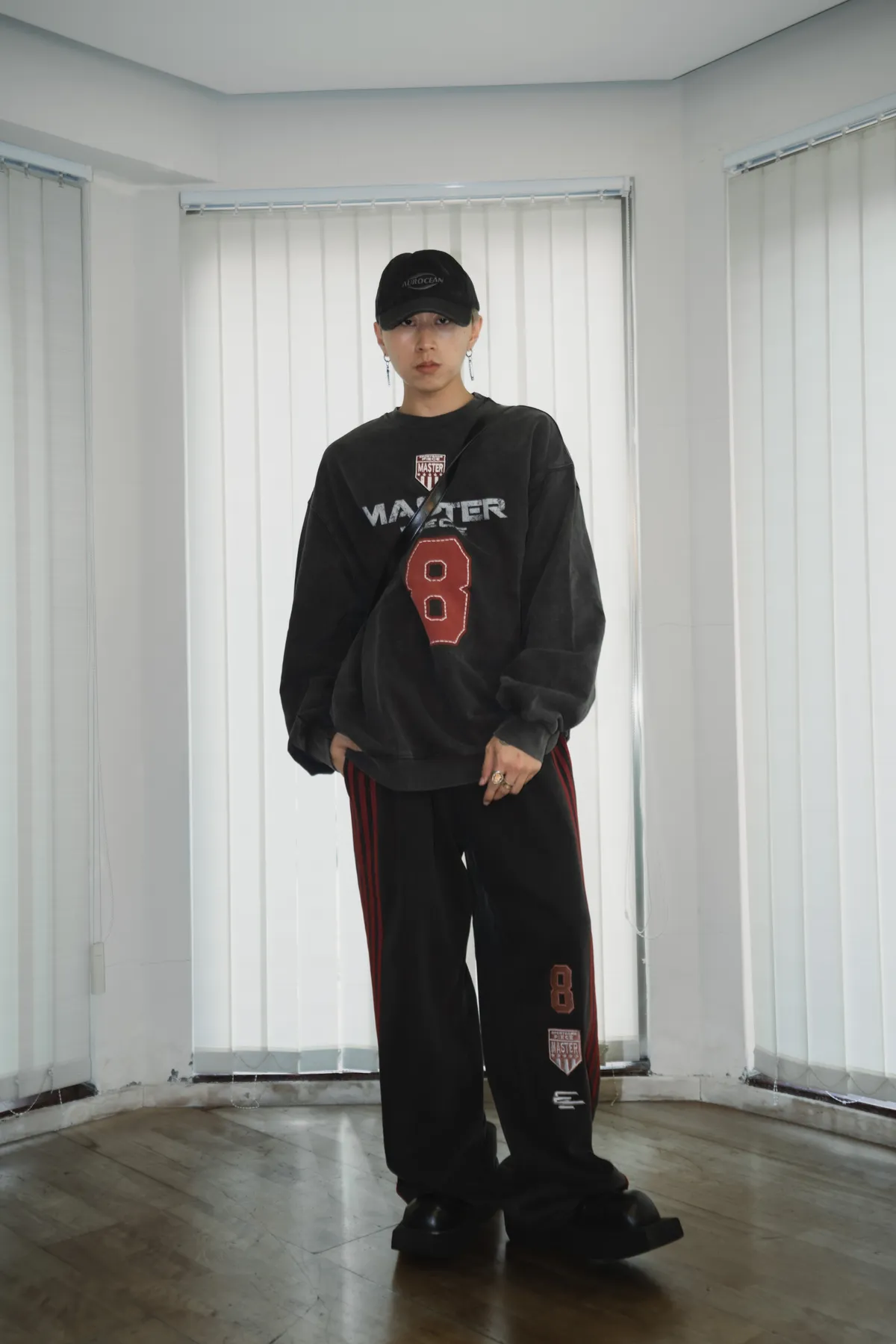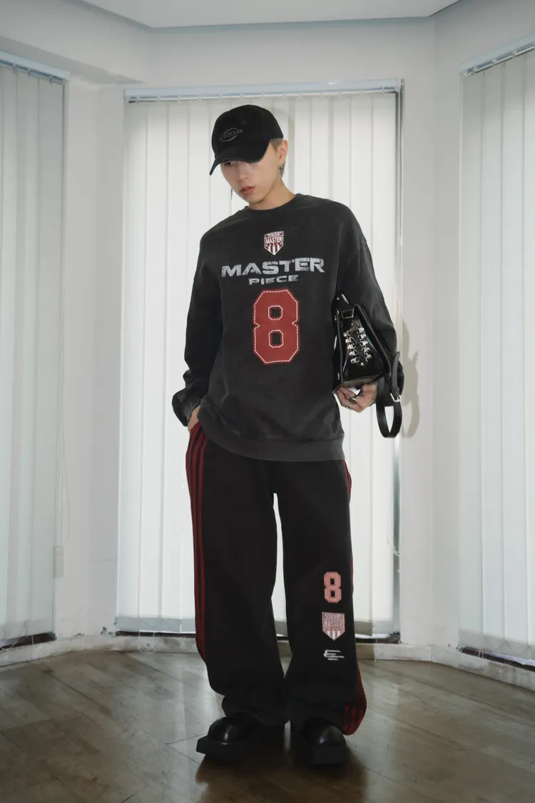 復古運動 水洗 刺繡布貼 大學踢 長褲 棉褲 套裝(水洗黑)