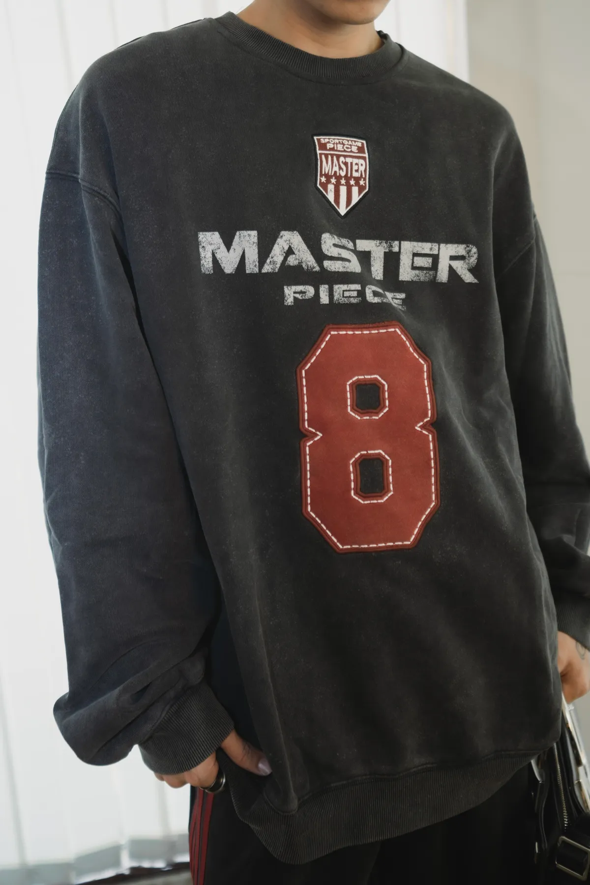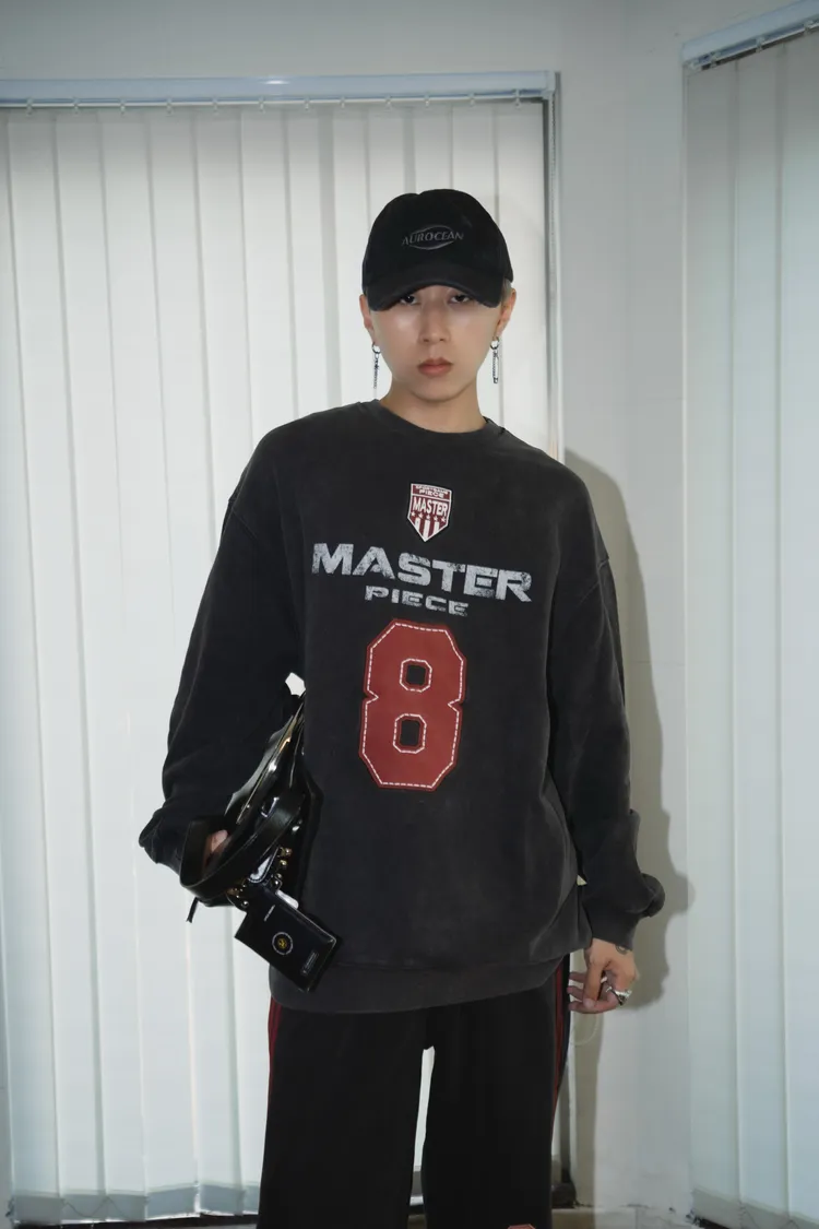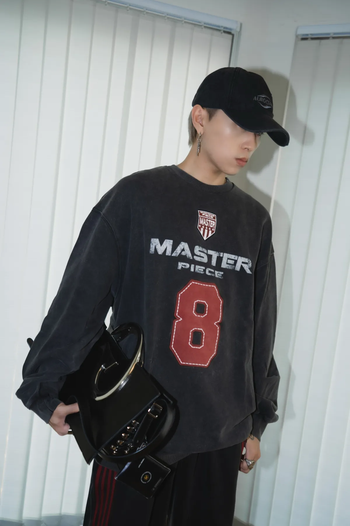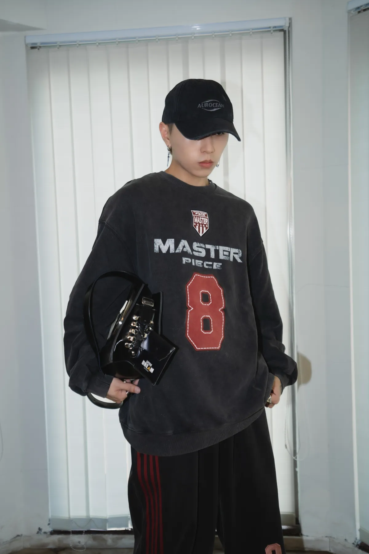 復古運動 水洗 刺繡布貼 大學踢 長褲 棉褲 套裝(水洗黑)