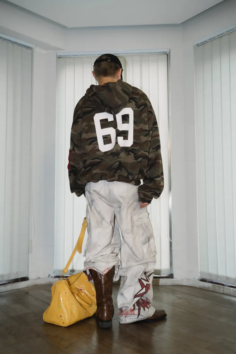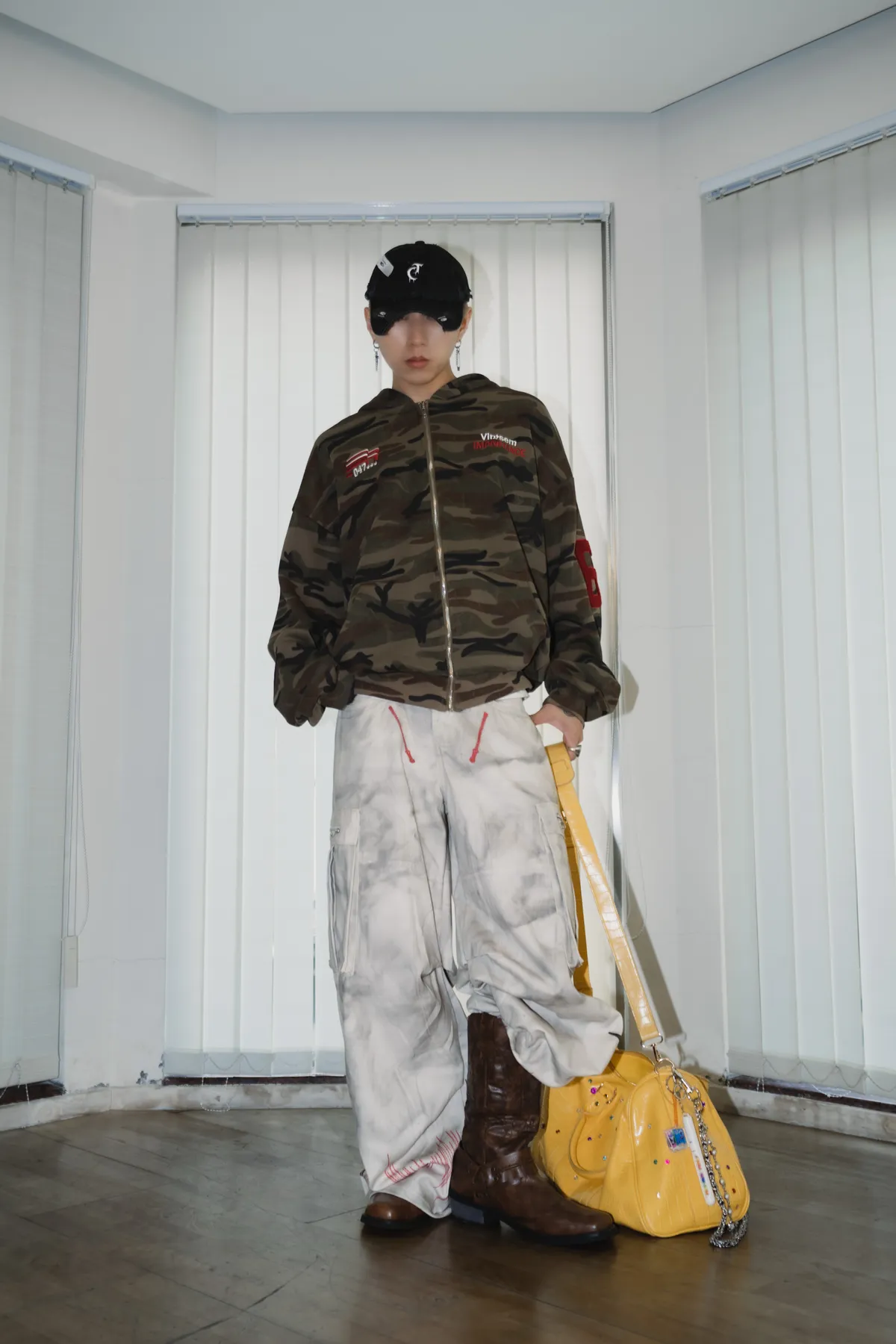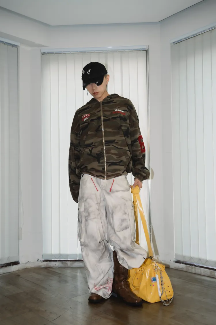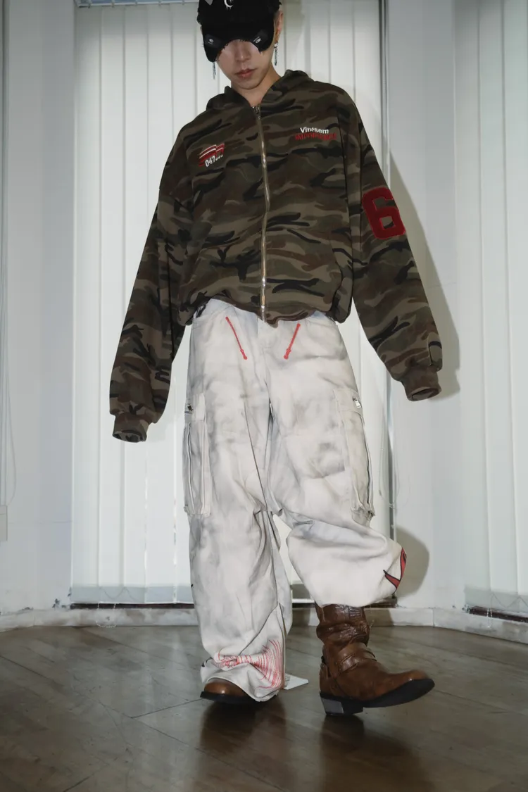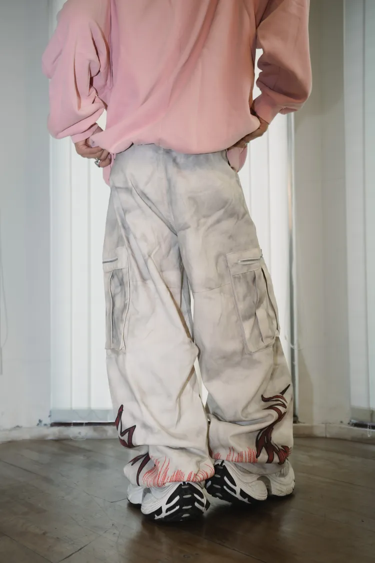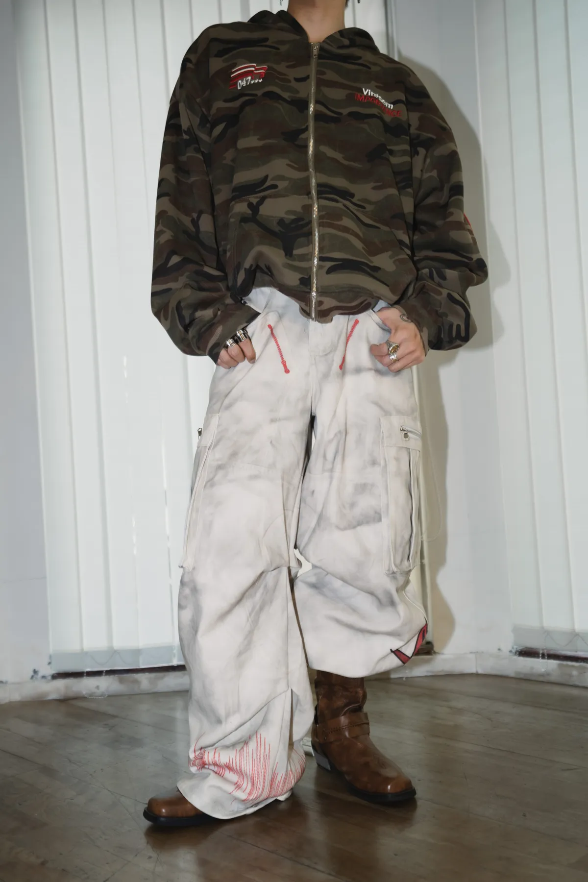 髒染塗鴉 大口袋 牛仔褲(髒染白)