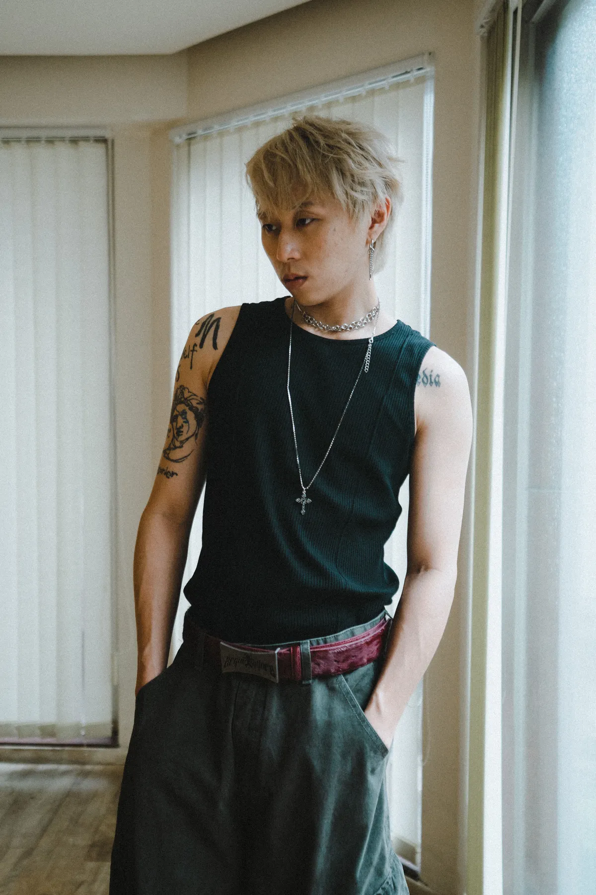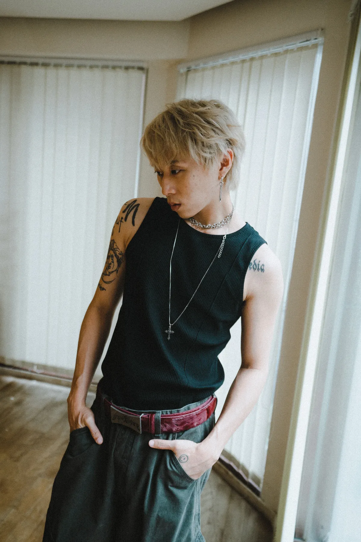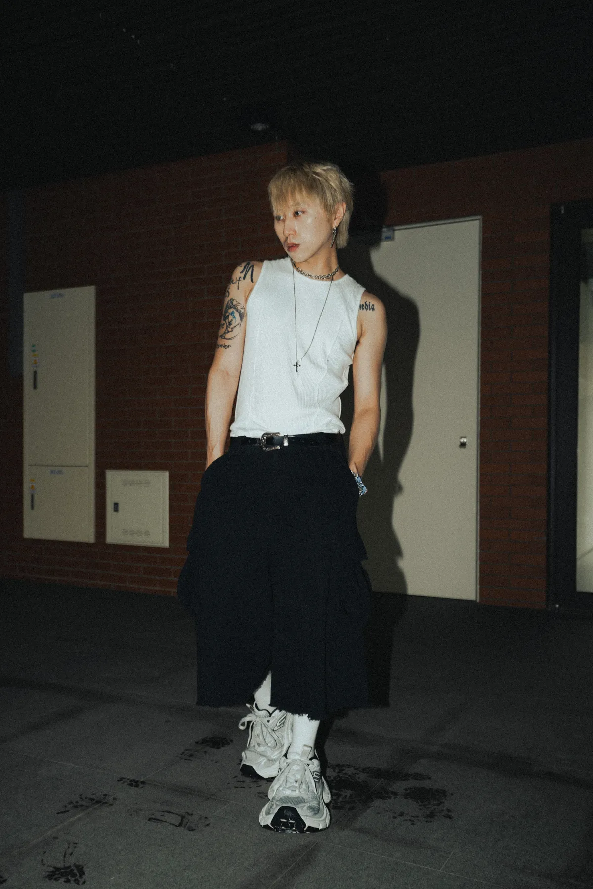 ARGUE 舞台感 立體剪裁 飛機扣 背心 長褲 套裝(黑/白)