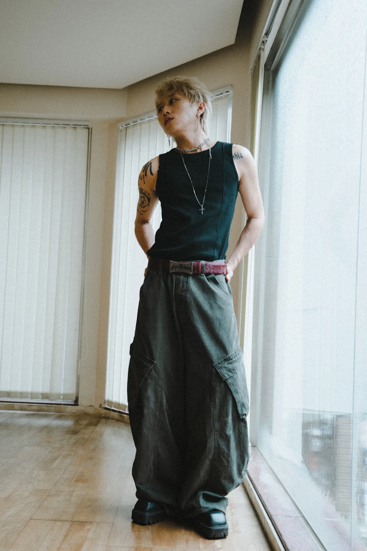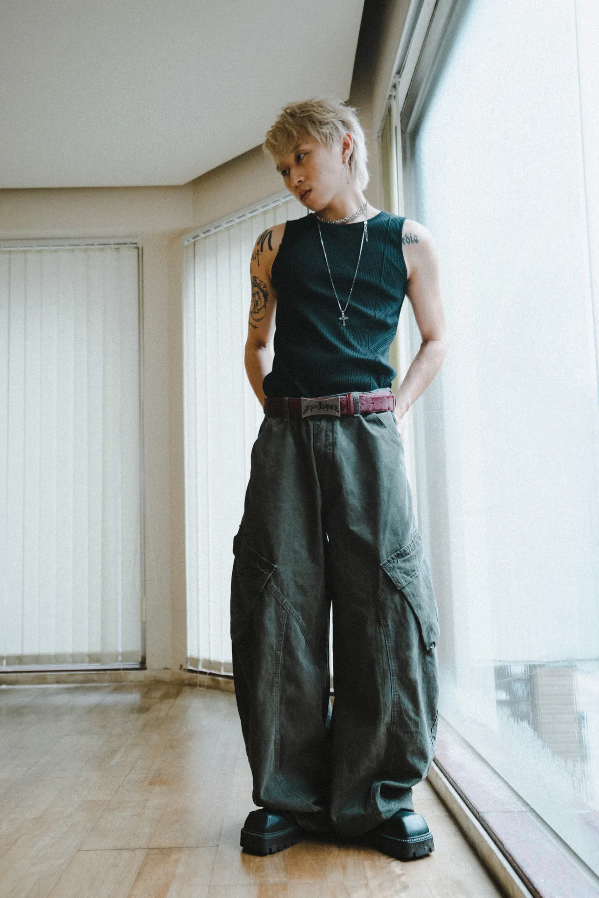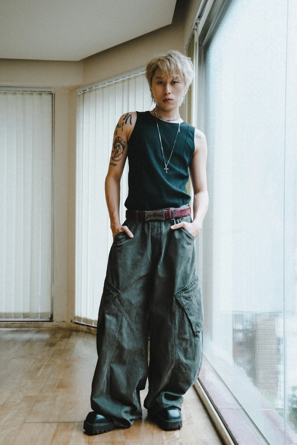 ARGUE 本期必收套裝 不規則抽繩 多口袋 背心 工裝褲 套裝(黑/卡其)