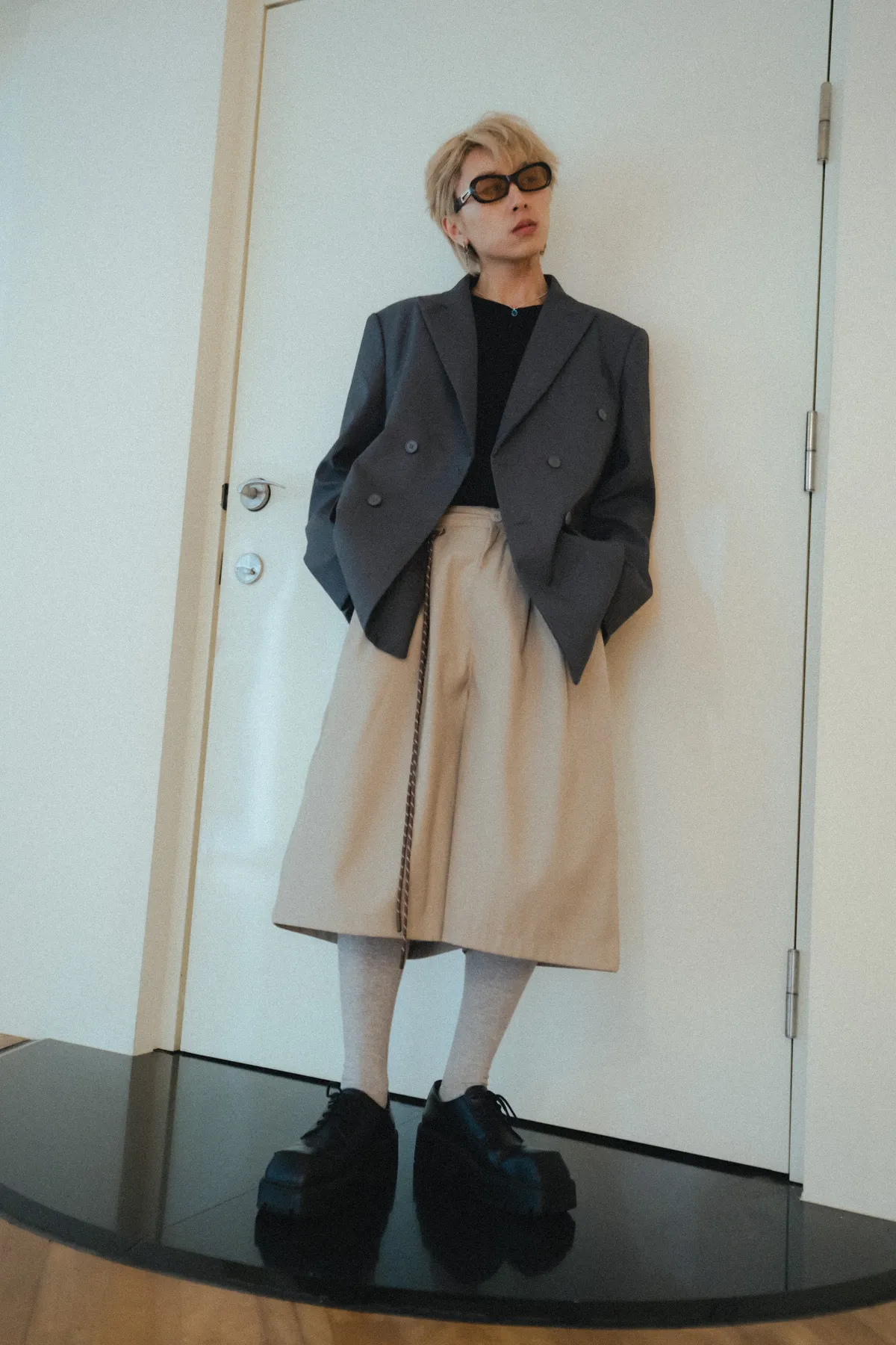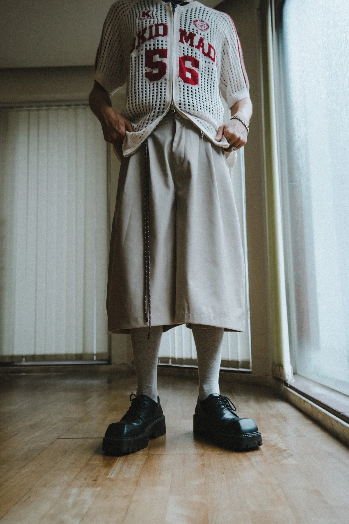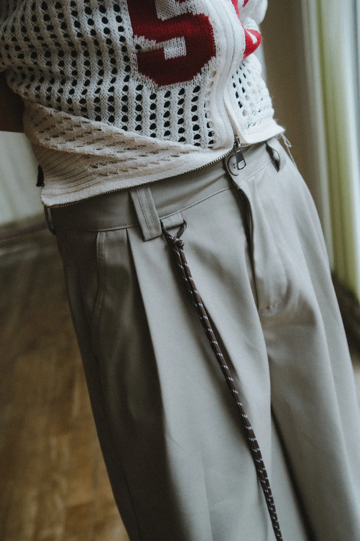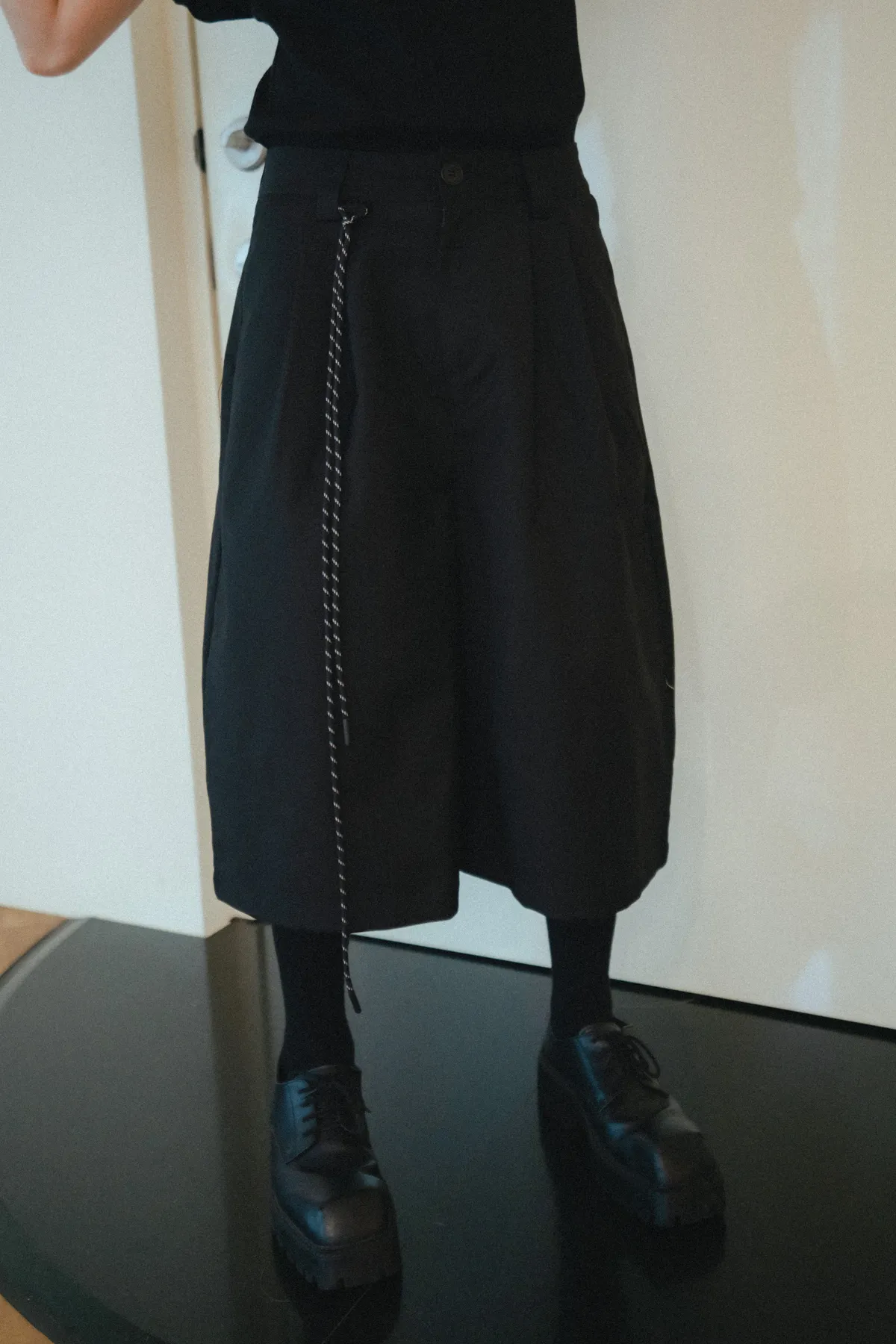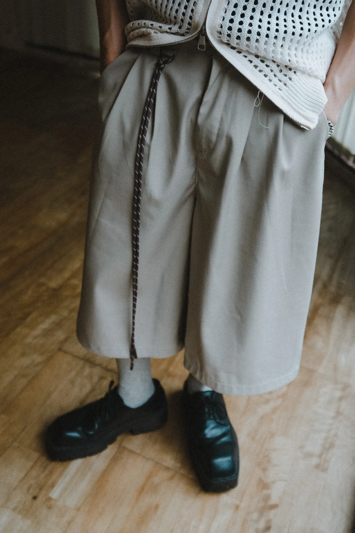 雙摺 可拆編織繩 西裝七分褲(黑/杏)