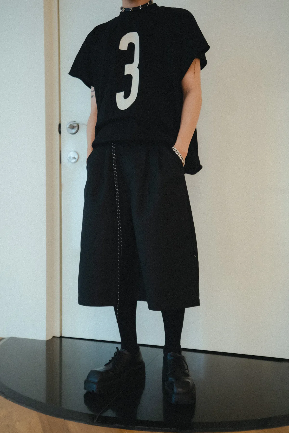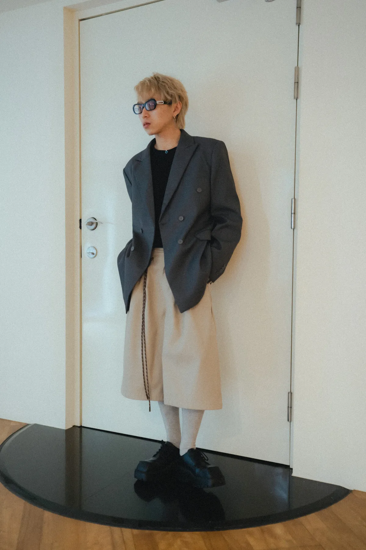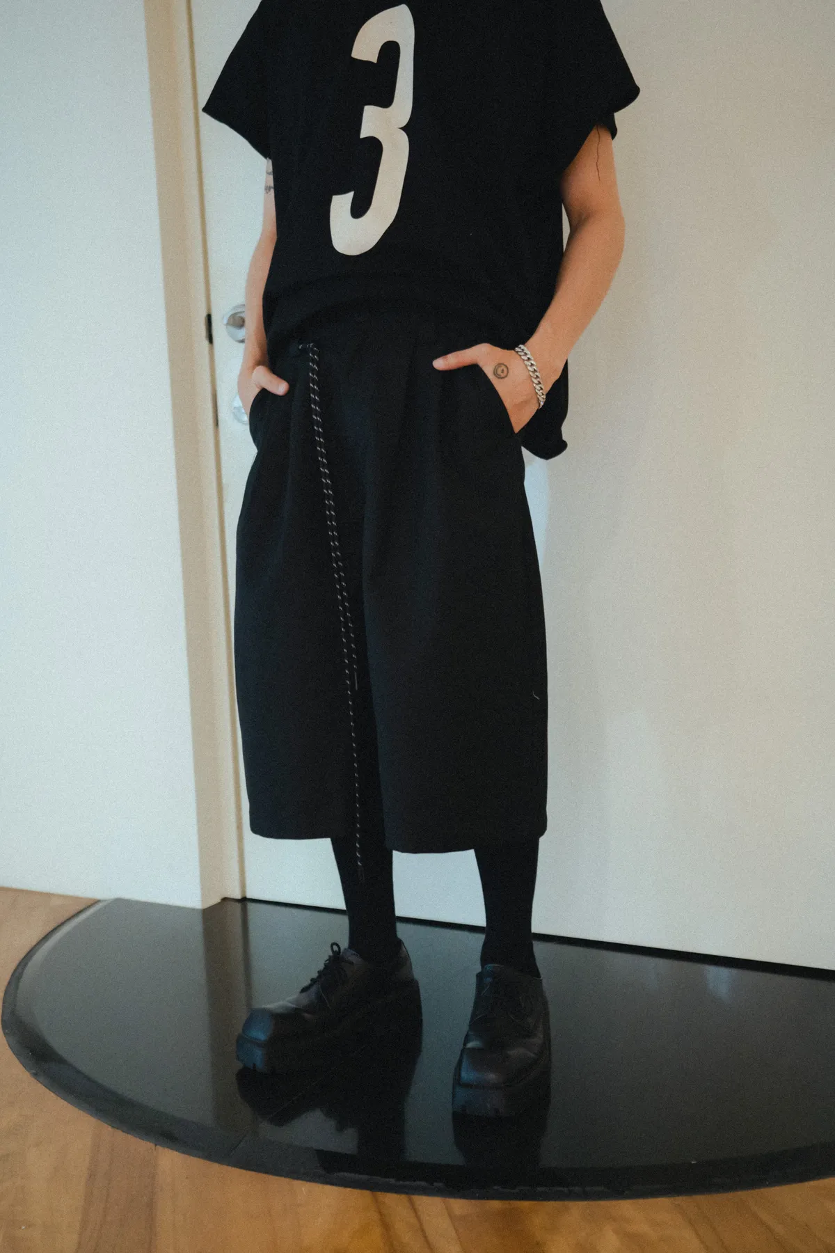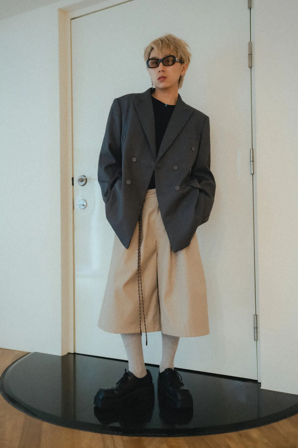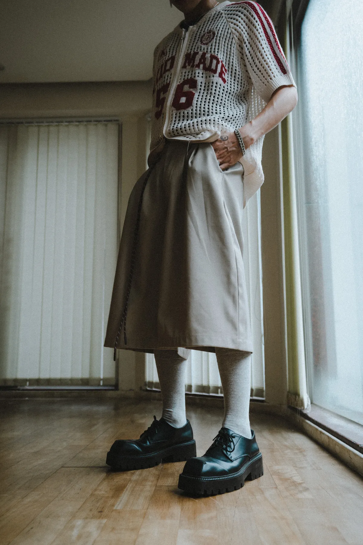 雙摺 可拆編織繩 西裝七分褲(黑/杏)