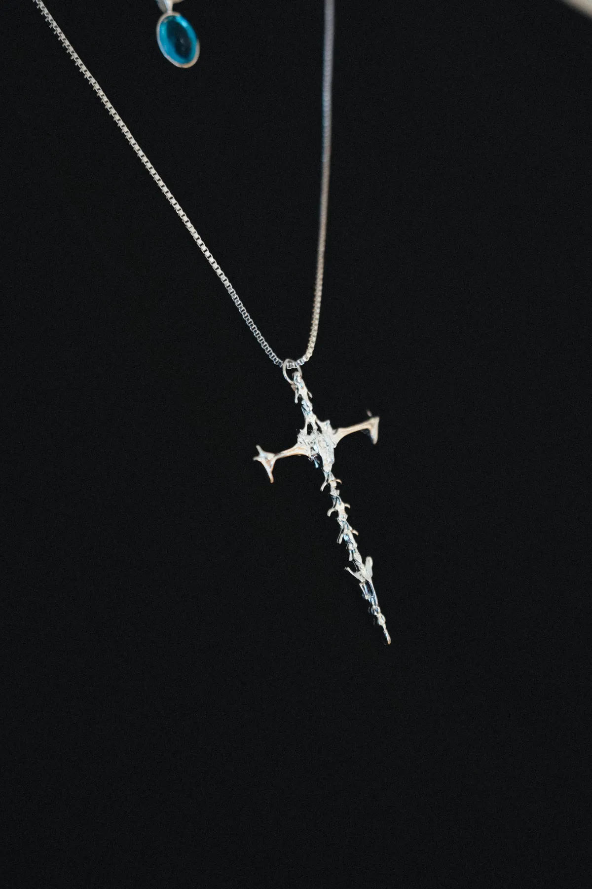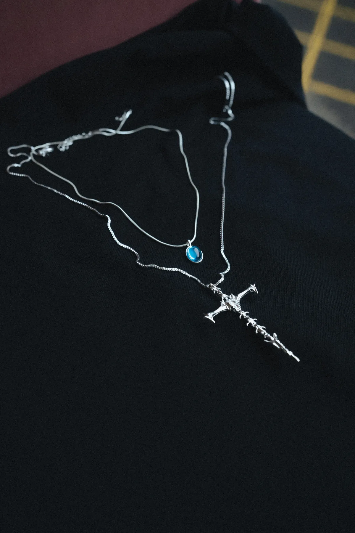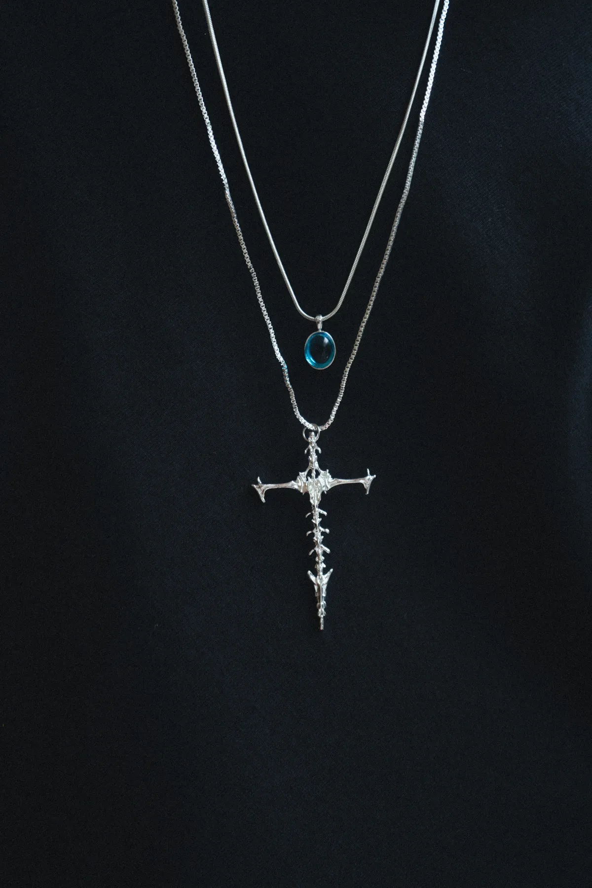 藍寶石 骸骨十字架 項鍊 兩件組(銀色)