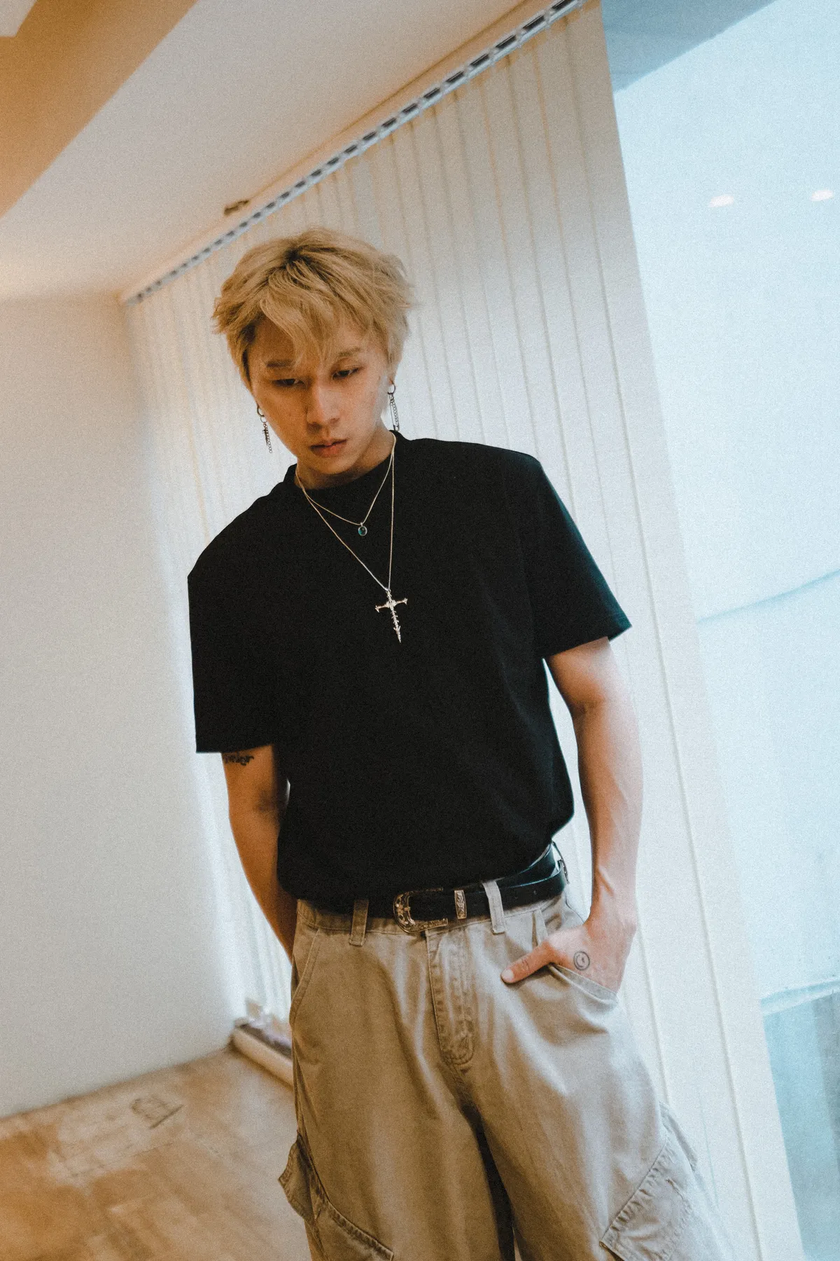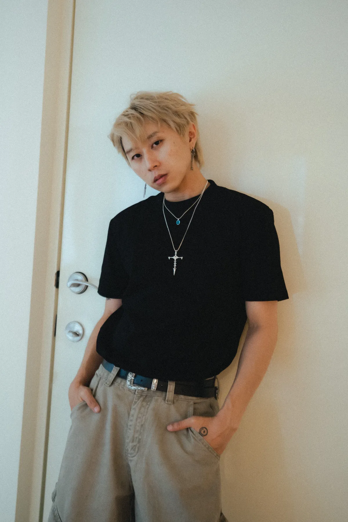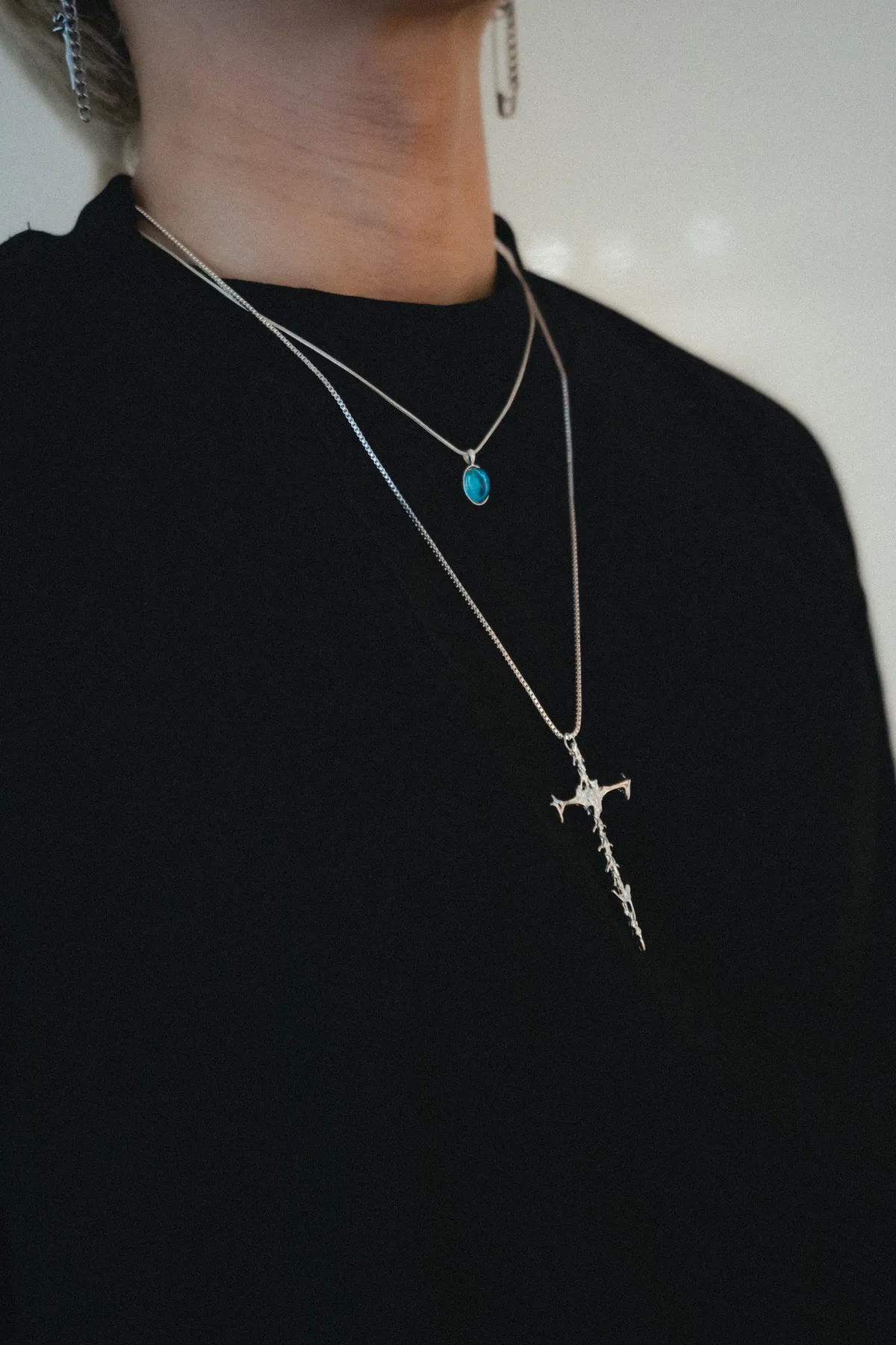 藍寶石 骸骨十字架 項鍊 兩件組(銀色)