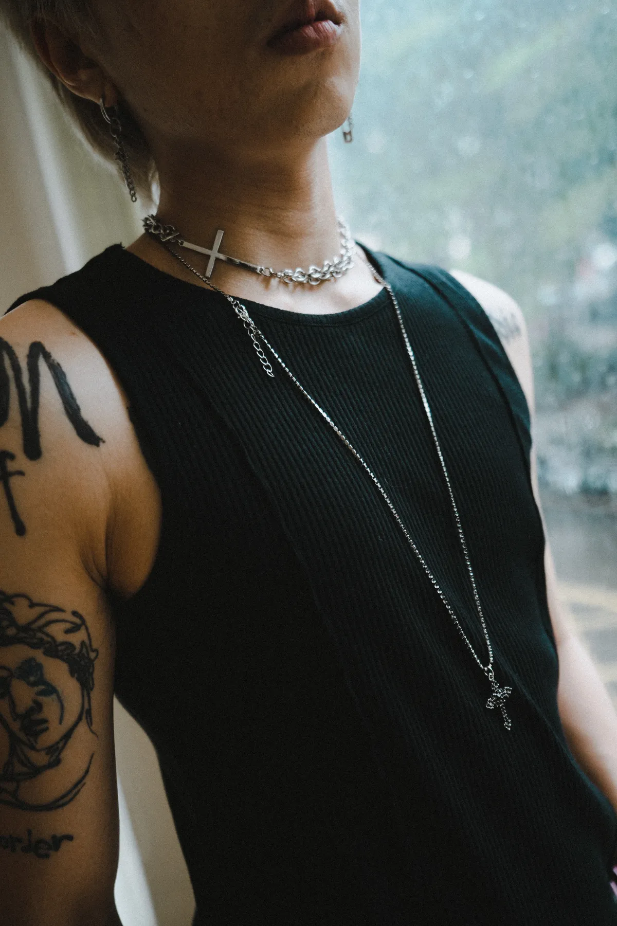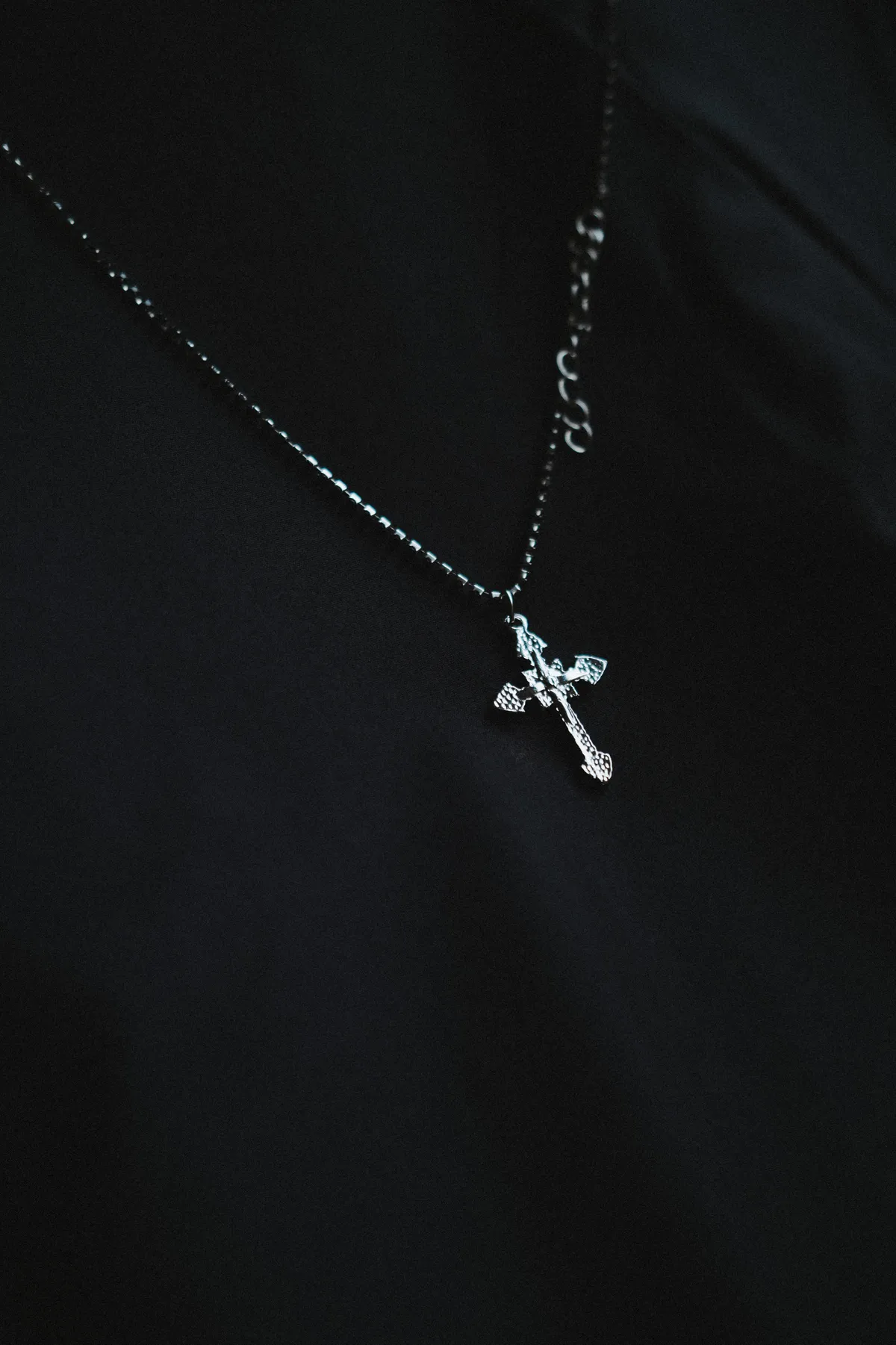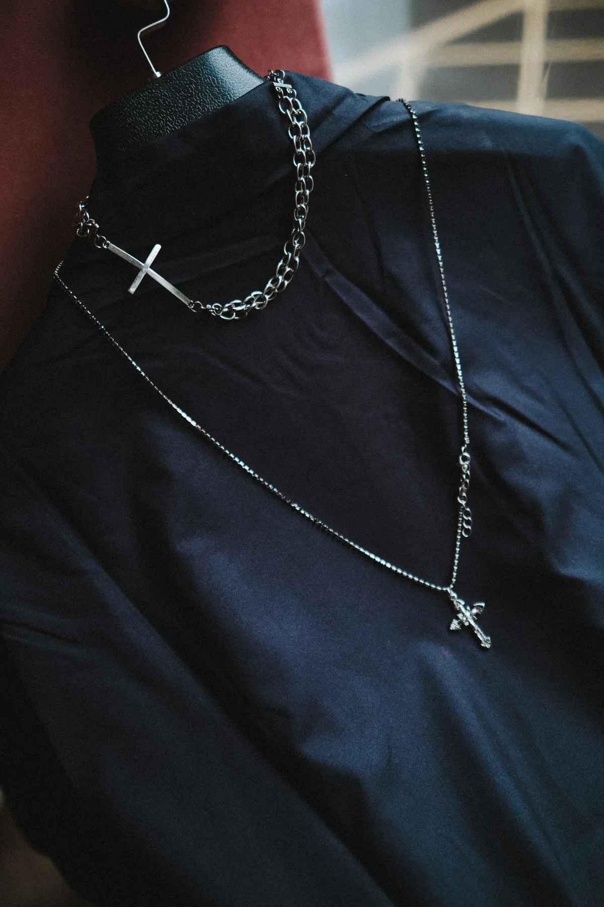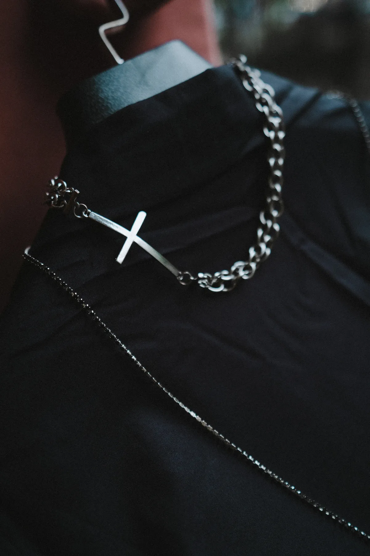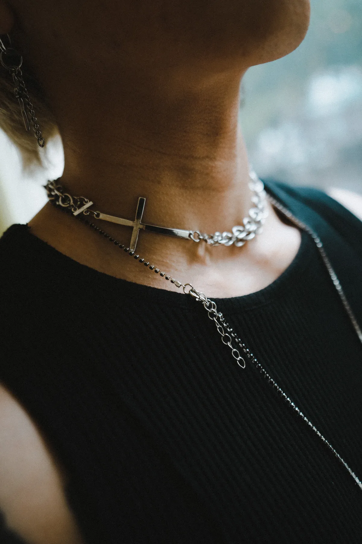 雙層 鑲鑽十字架 項鍊 鎖骨鏈 兩件組(銀色)