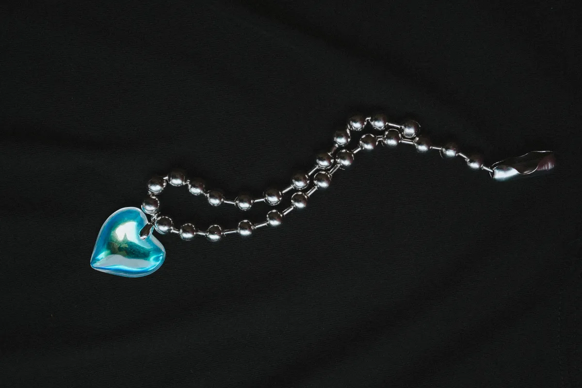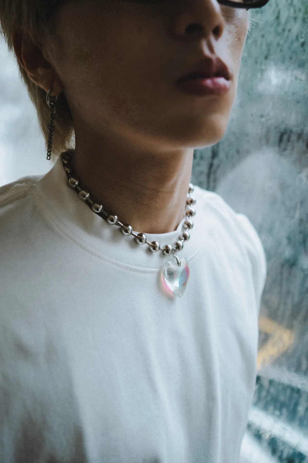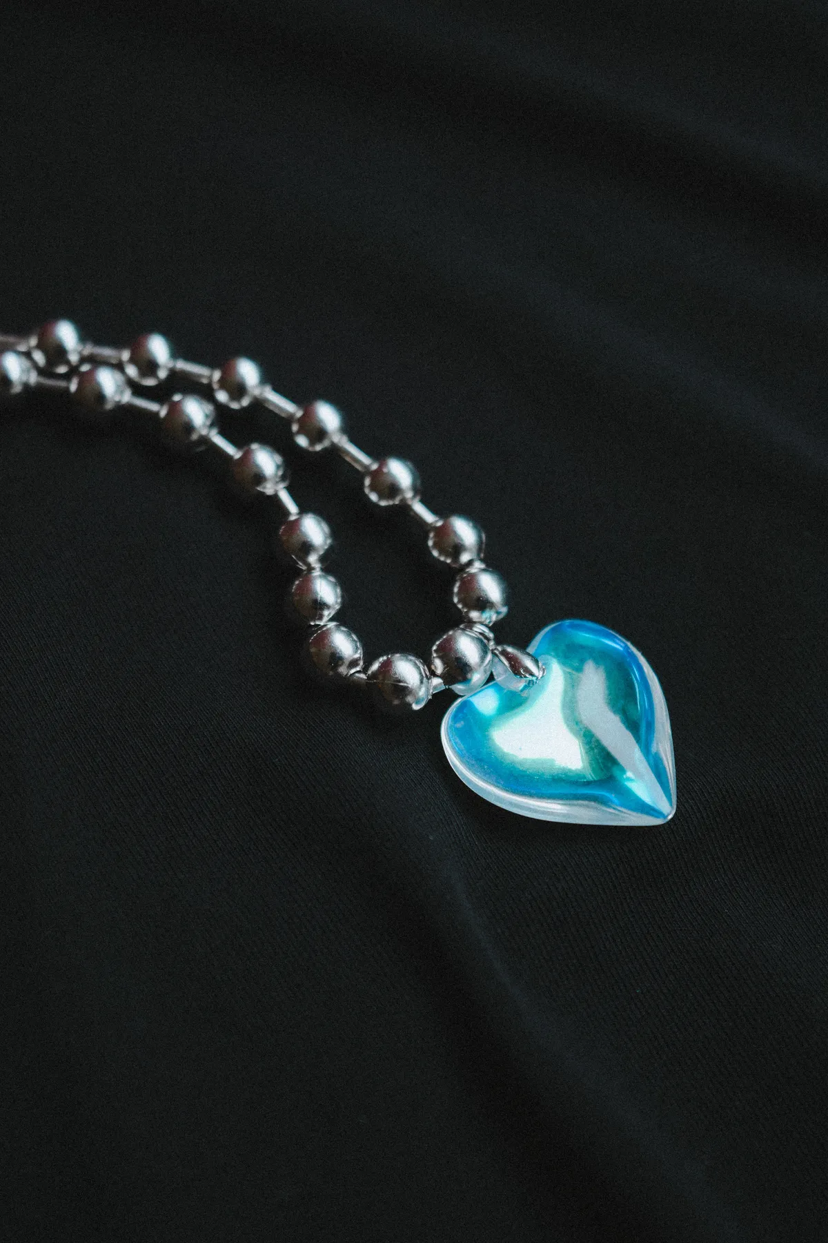 玻璃心 圓珠 項鍊 頸鏈(銀色)