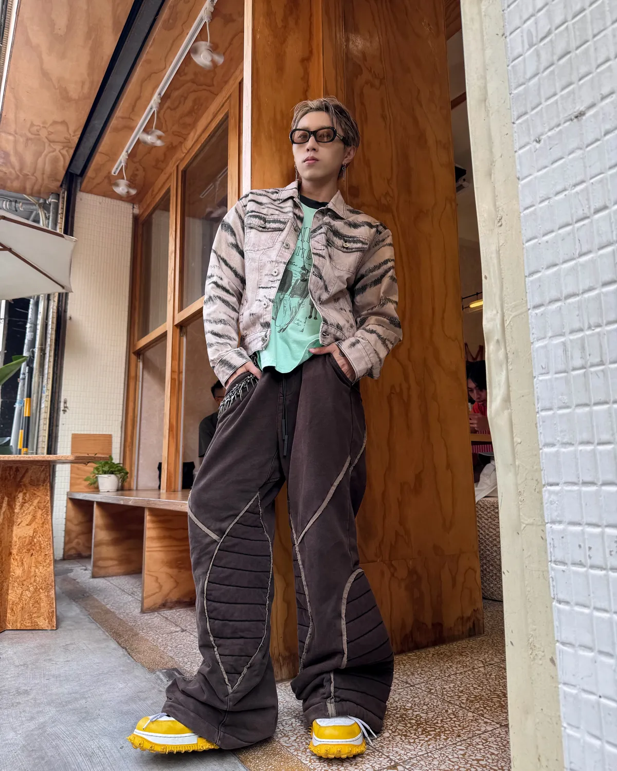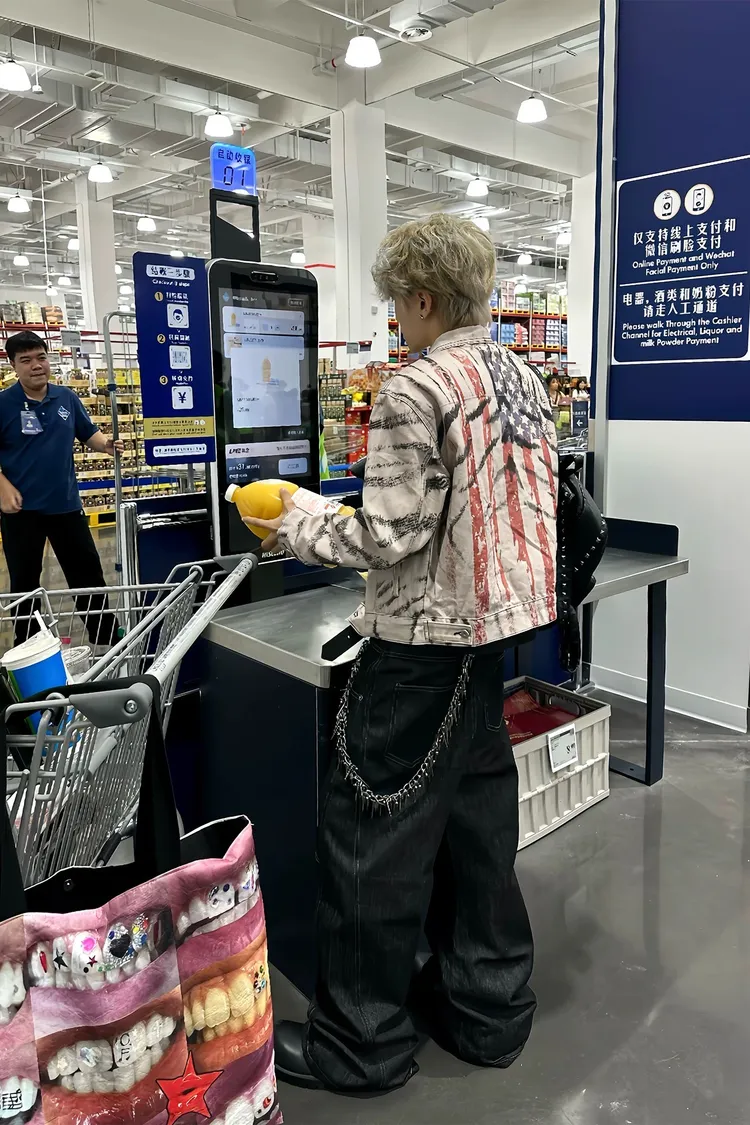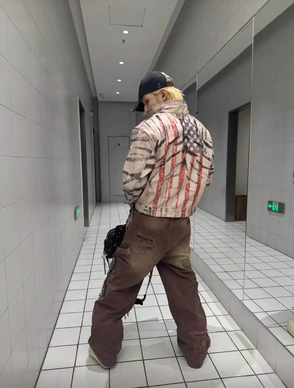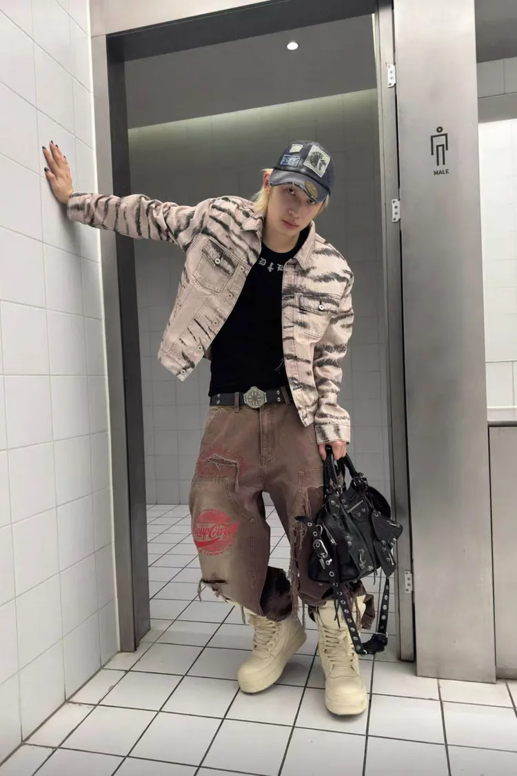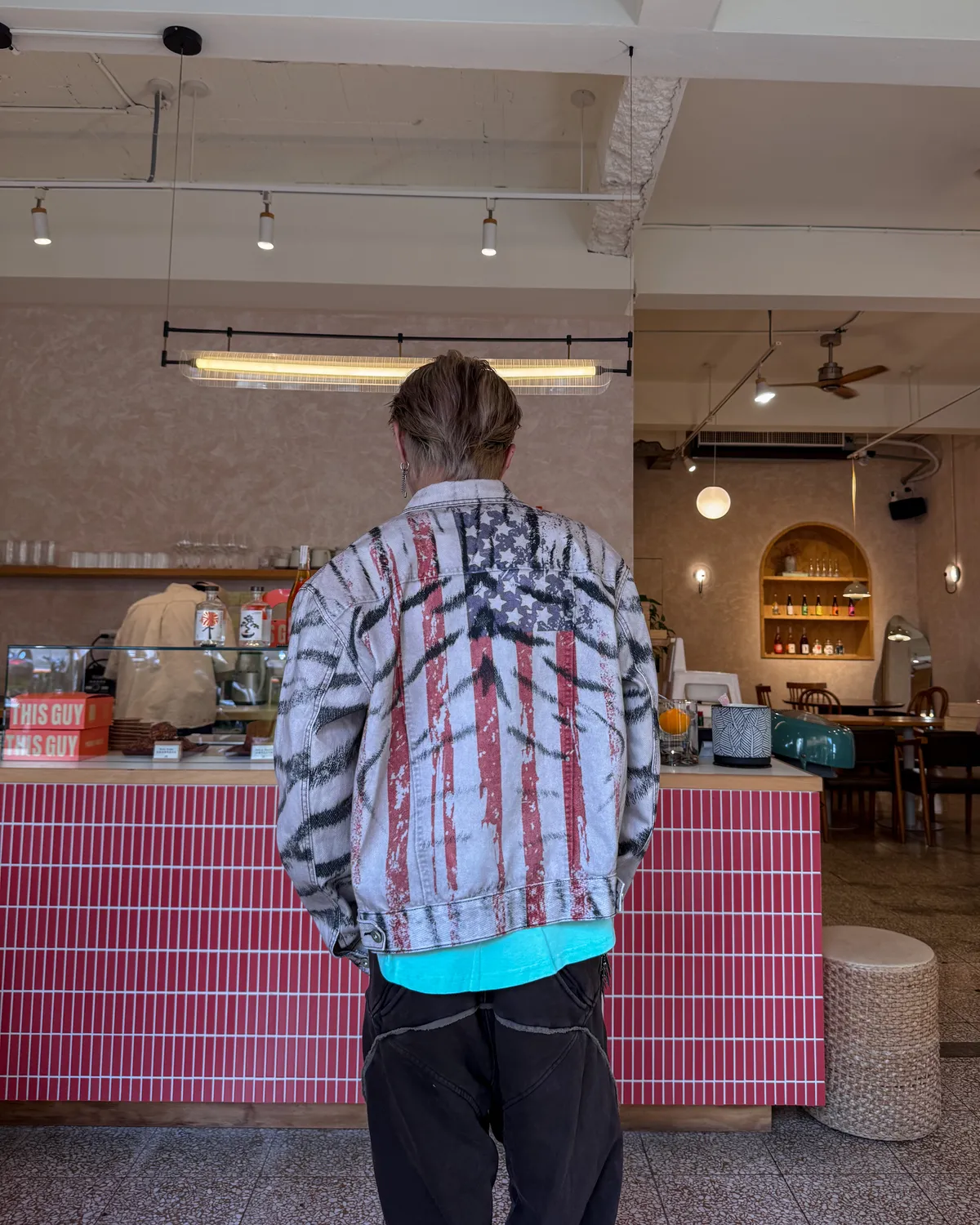 虎紋國旗 寬短水洗 牛仔外套(卡其)