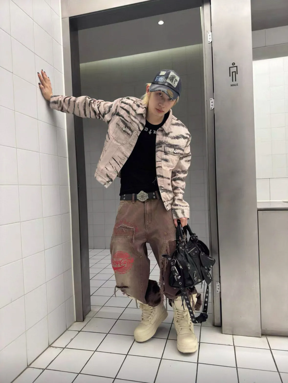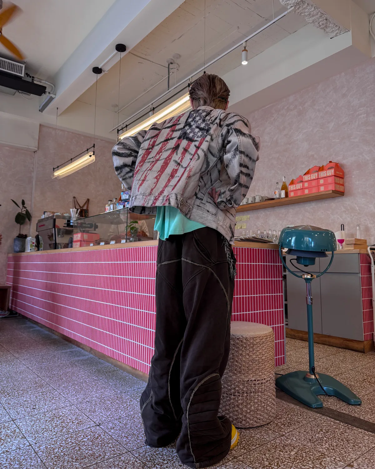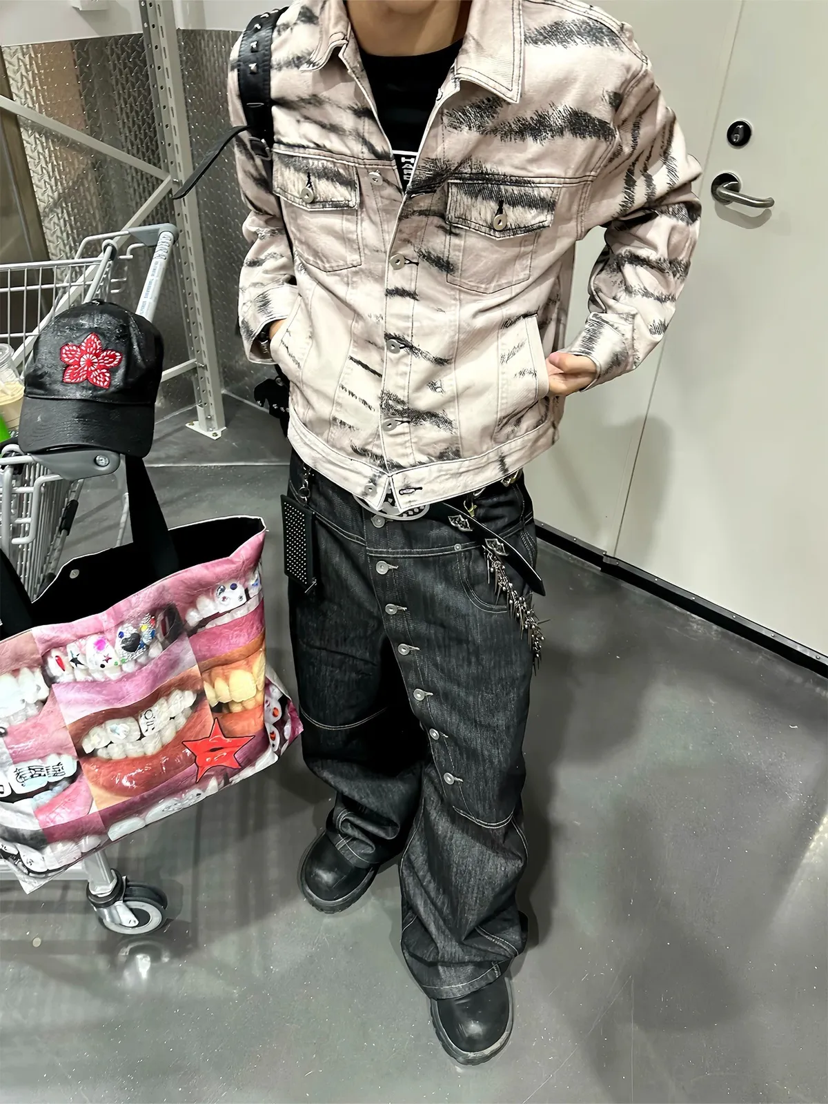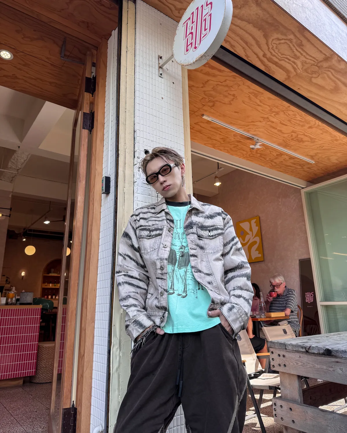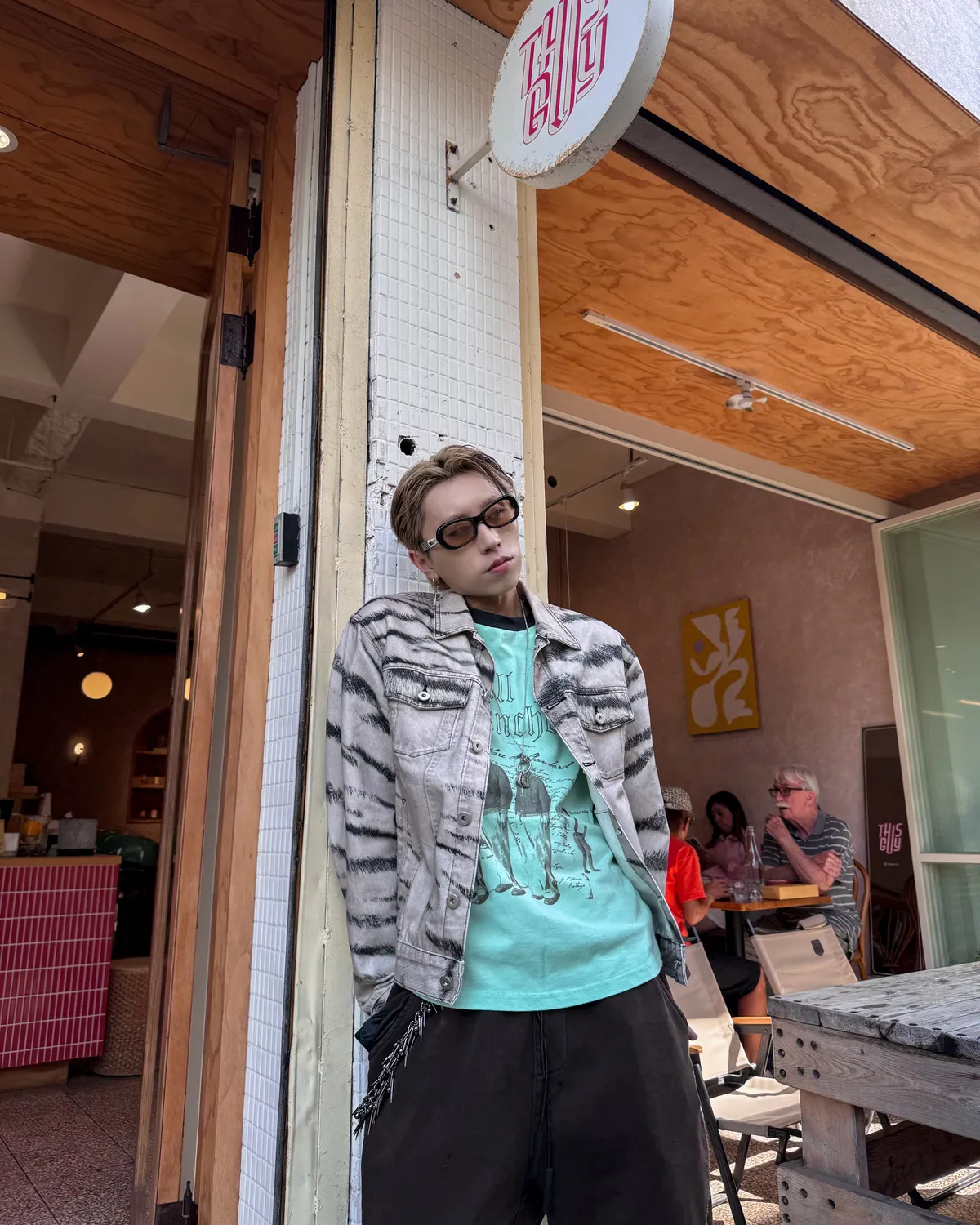 虎紋國旗 寬短水洗 牛仔外套(卡其)