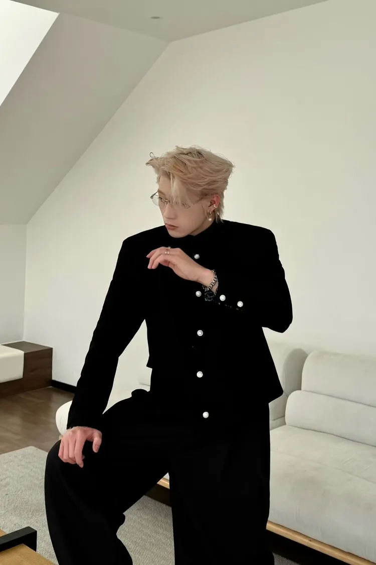 PROCESS 新中式 宮廷立領 西裝外套 (黑/白)