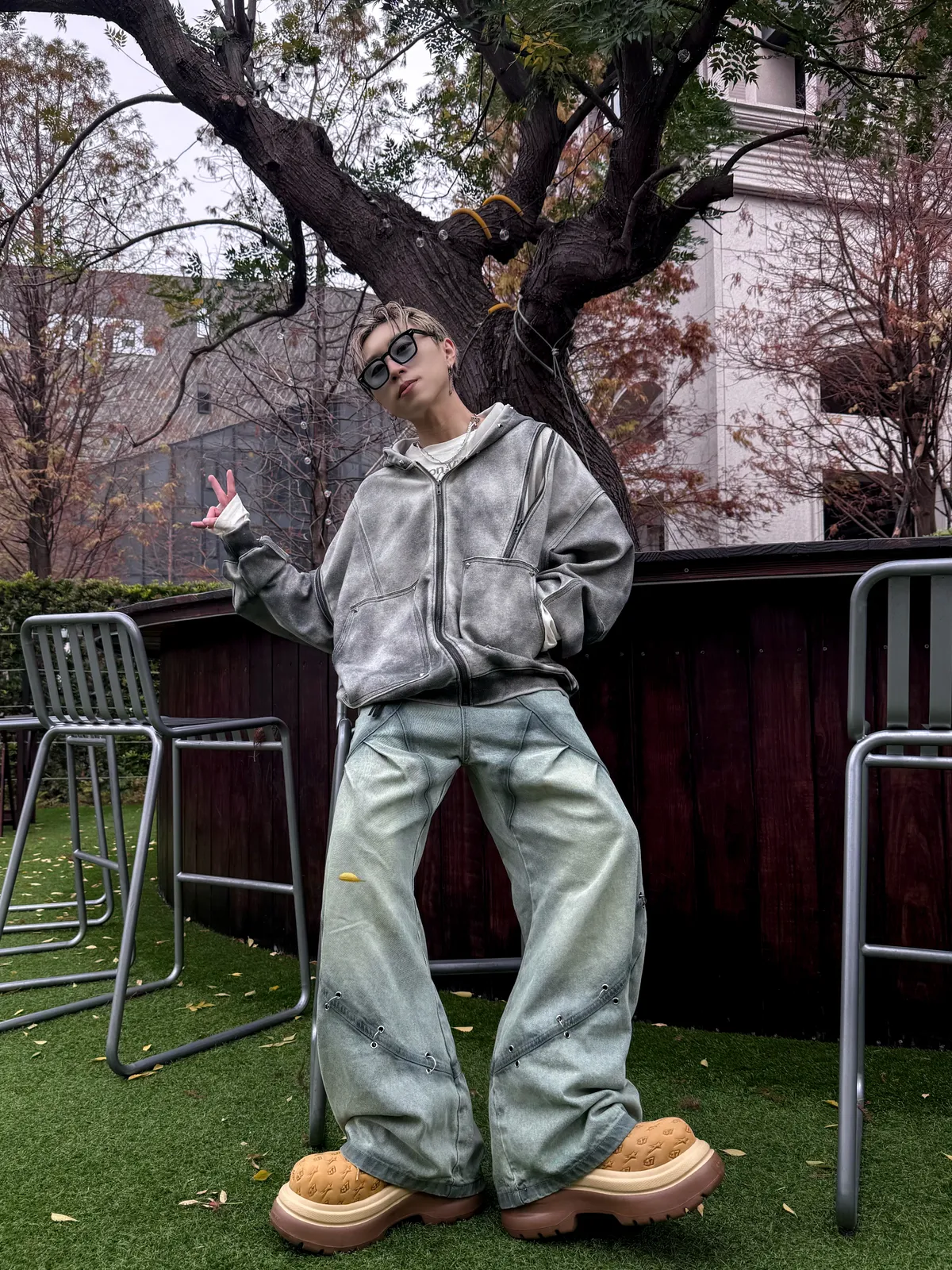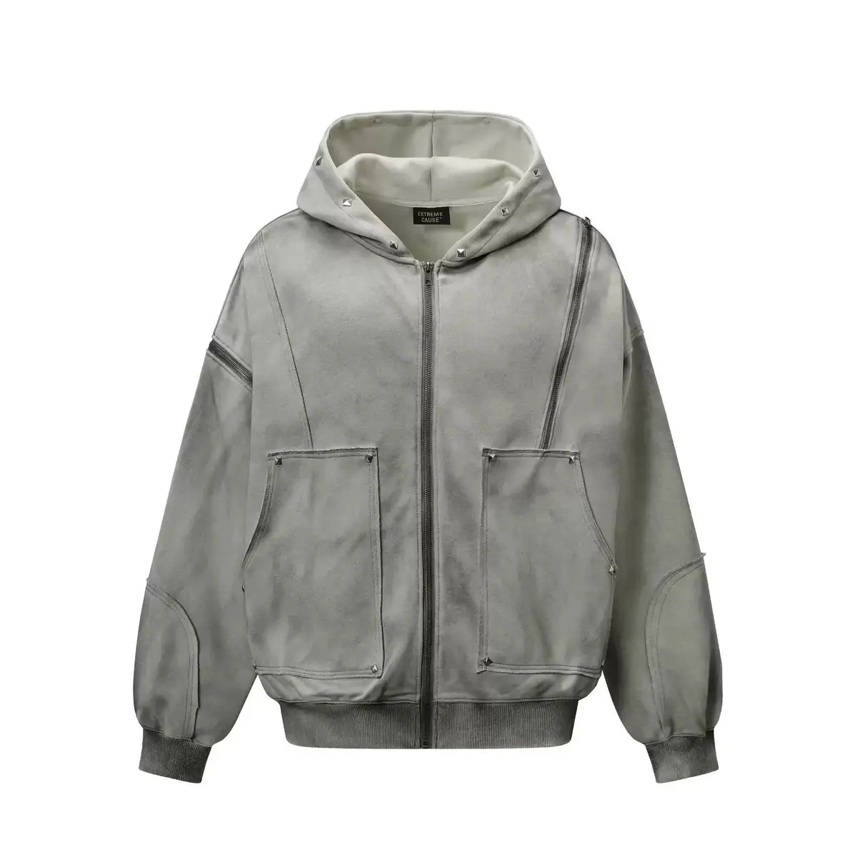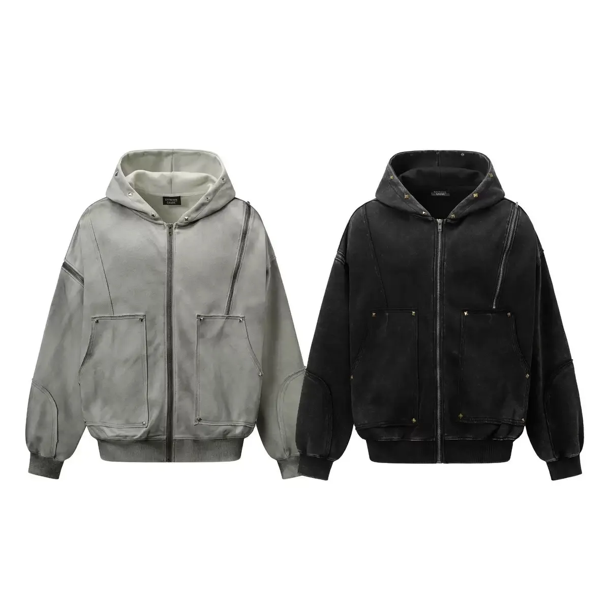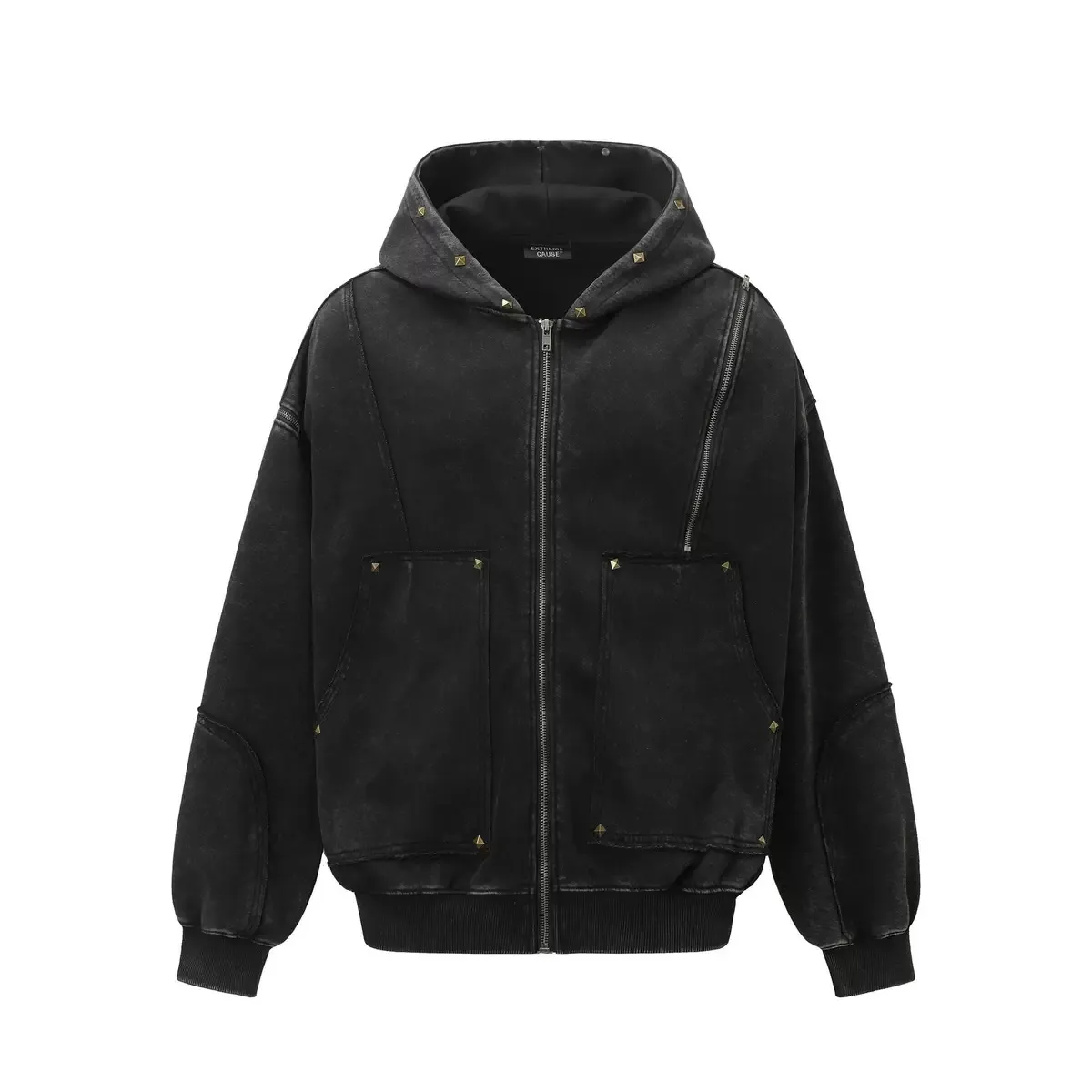 PROCESS 水洗做舊 卯釘 解構拉鍊 春夏 外套(洗舊黑/洗舊白)