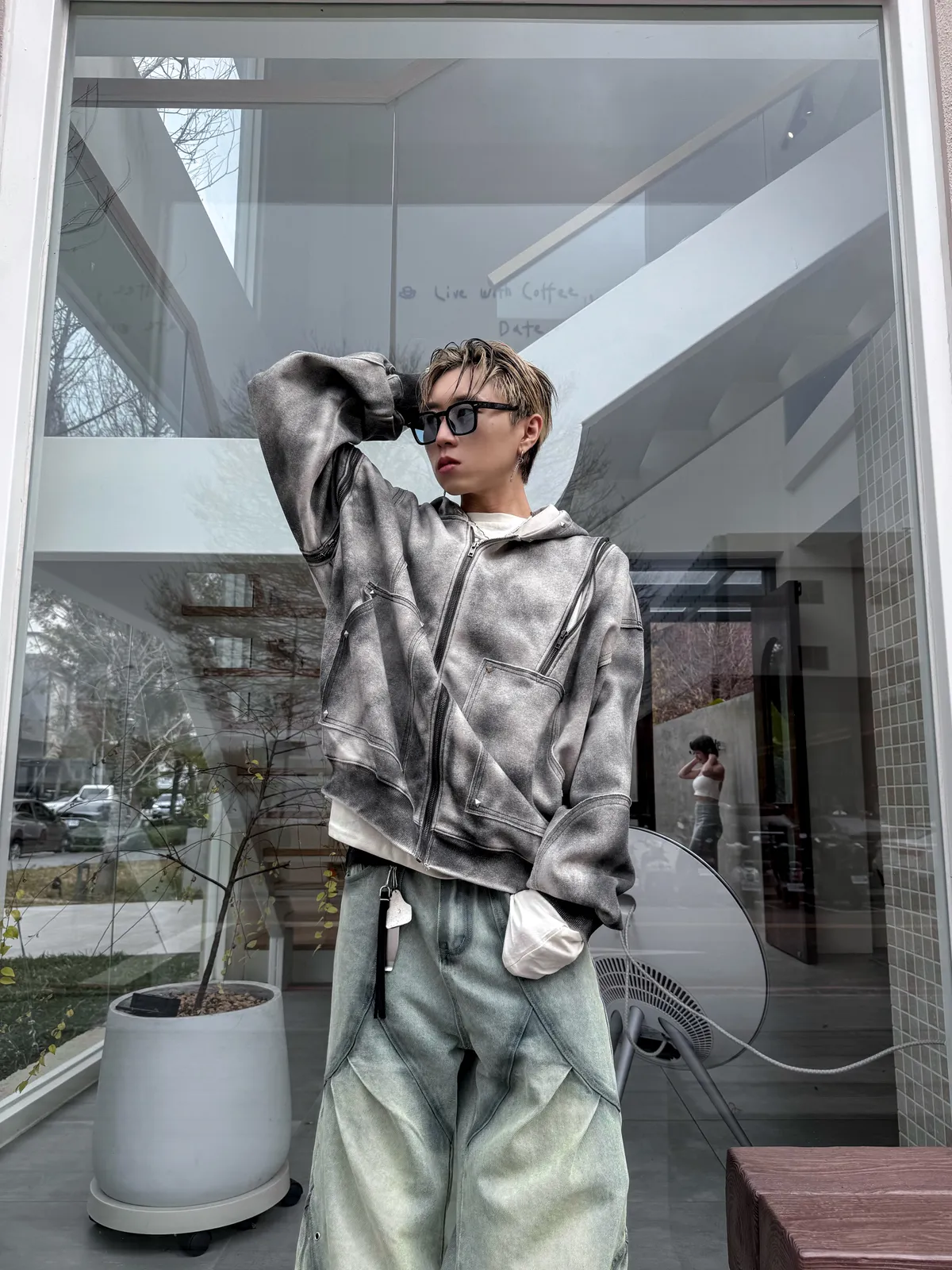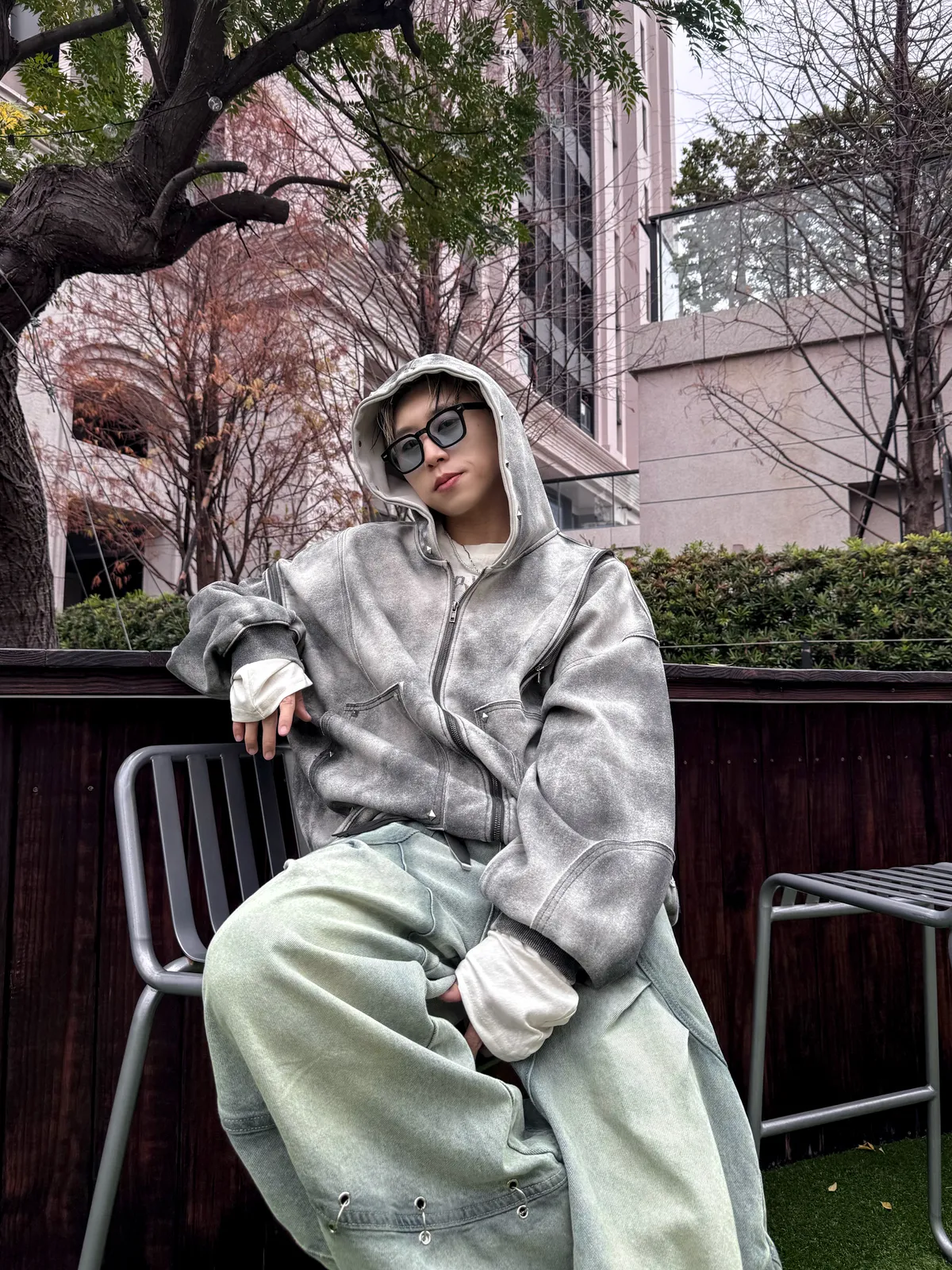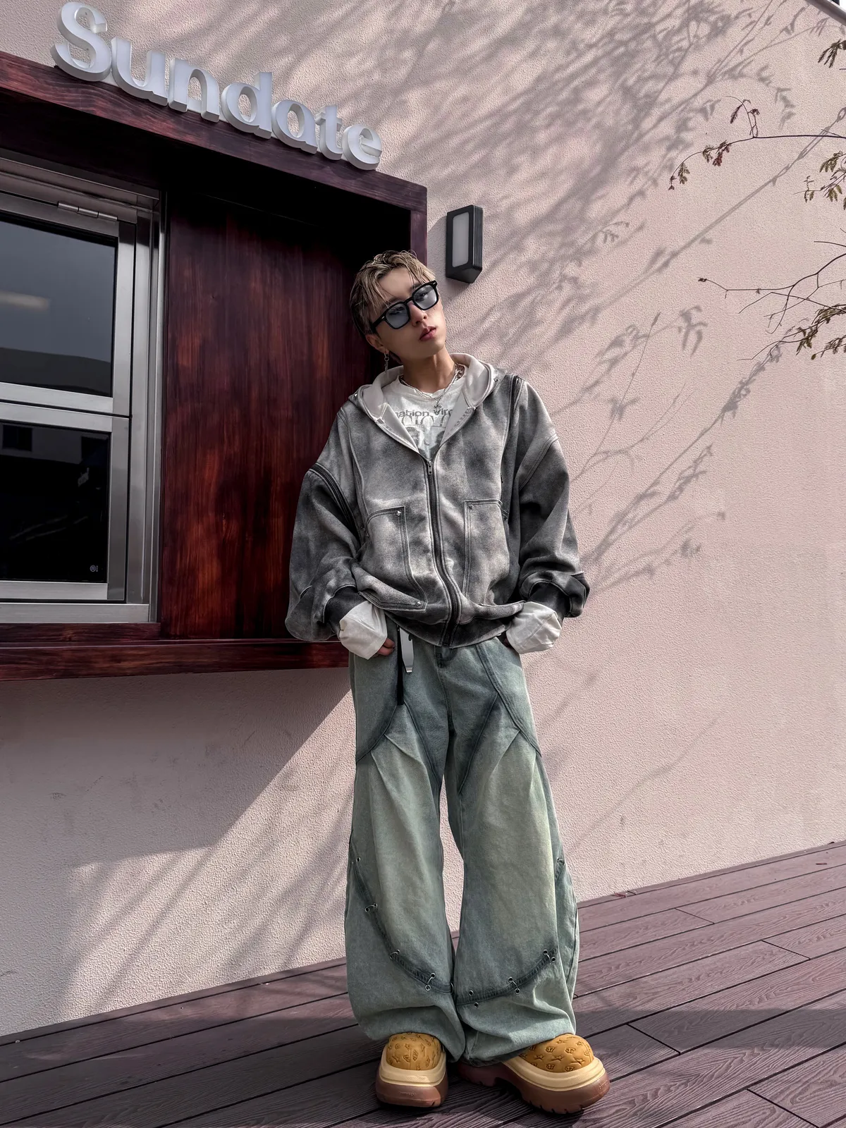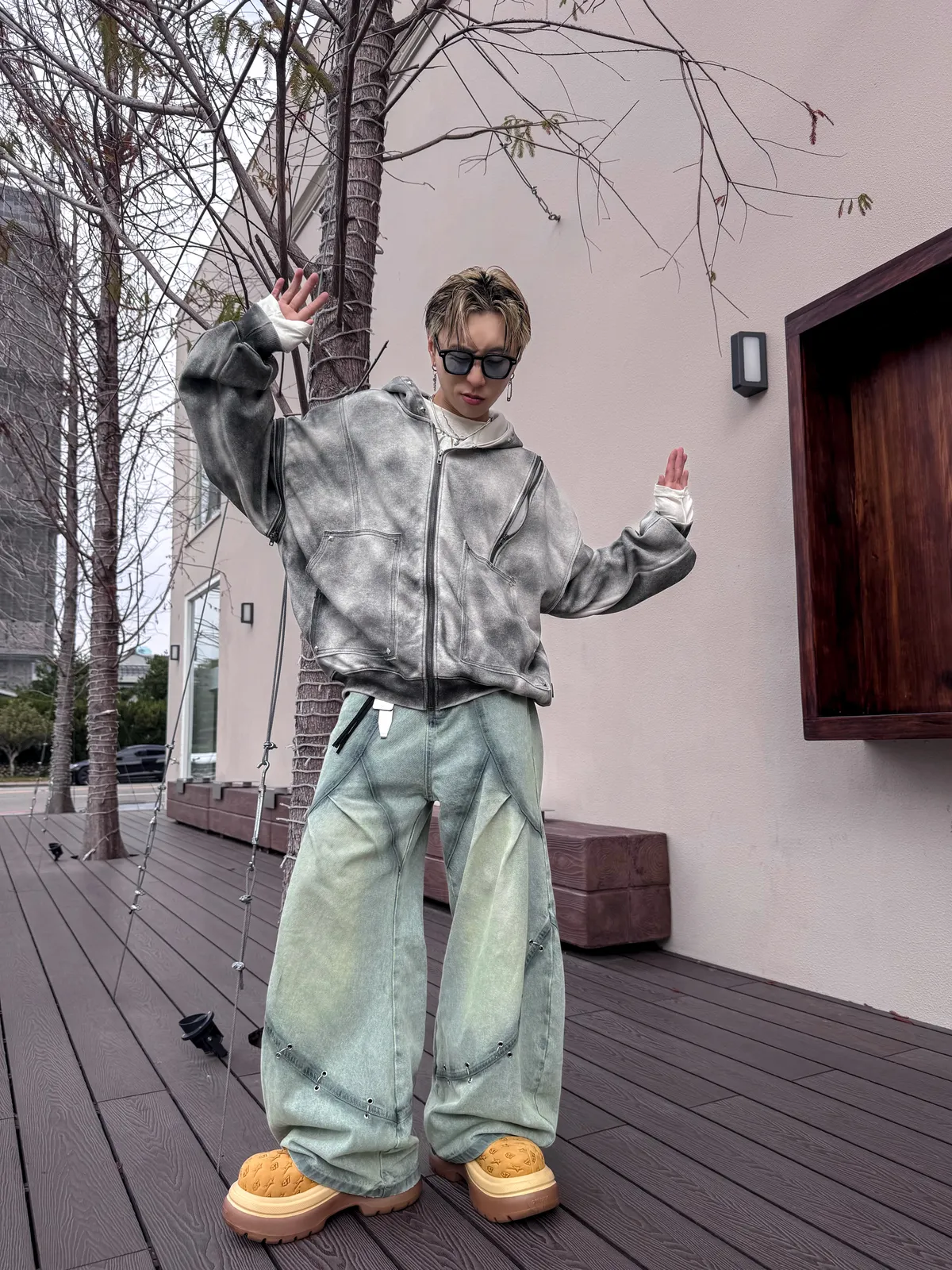 PROCESS 水洗做舊 卯釘 解構拉鍊 春夏 外套(洗舊黑/洗舊白)