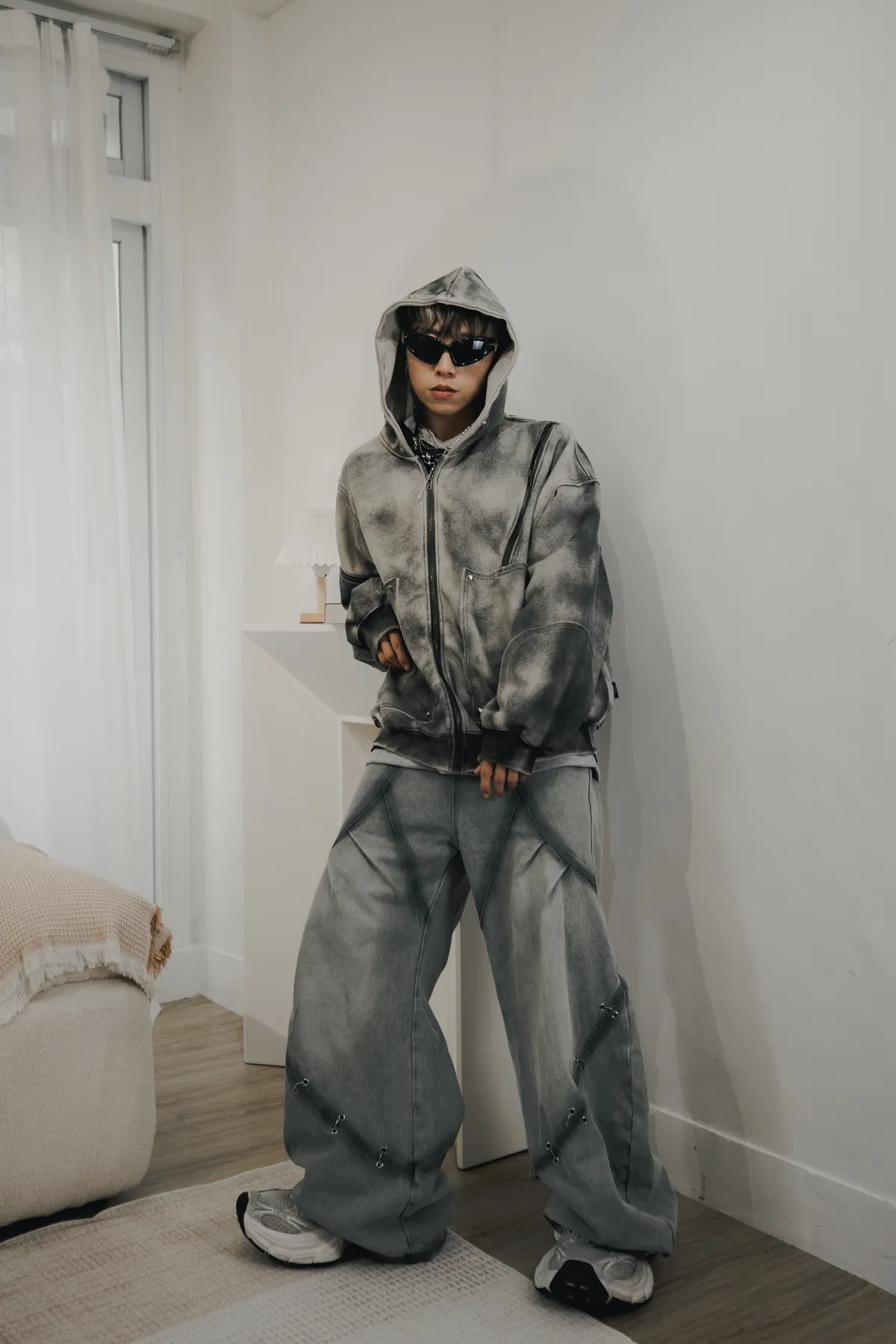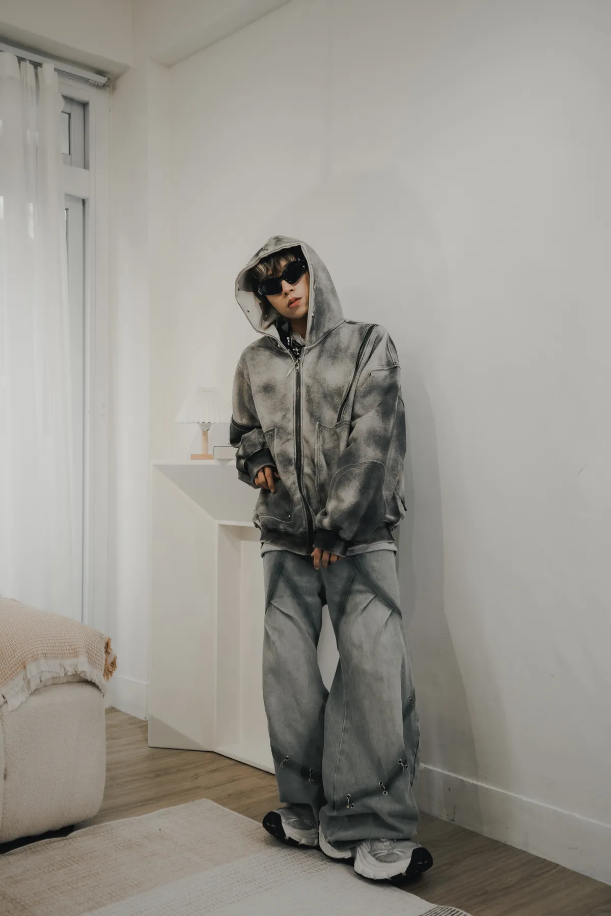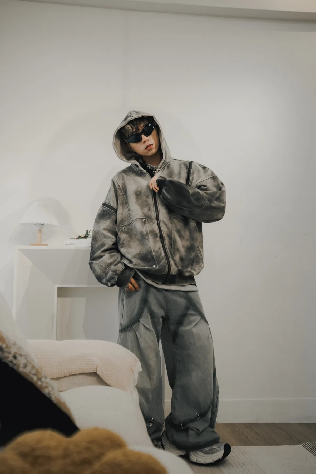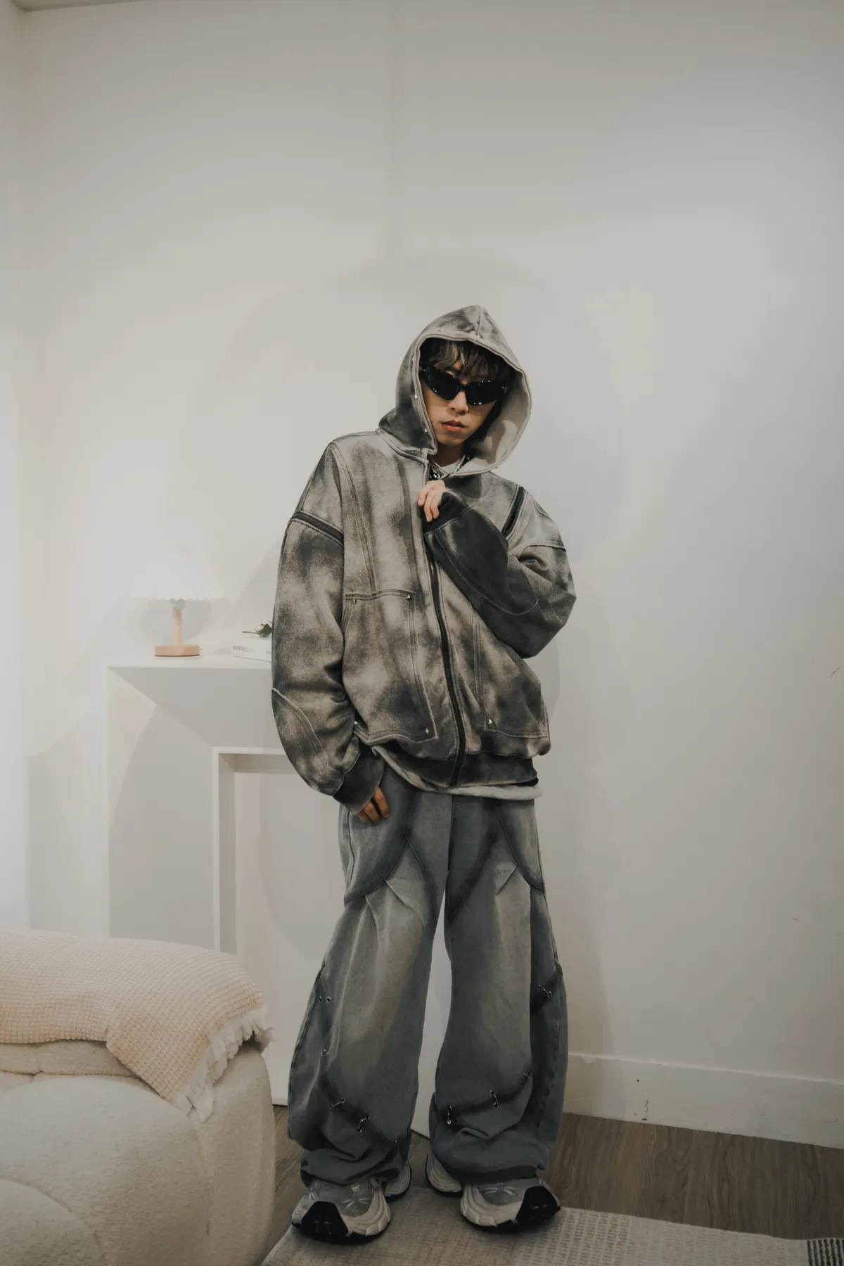 PROCESS 水洗做舊 卯釘 解構拉鍊 春夏 外套(洗舊黑/洗舊白)