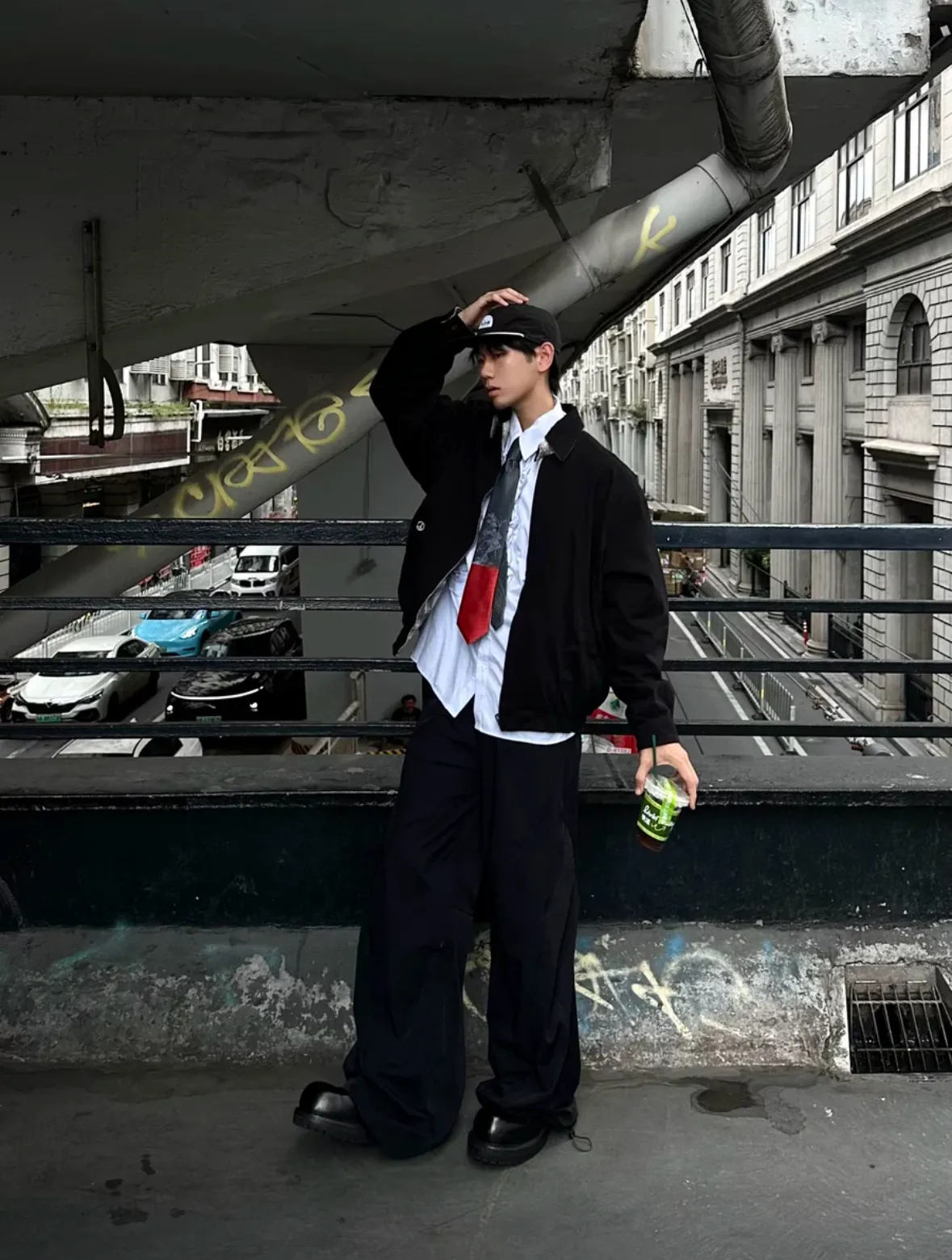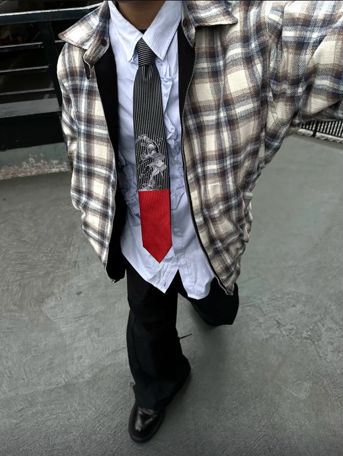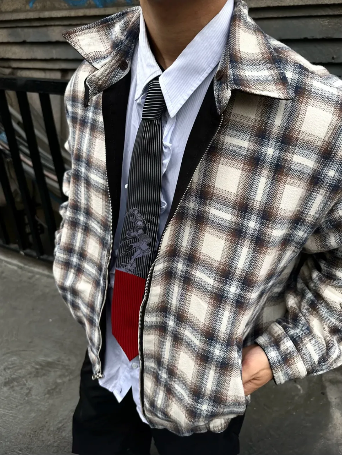 經典格紋 韓系街頭 長袖 襯衫 (黑色)