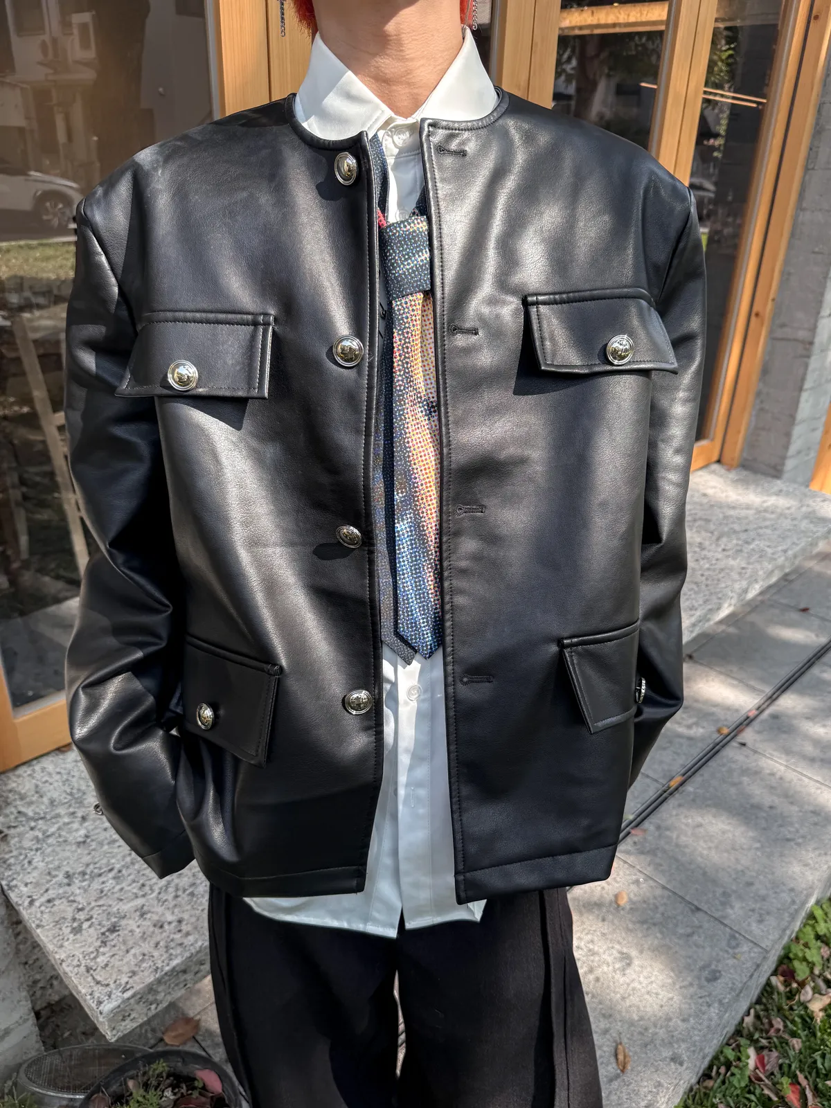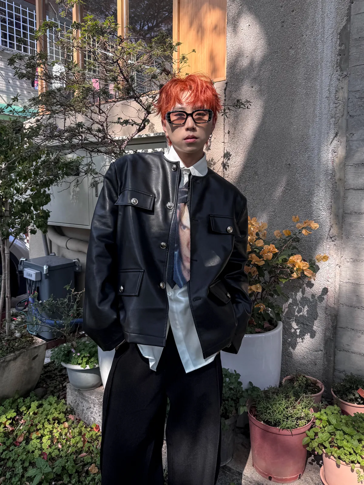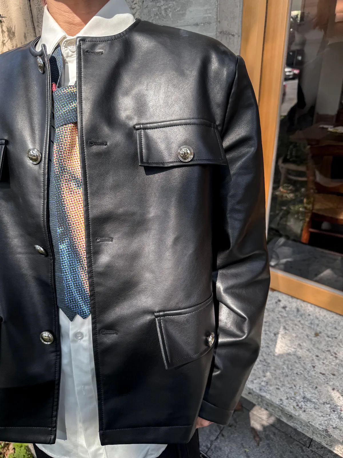 PROCESS皮革 銀釦 高級感 小香外套(黑色)