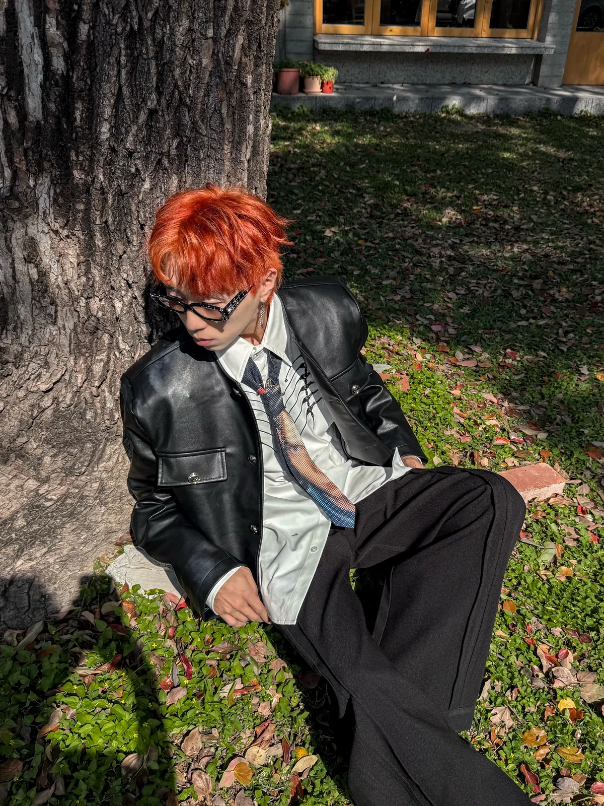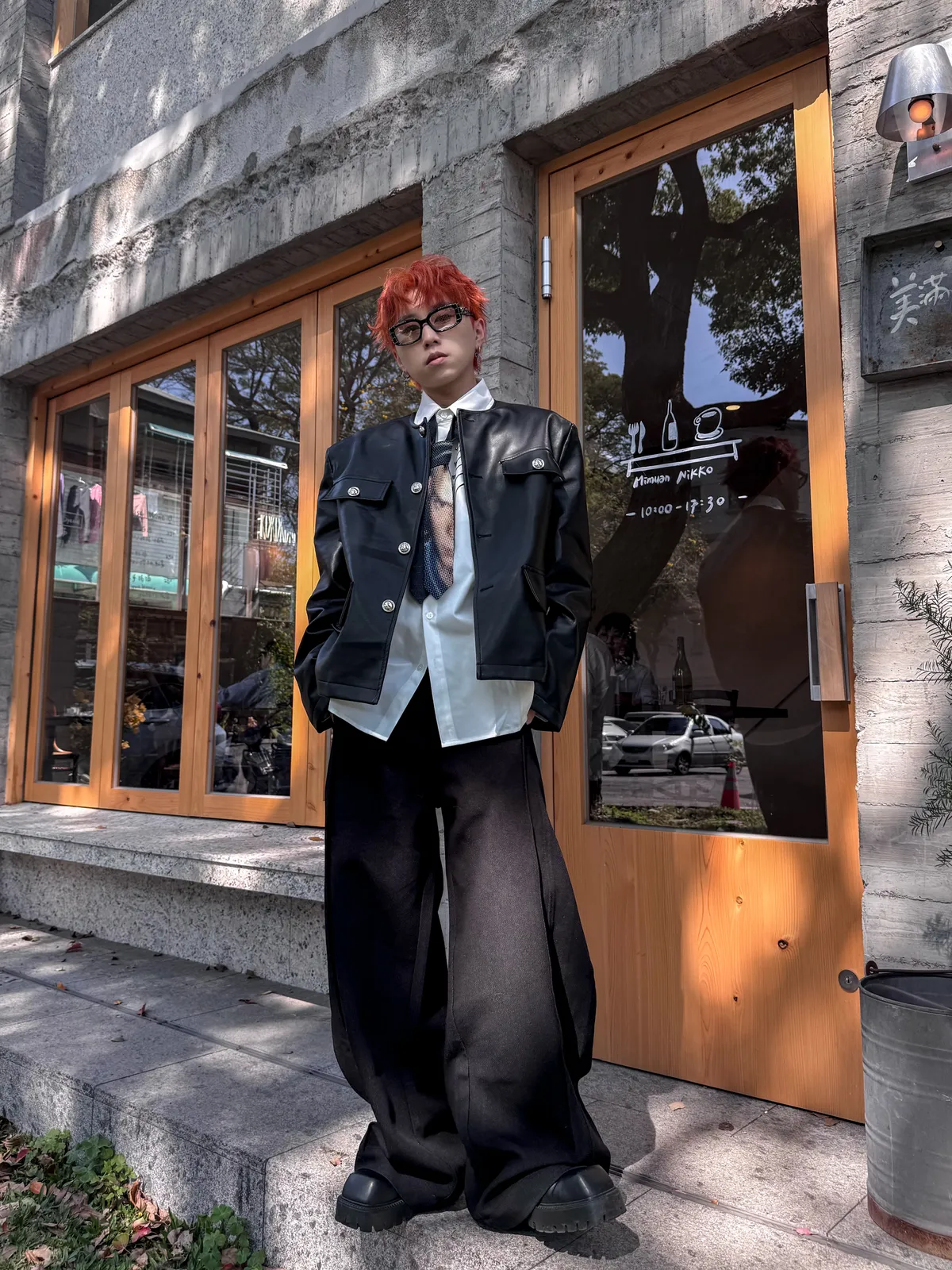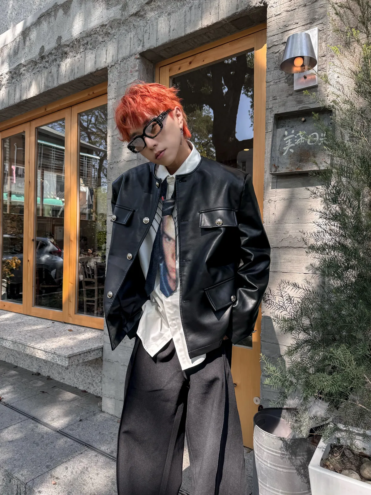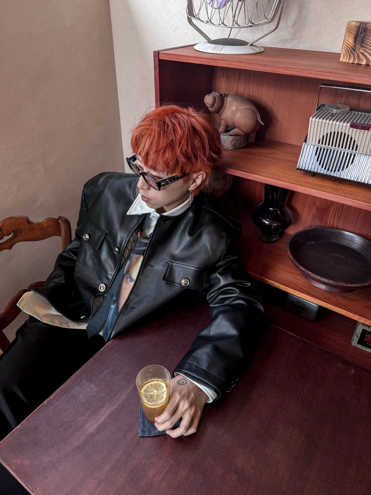 PROCESS皮革 銀釦 高級感 小香外套(黑色)