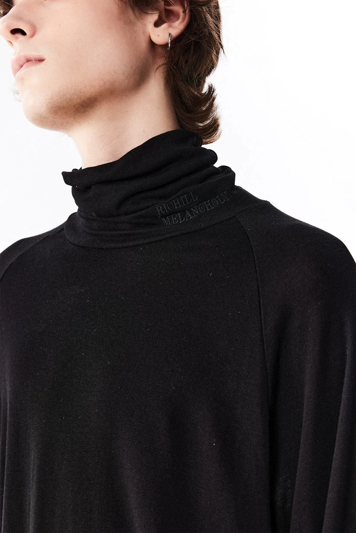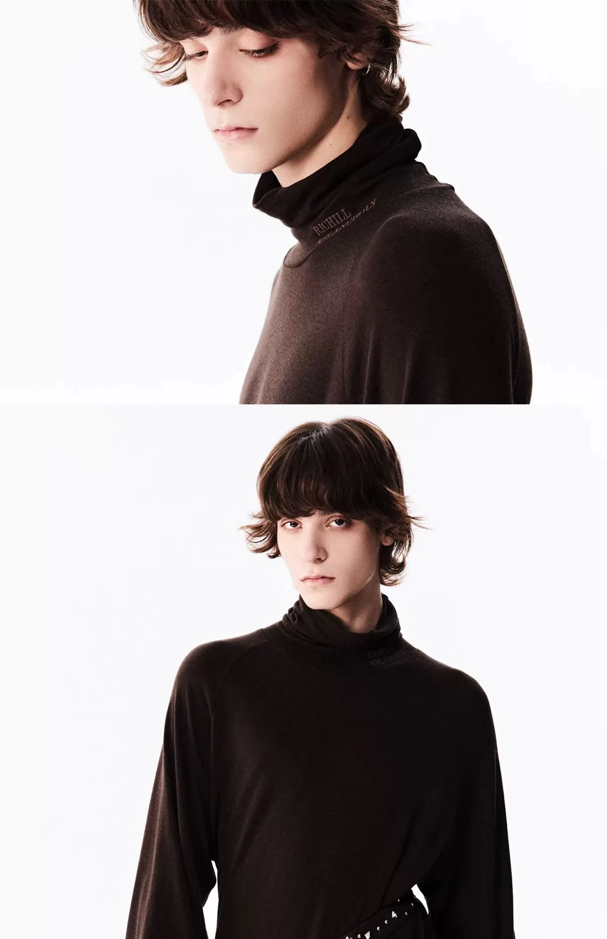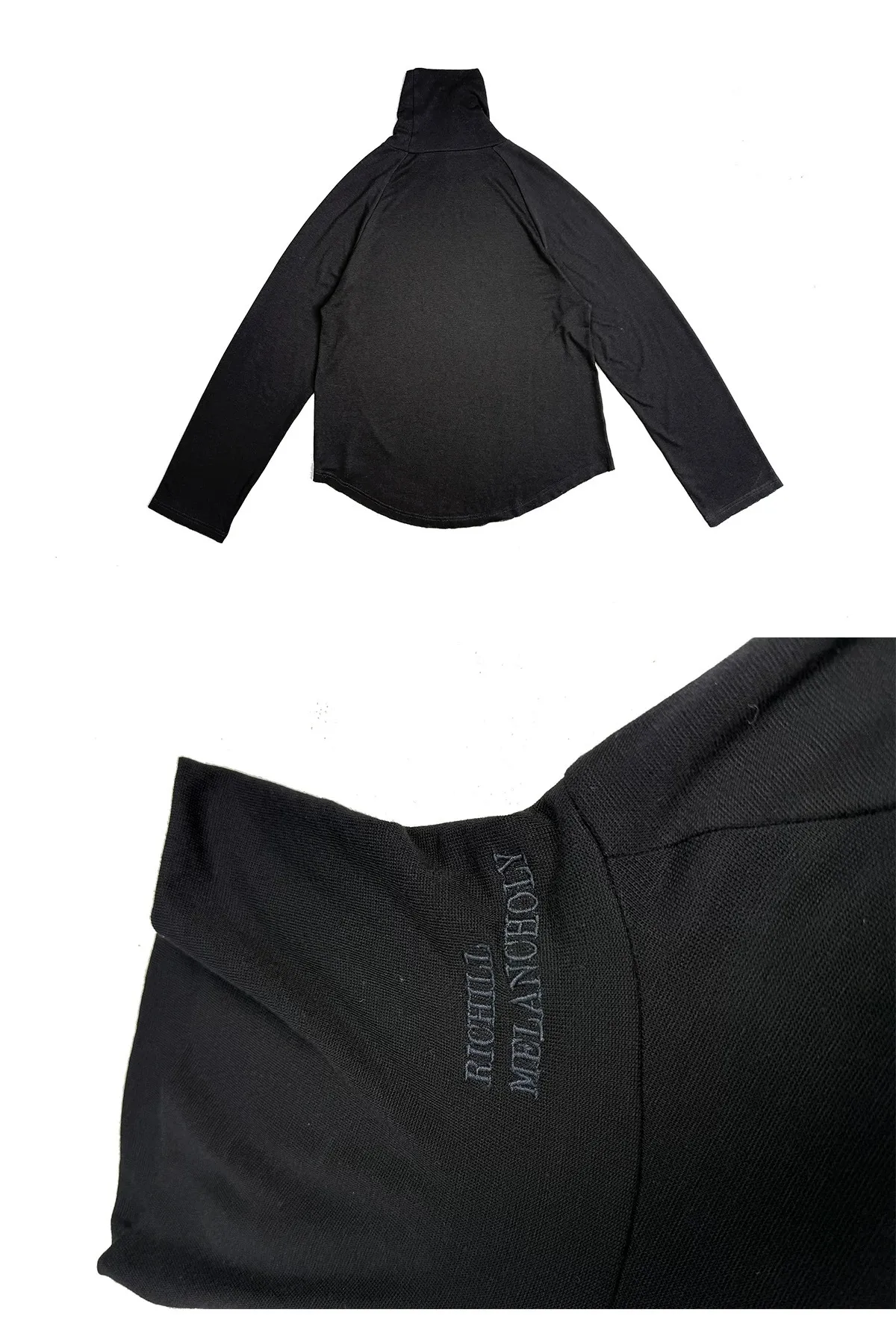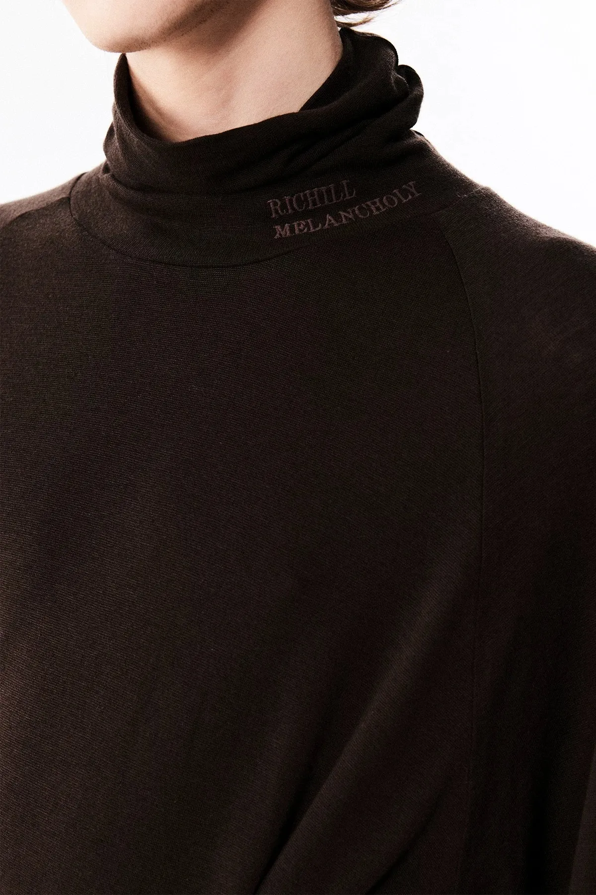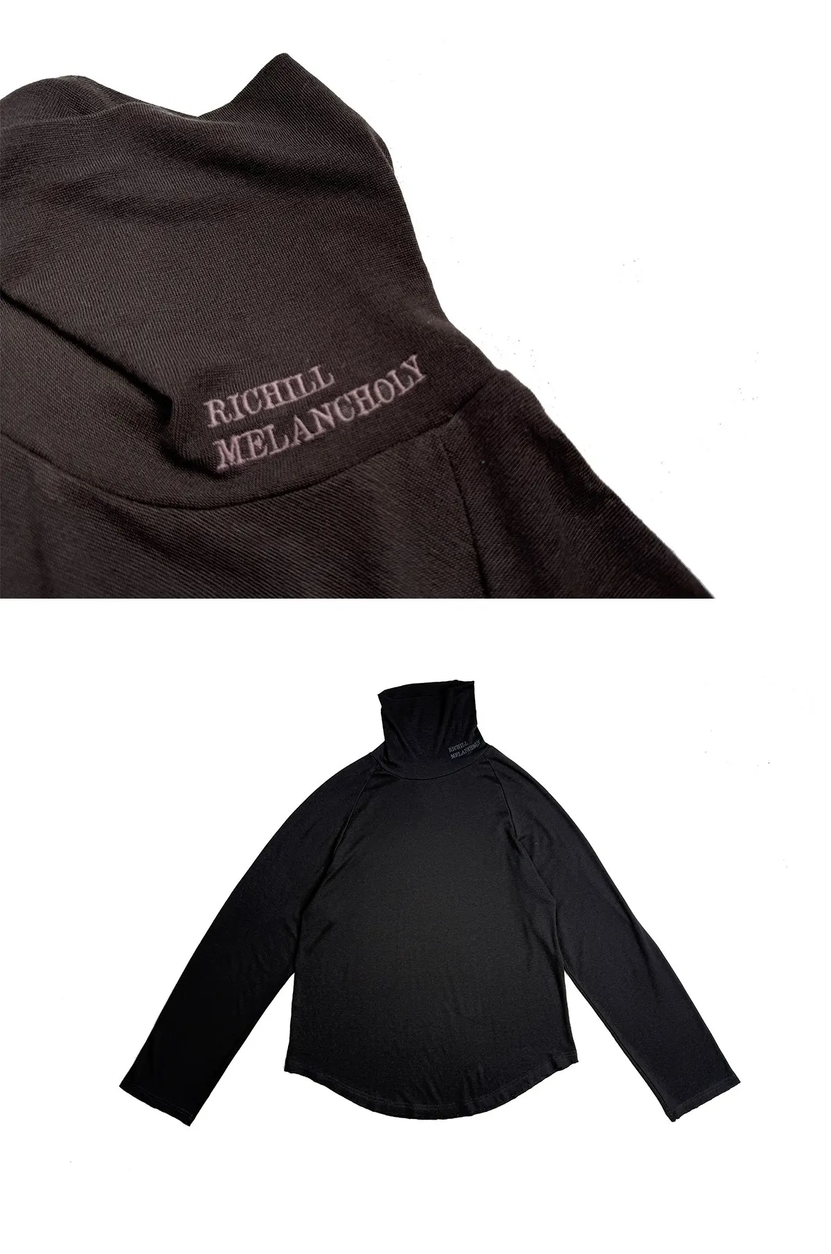 RICHILL 天絲羊毛 刺繡 高領 長袖(黑/深咖啡)