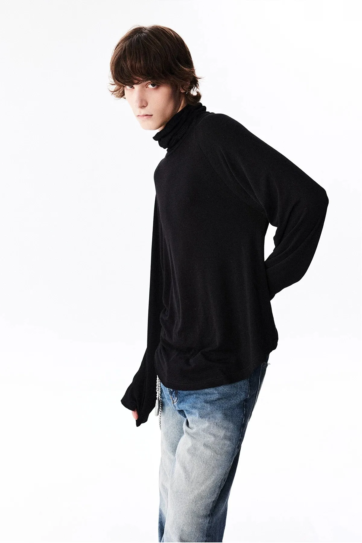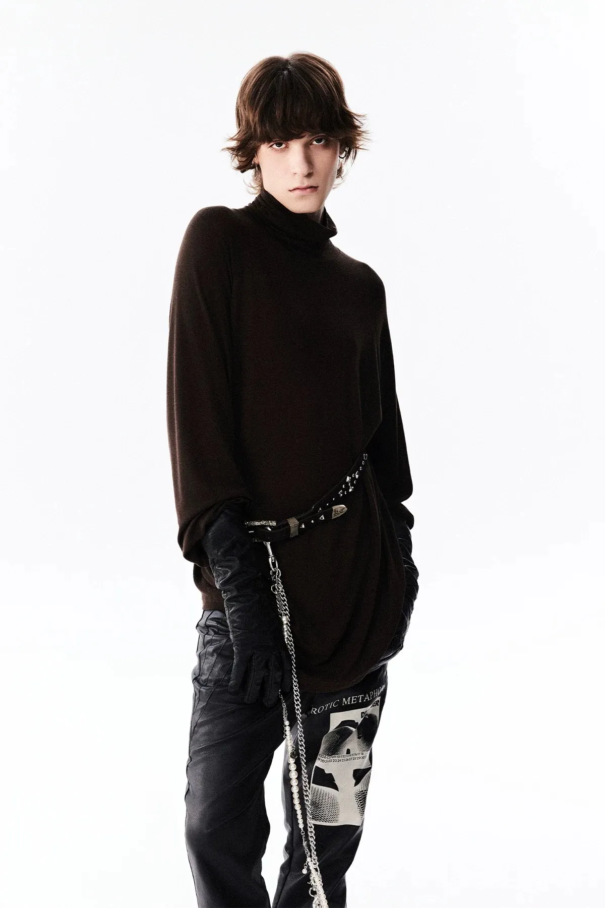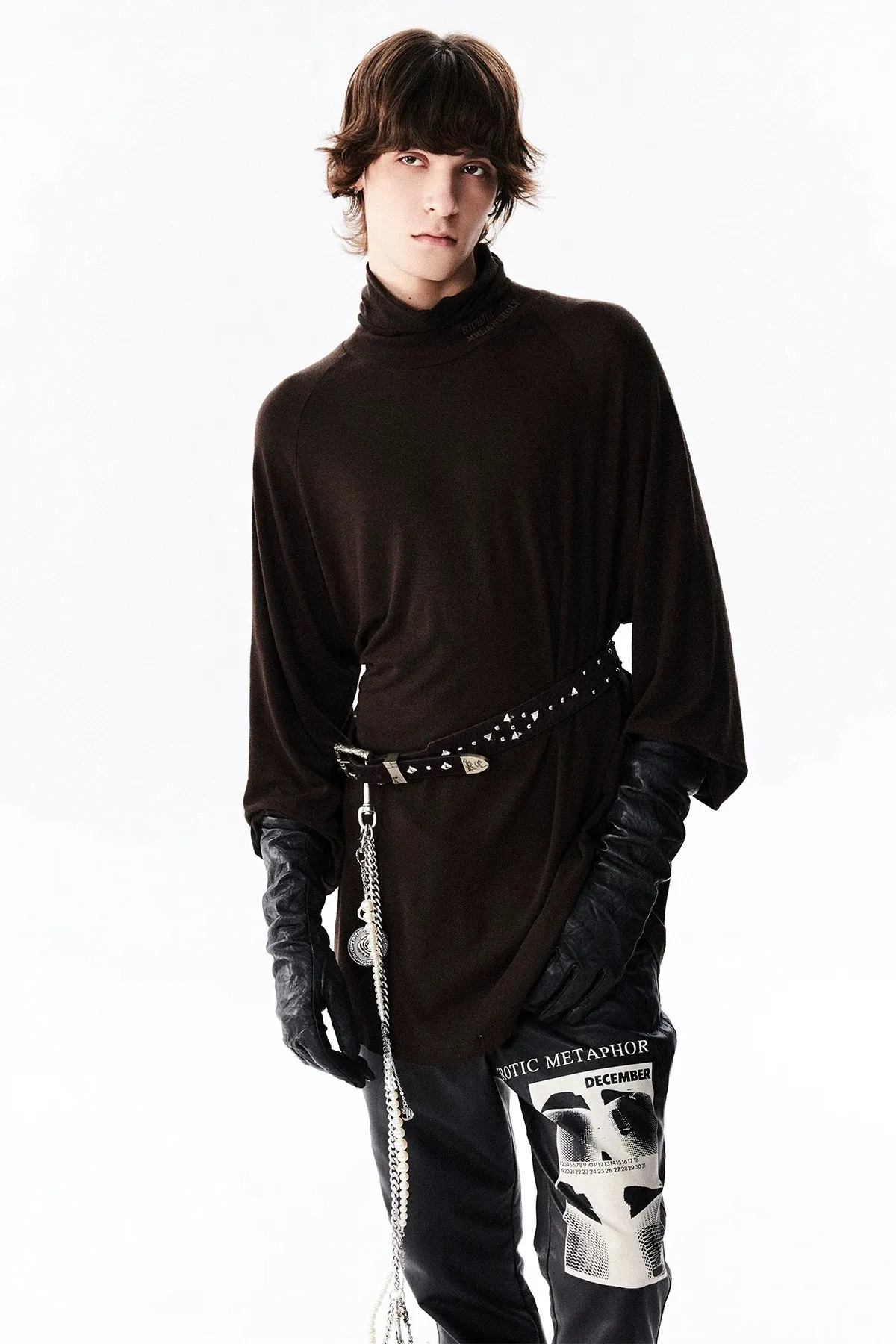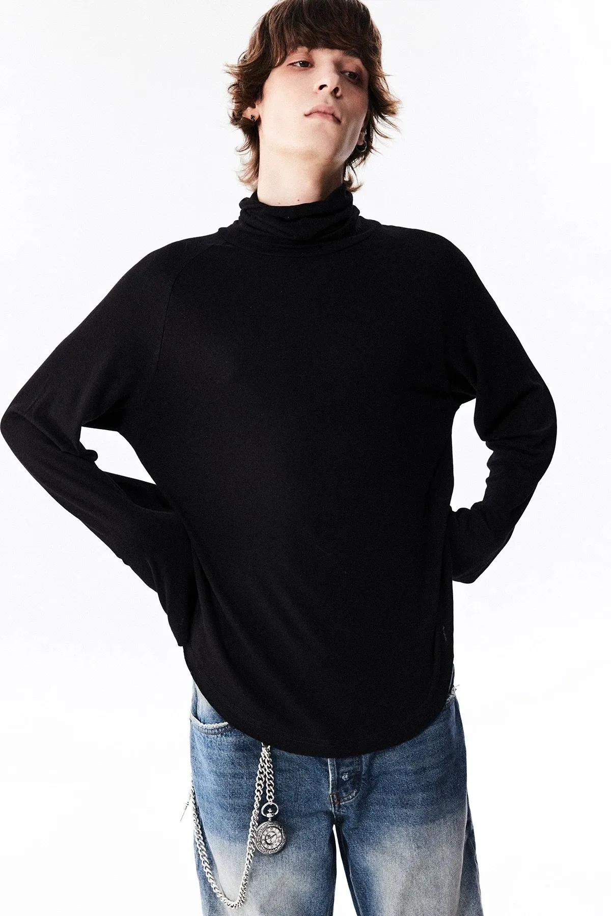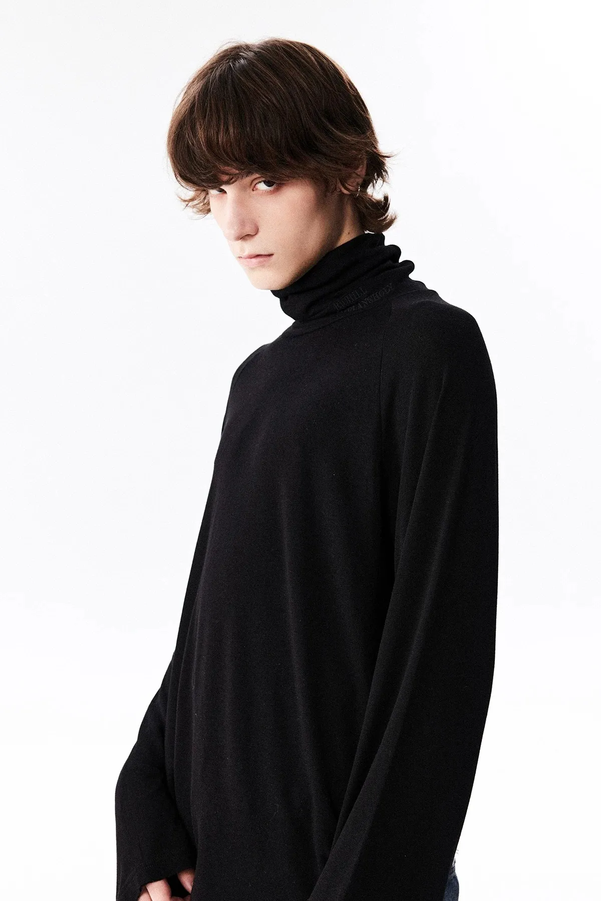 RICHILL 天絲羊毛 刺繡 高領 長袖(黑/深咖啡)