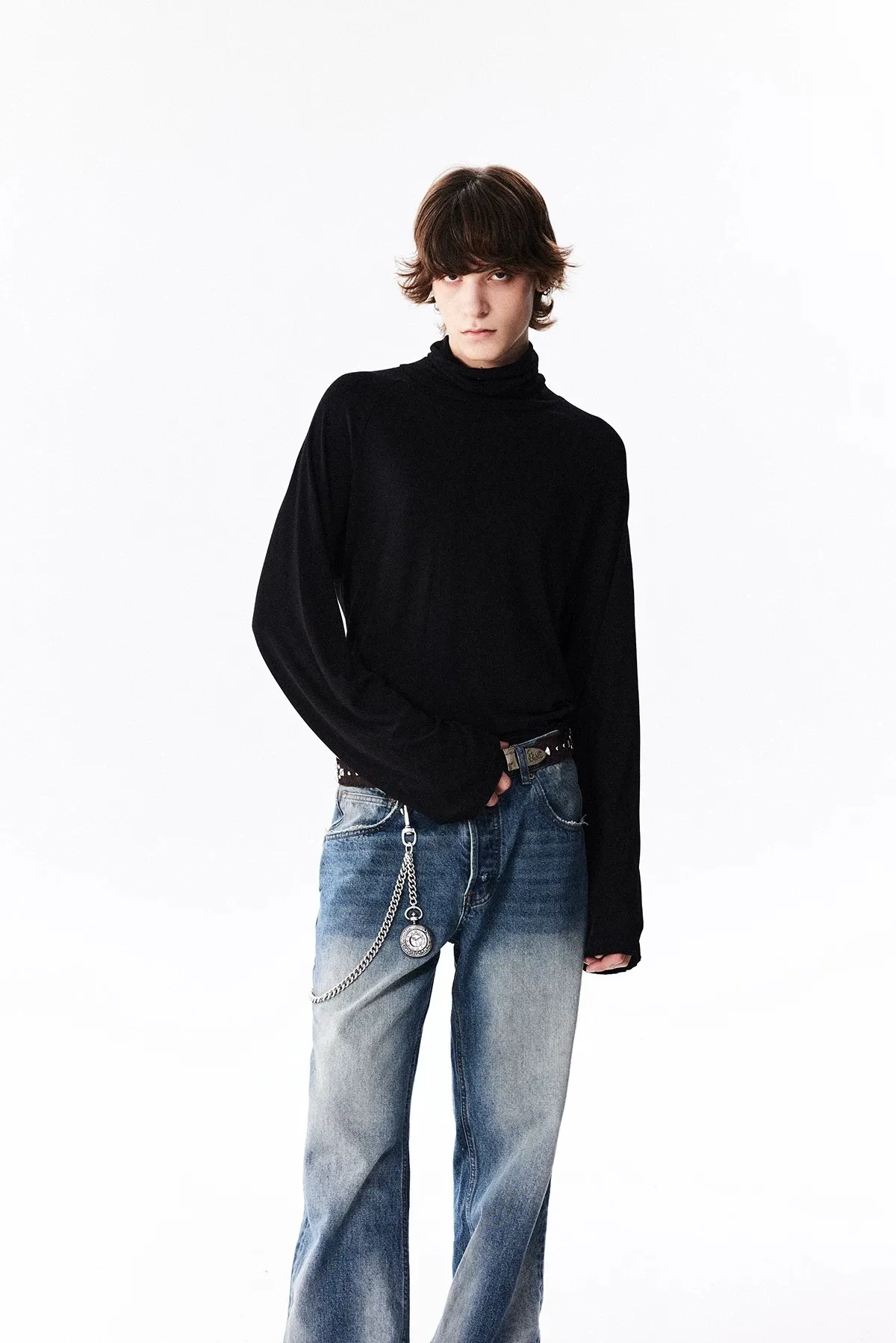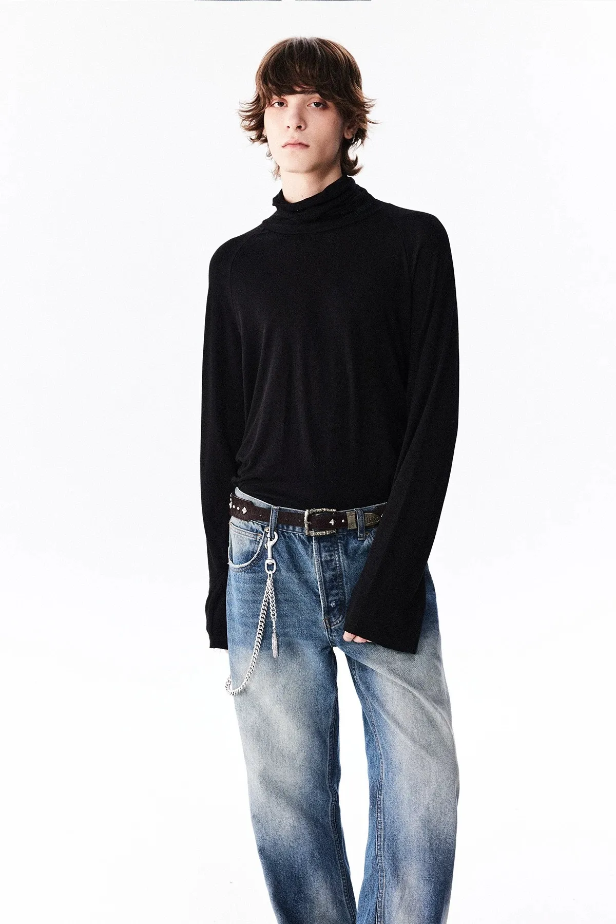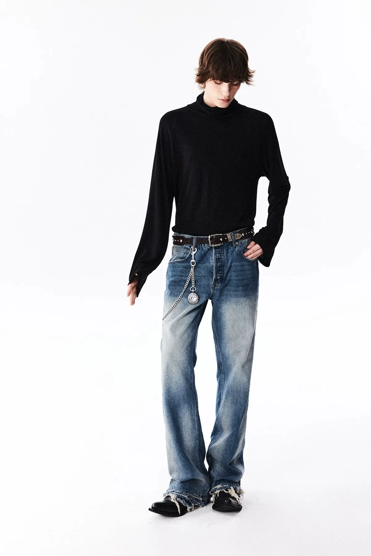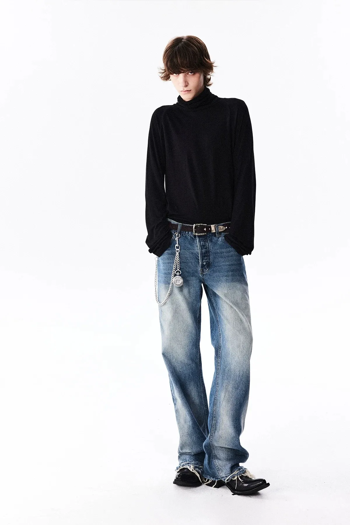 ARGUE 毛邊 廓形 彎刀 牛仔褲(黑色)