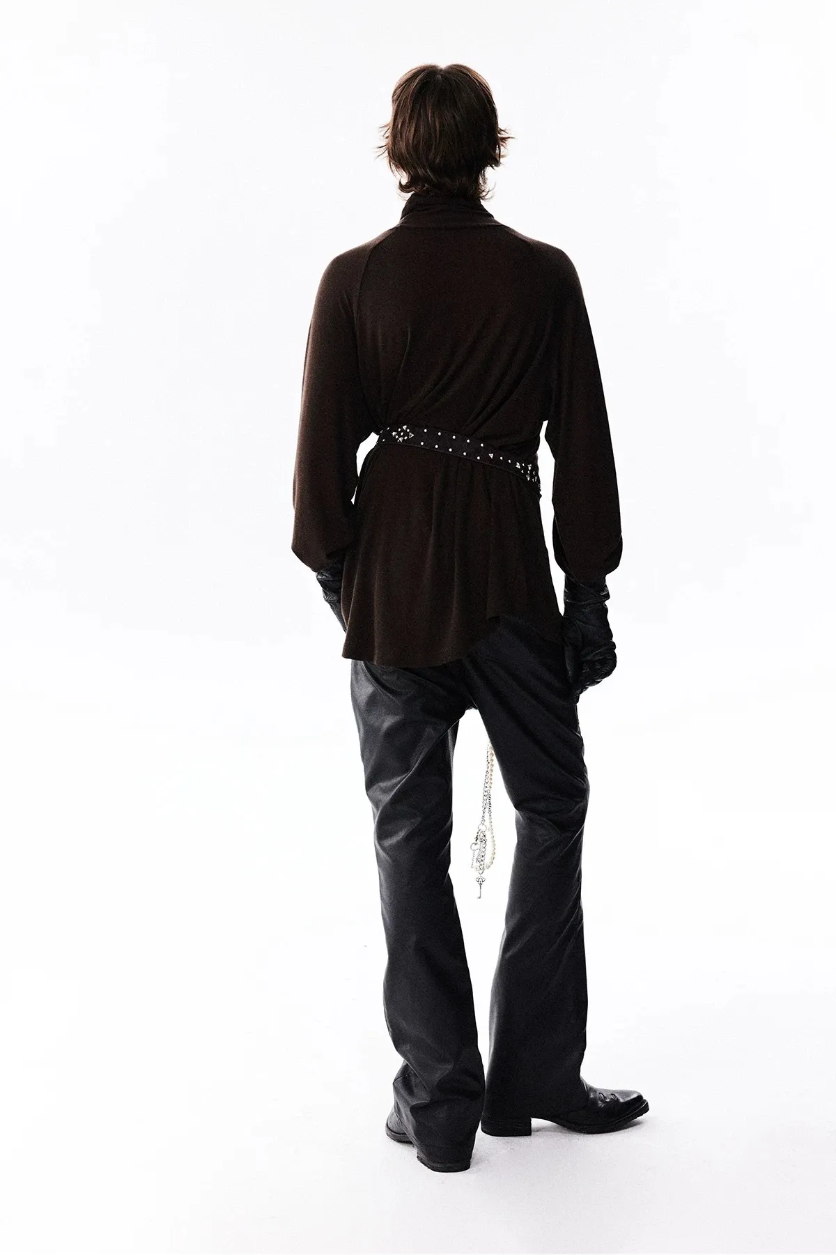 ARGUE 分割脊椎 壓褶 皮革 外套(黑/紅)