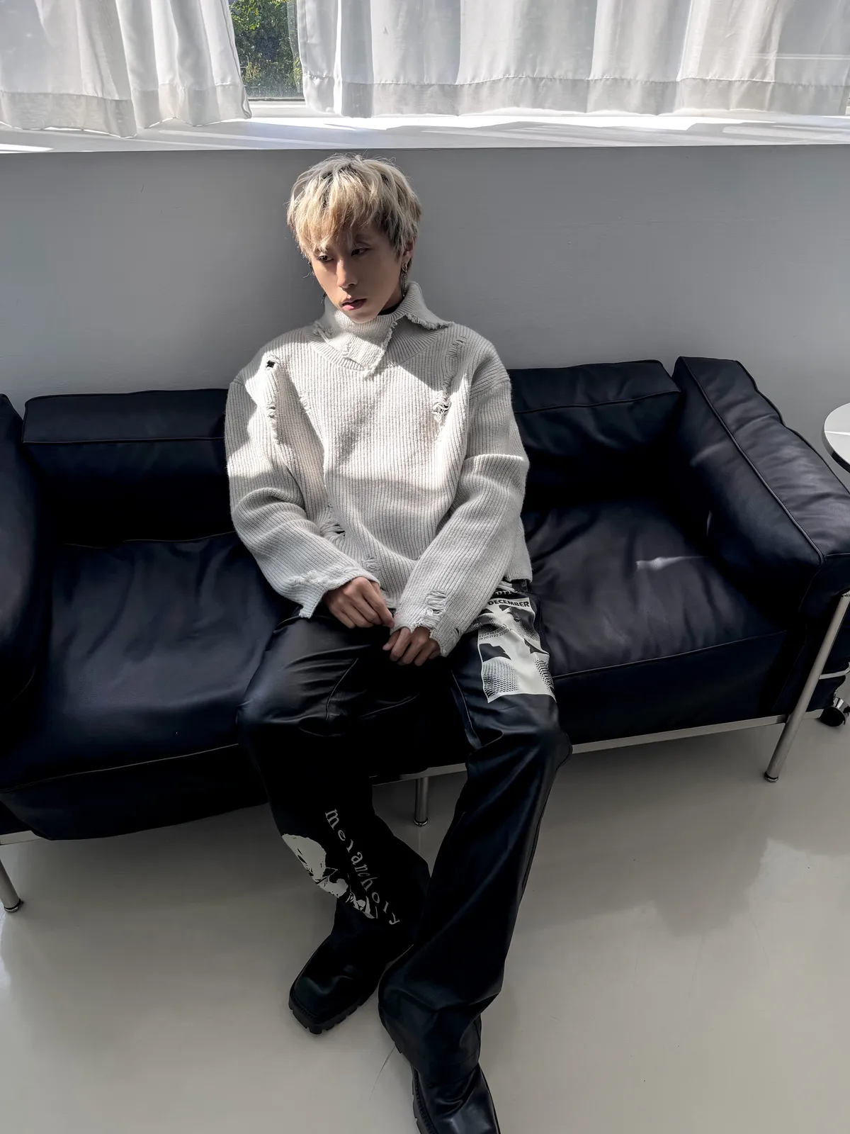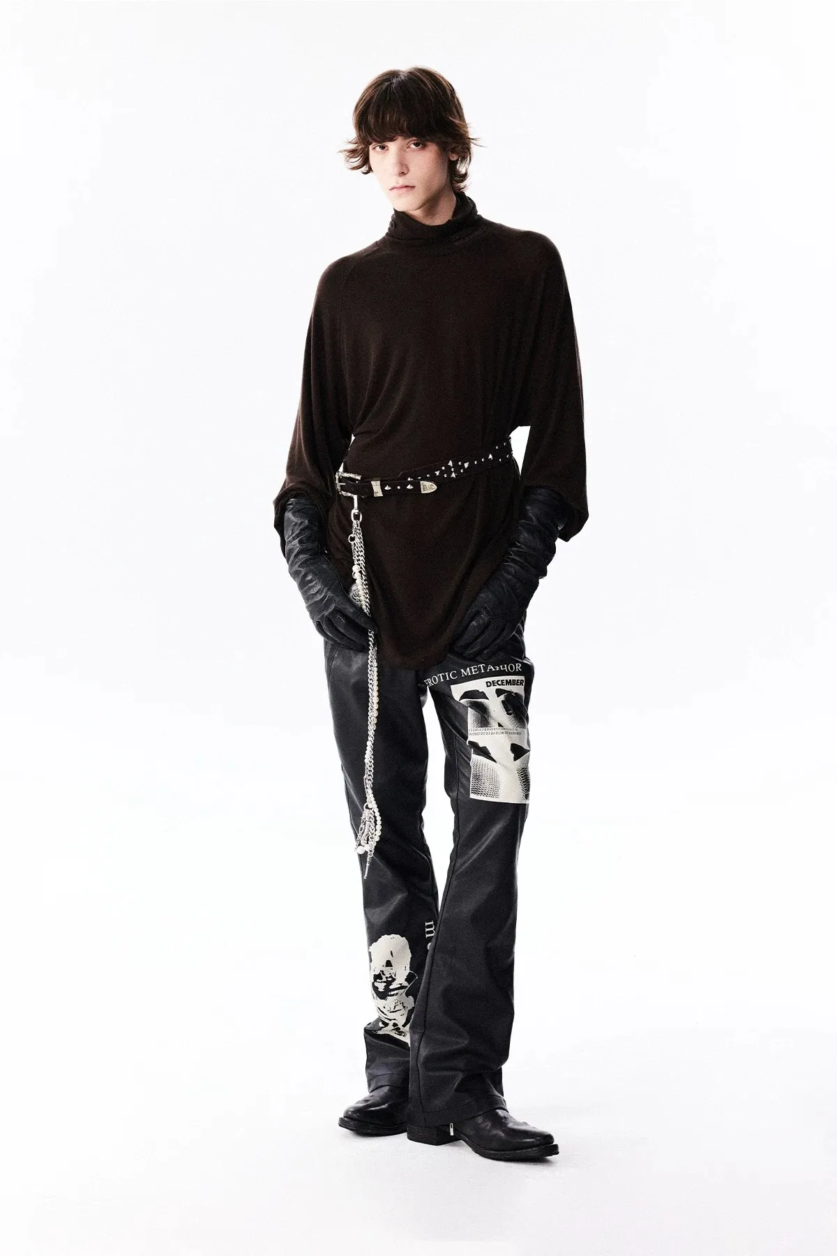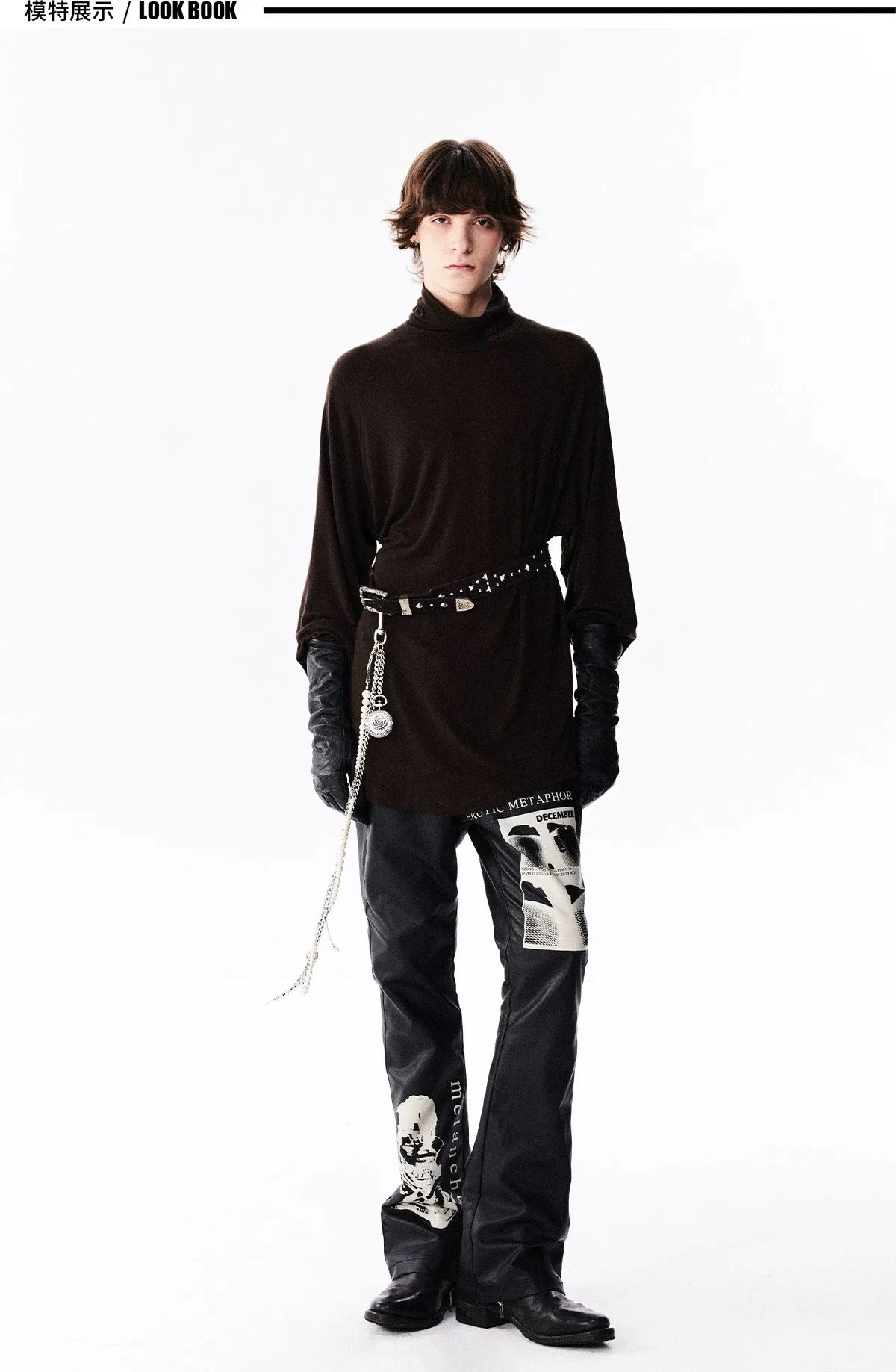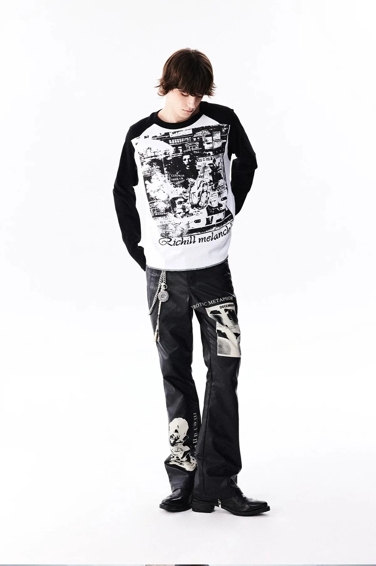 RICHILL 人像印花 微喇叭 皮褲 長褲(黑色)