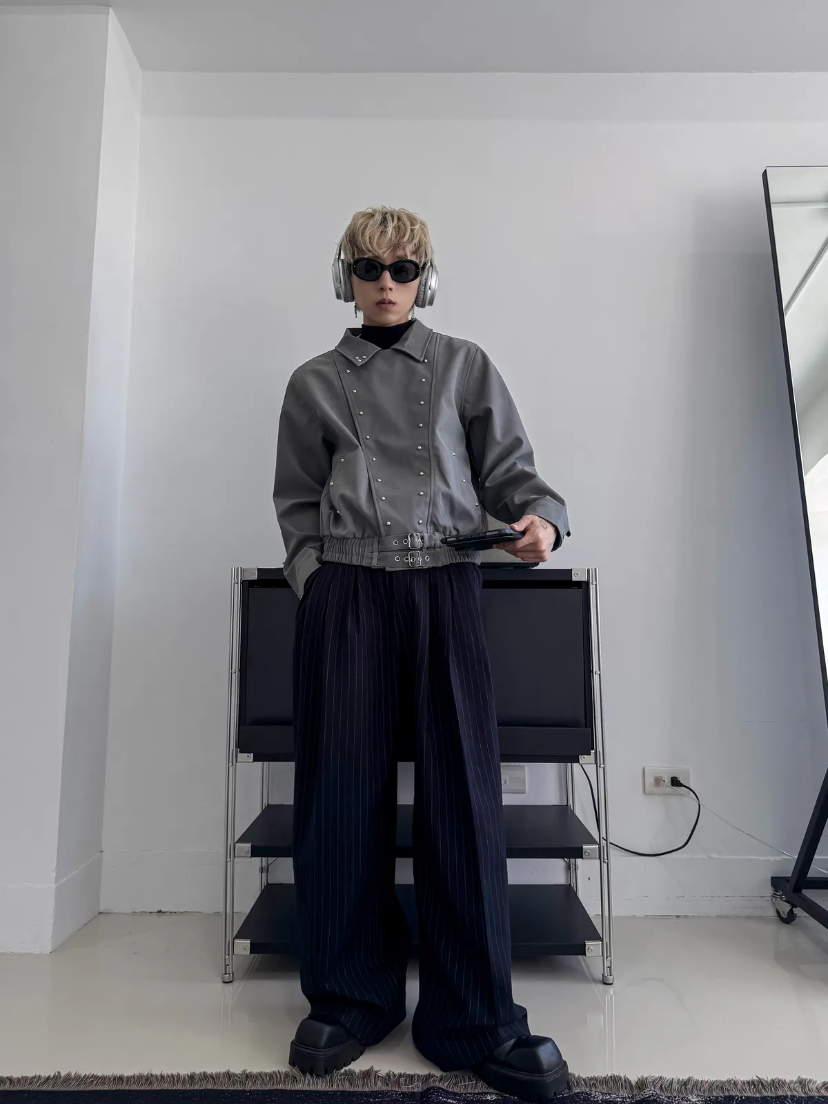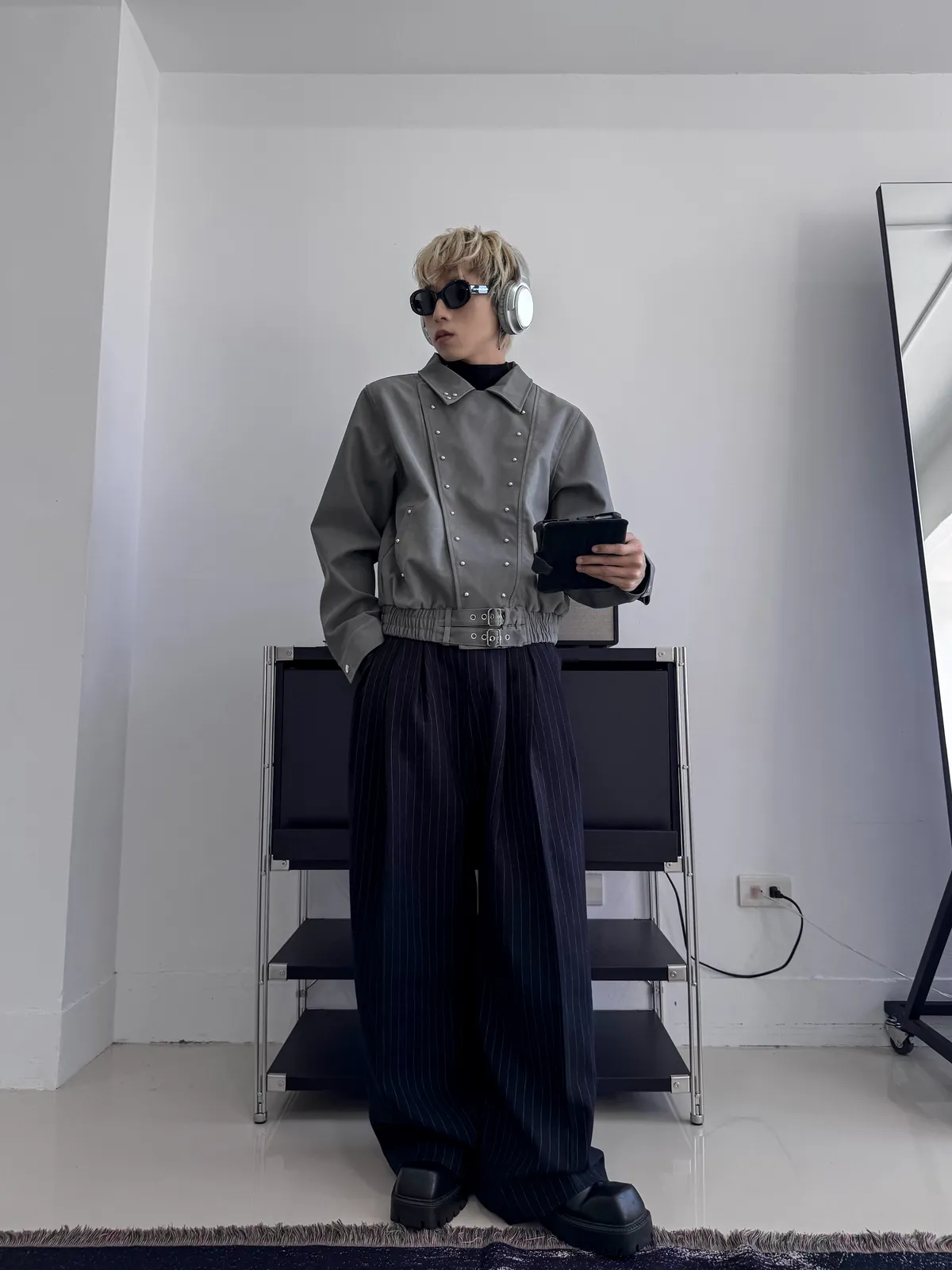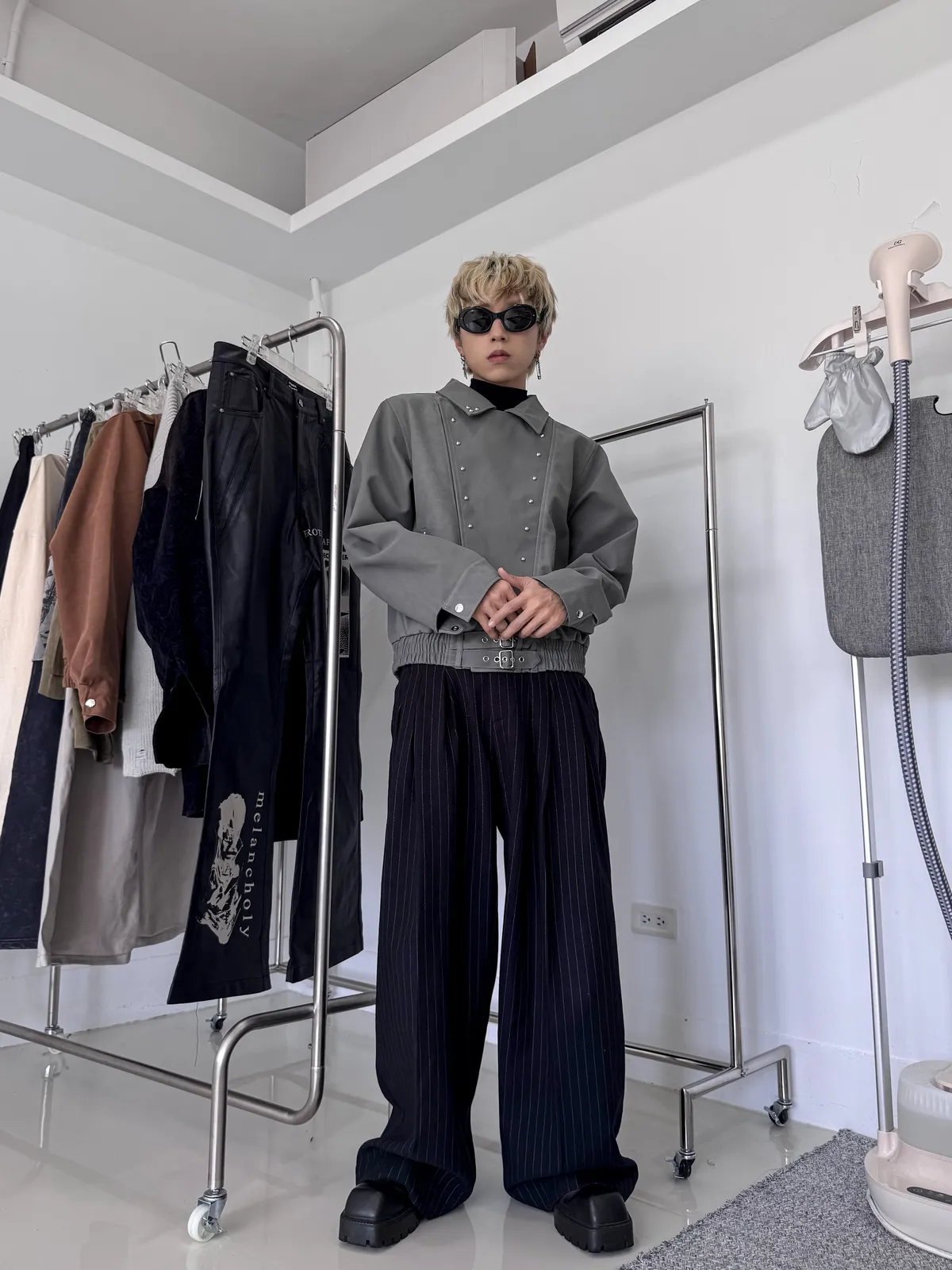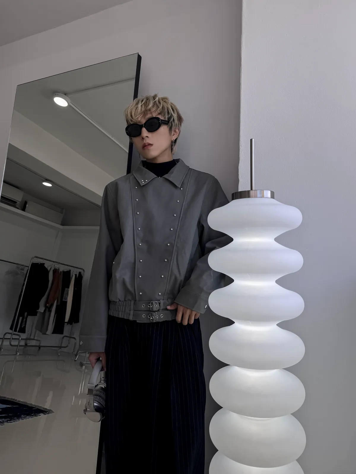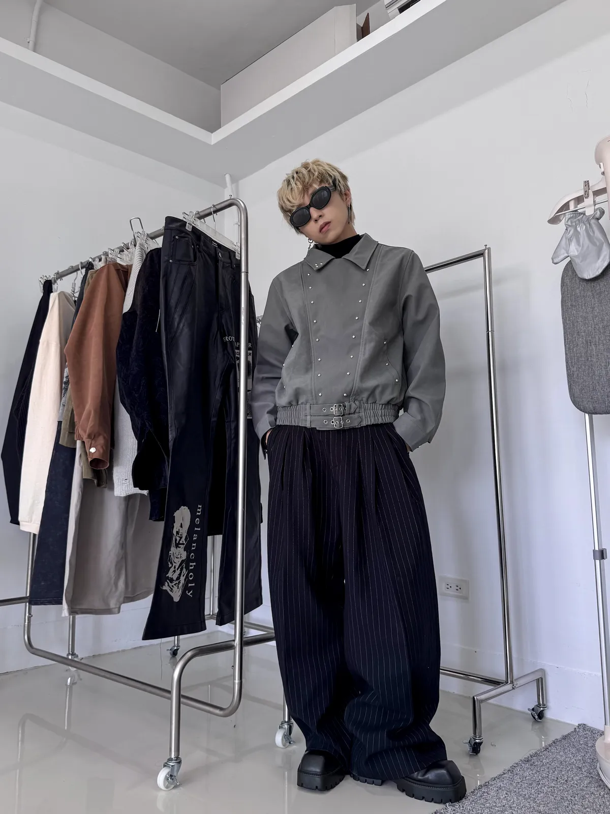 RICHILL 麂皮卯釘 寬短 外套(灰色)