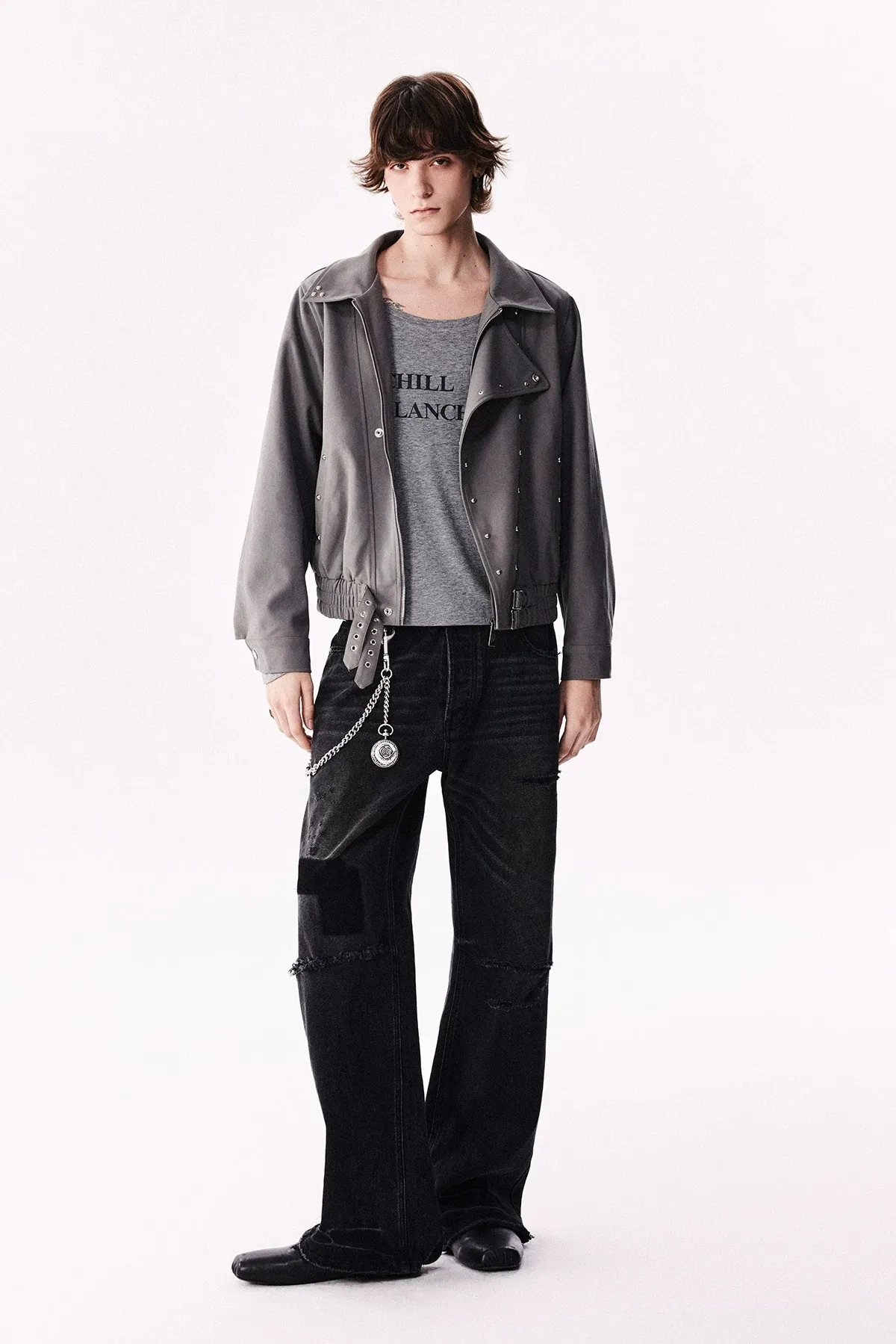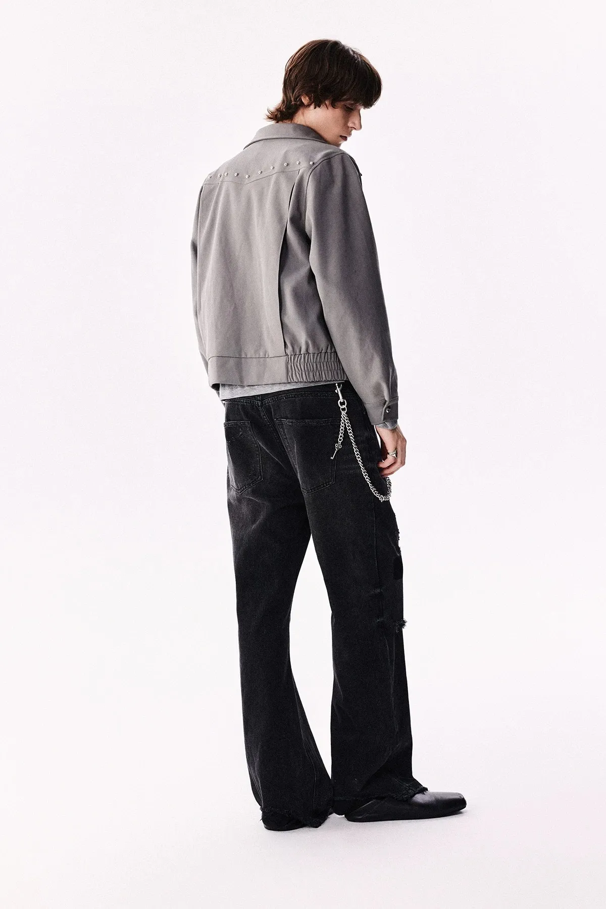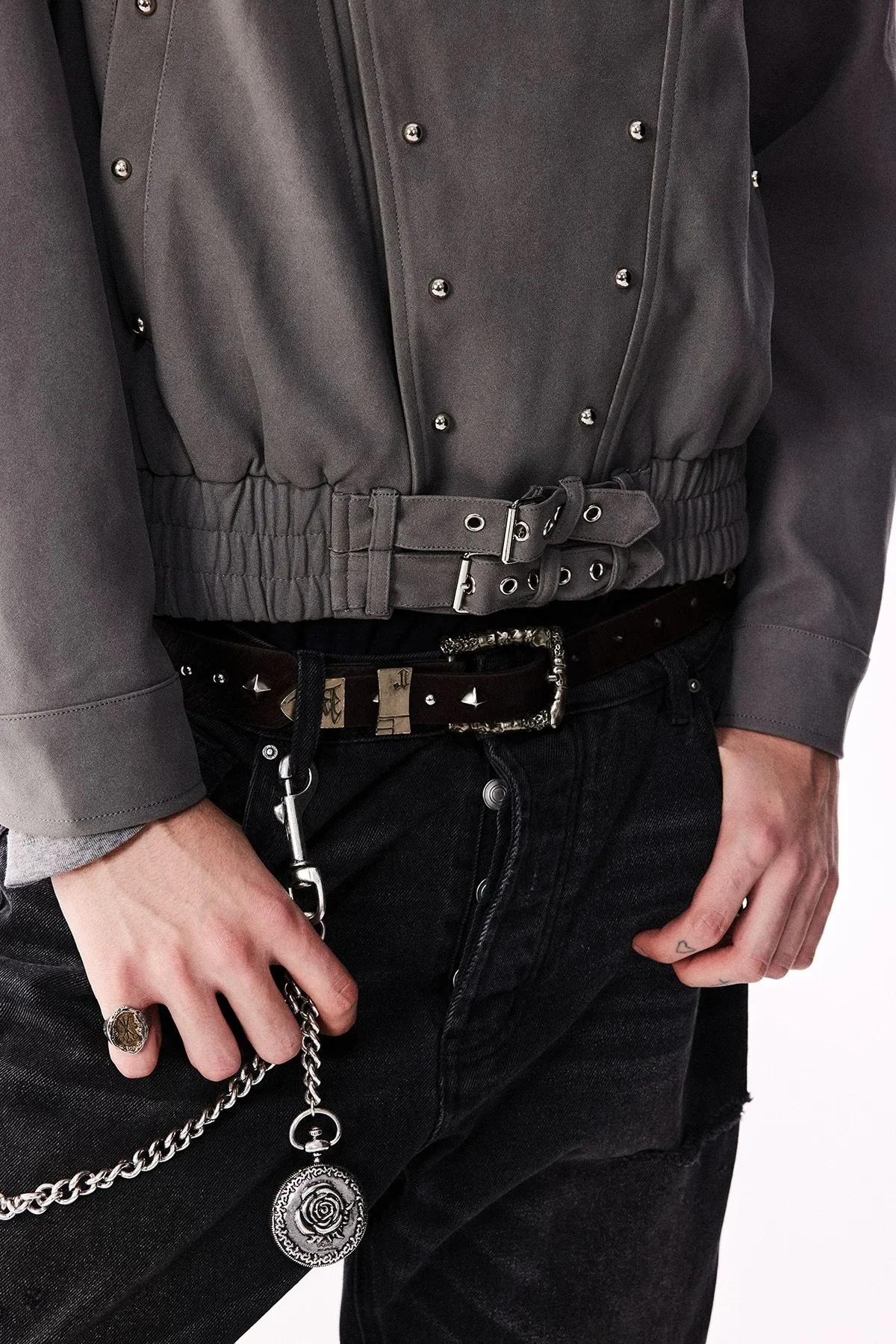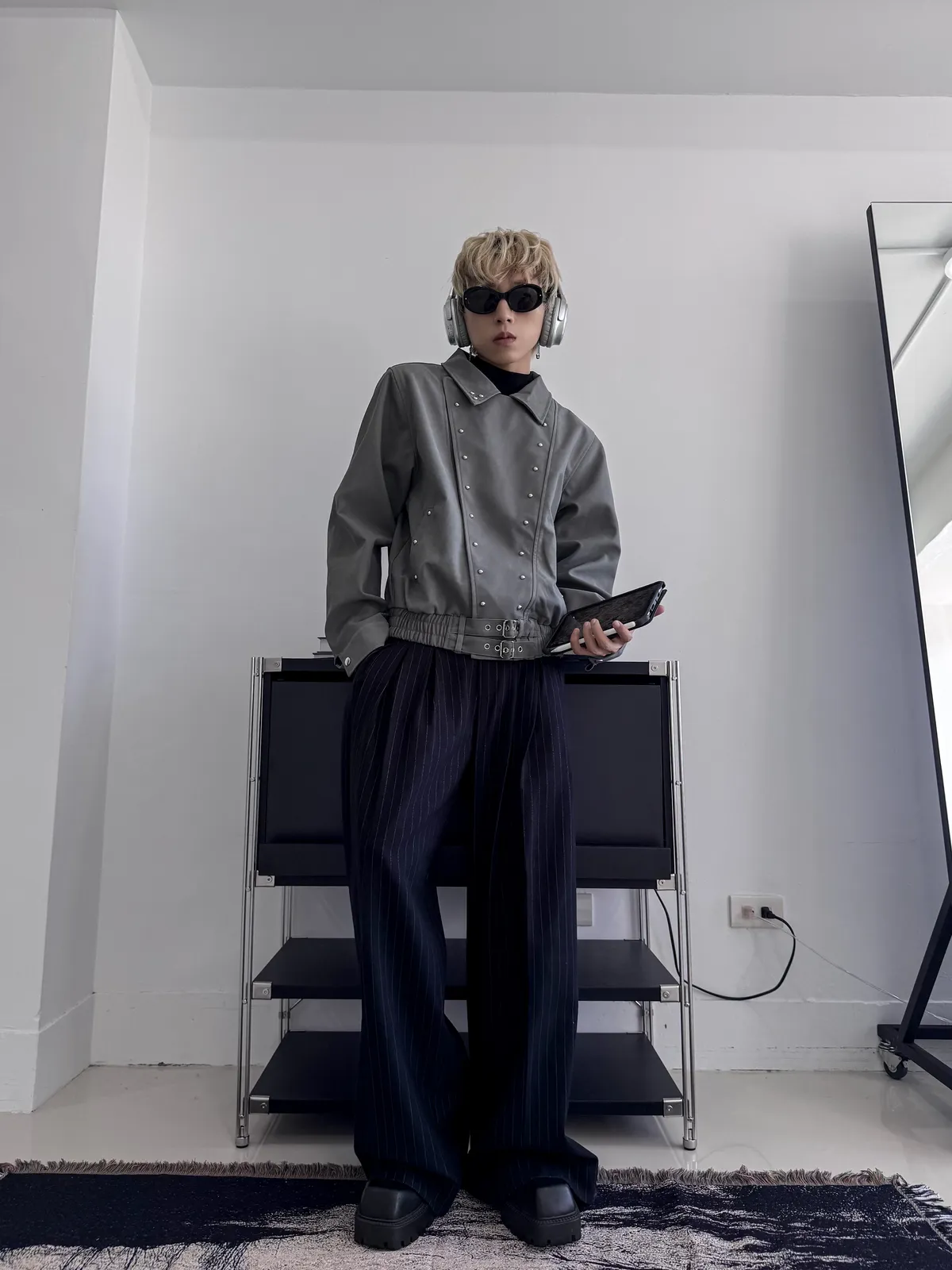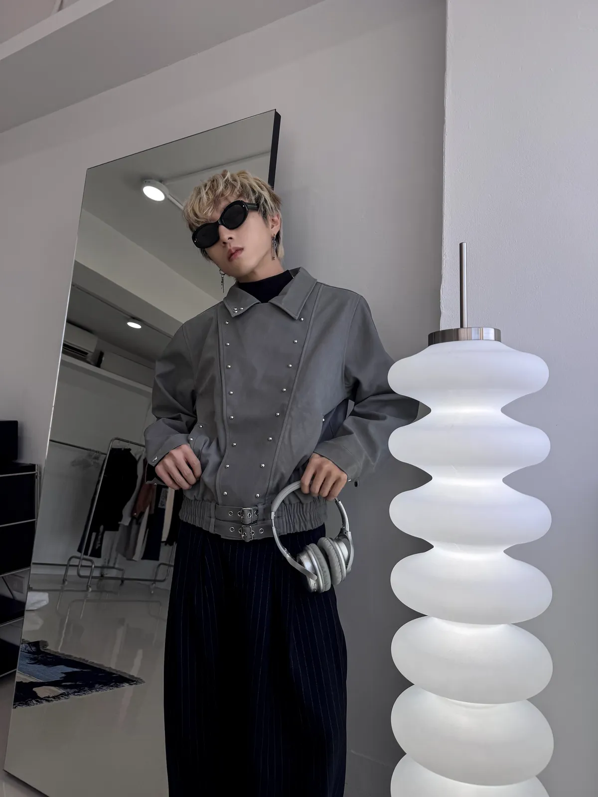 RICHILL 麂皮卯釘 寬短 外套(灰色)