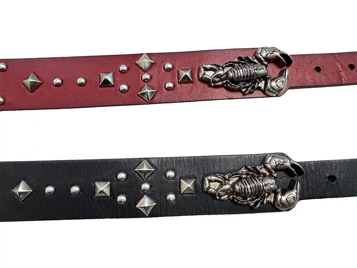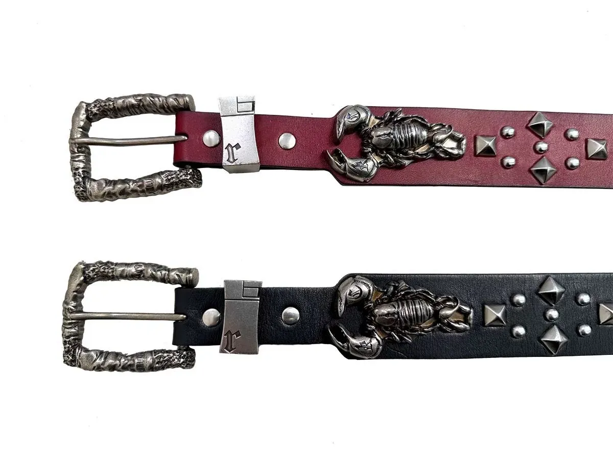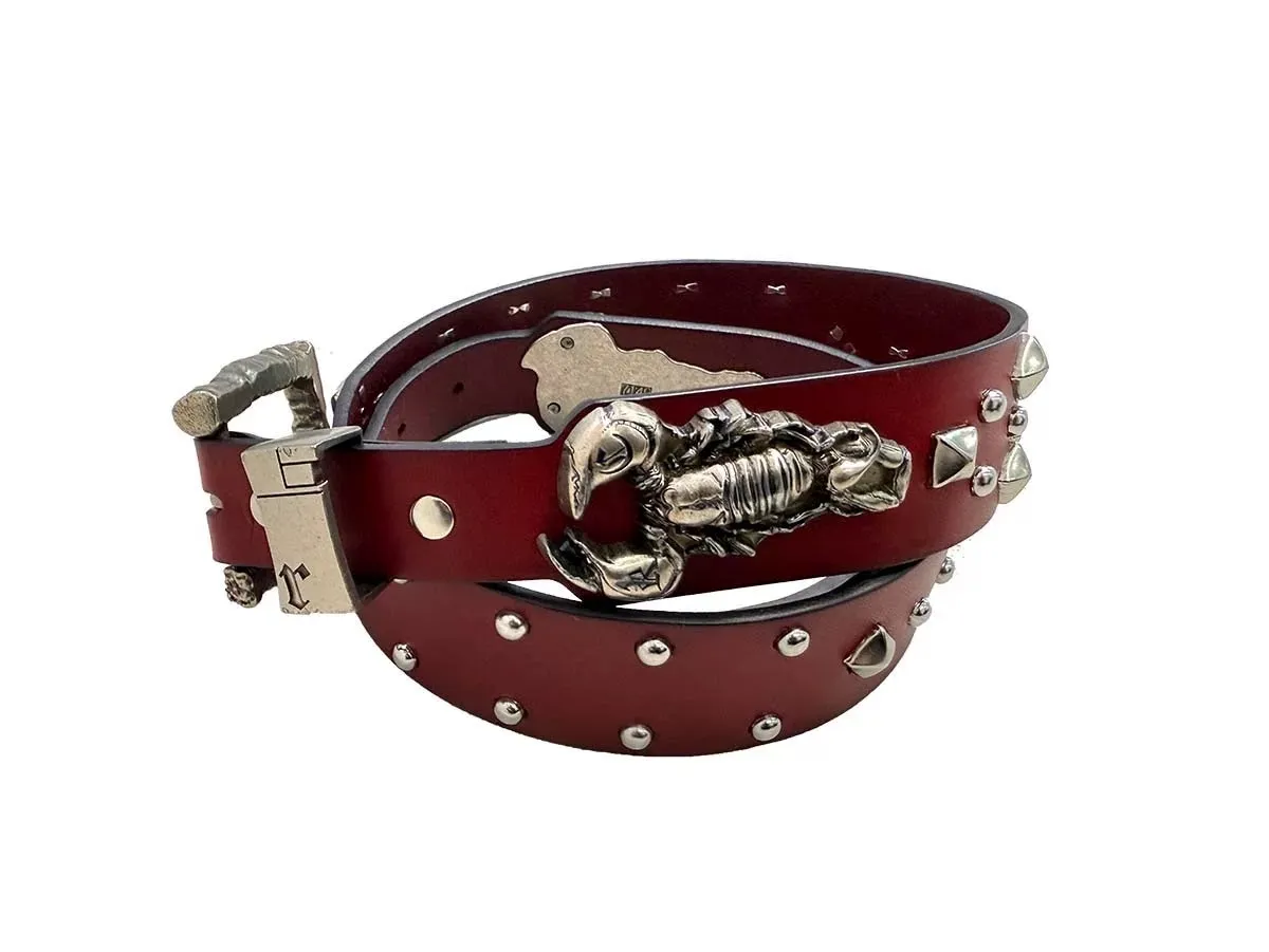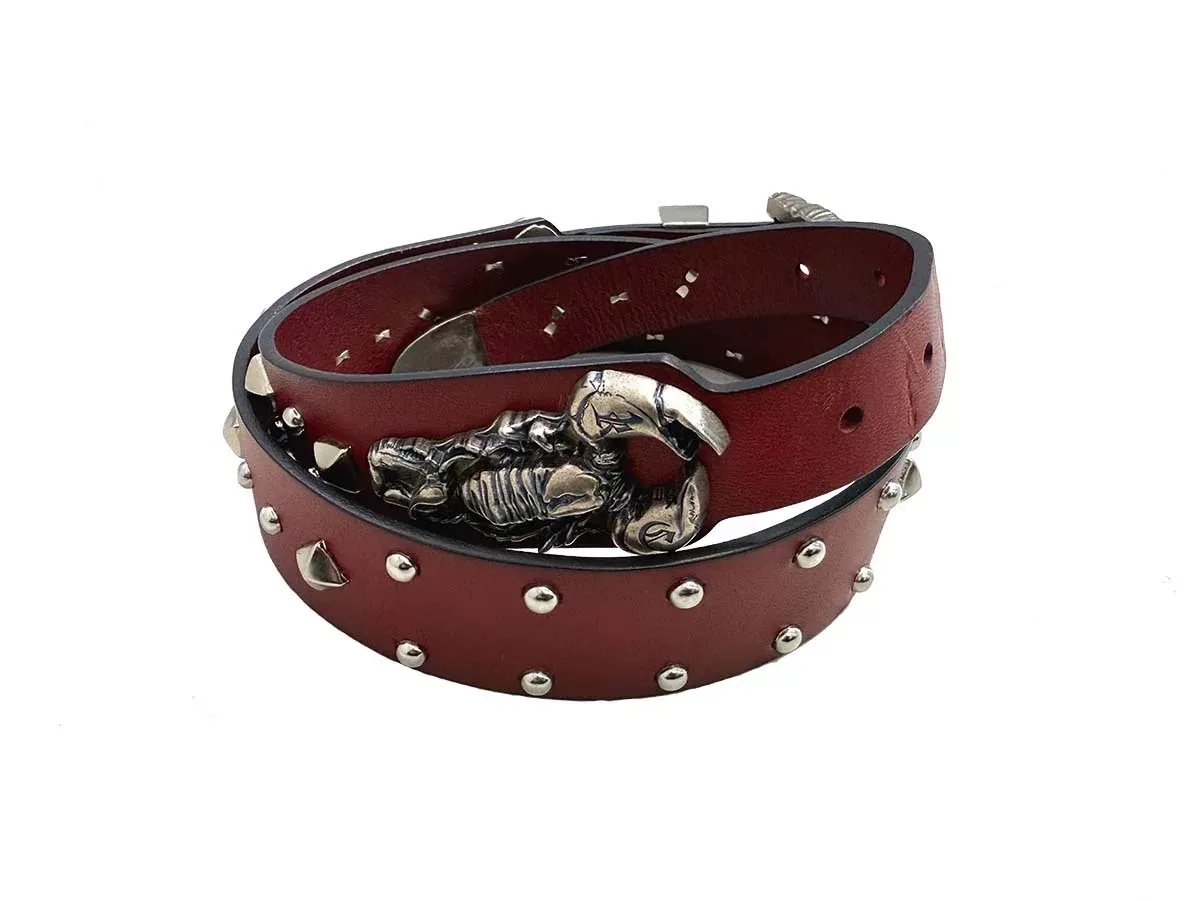 RICHILL 煙頭蠍子 卯釘 牛皮 皮帶(酒紅)
