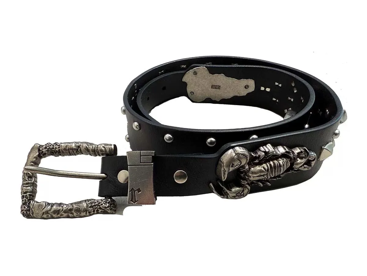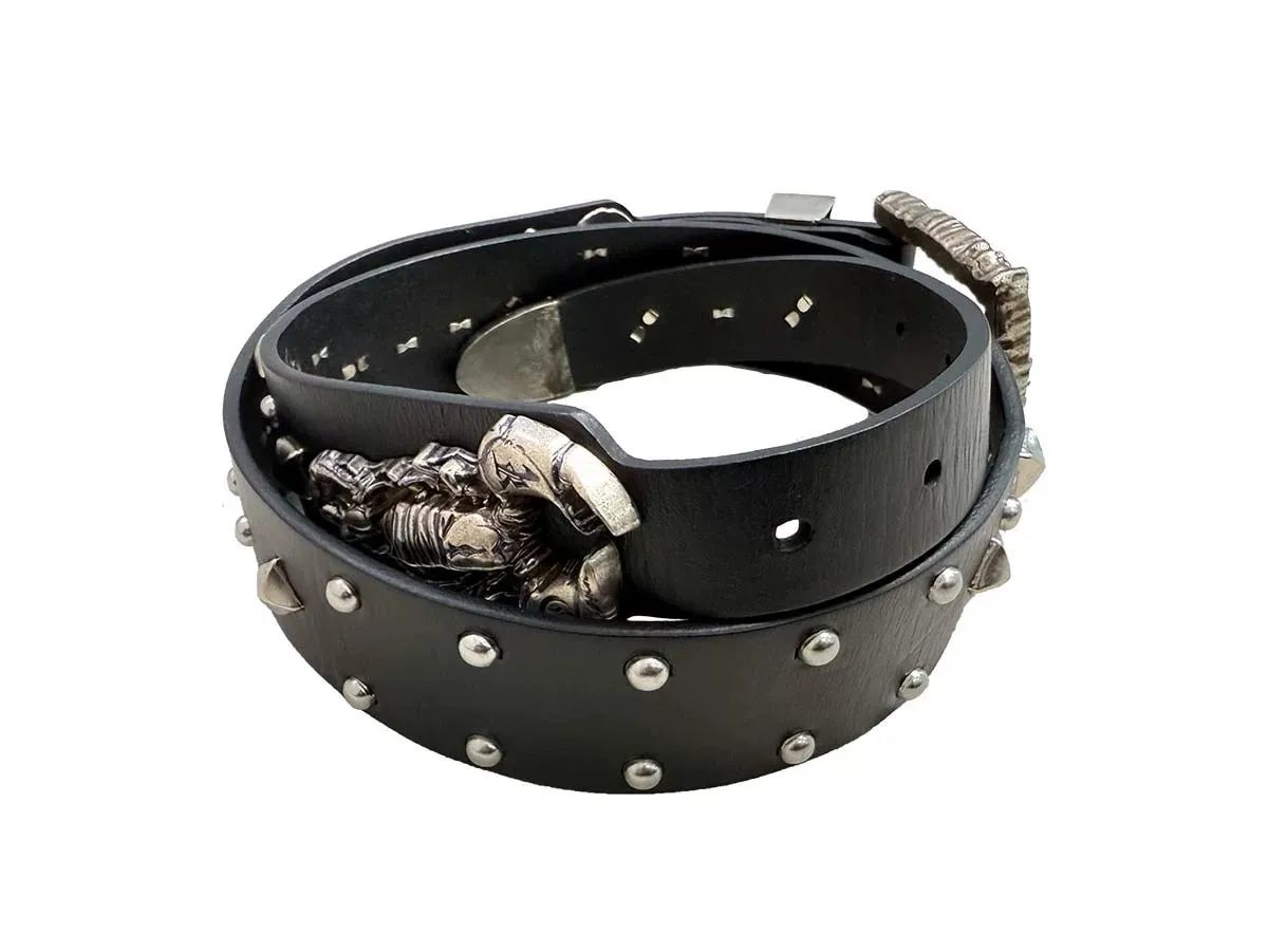RICHILL 馬毛 龐克卯釘 煙頭金屬 皮帶(黑色)